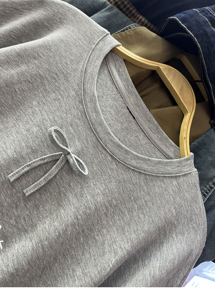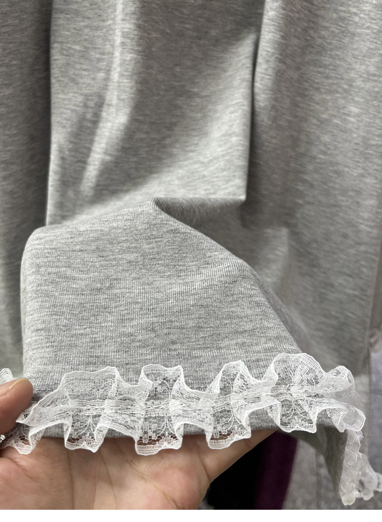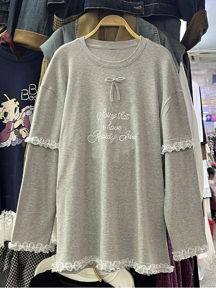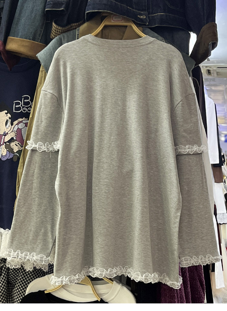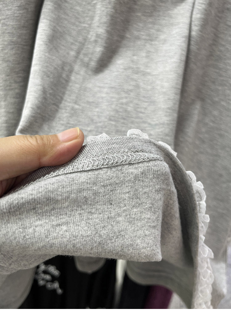 设计感蕾丝花边加绒长袖卫衣女秋冬新款宽松打底T恤衫中长款上衣