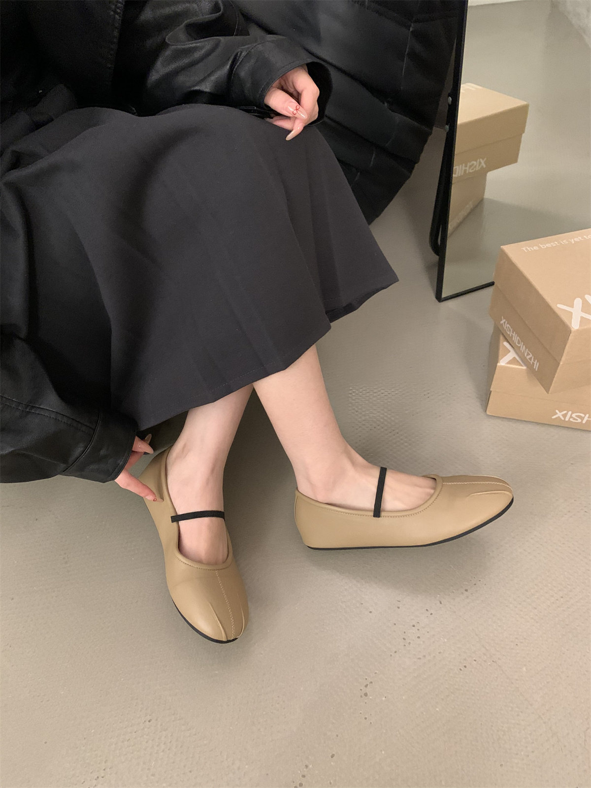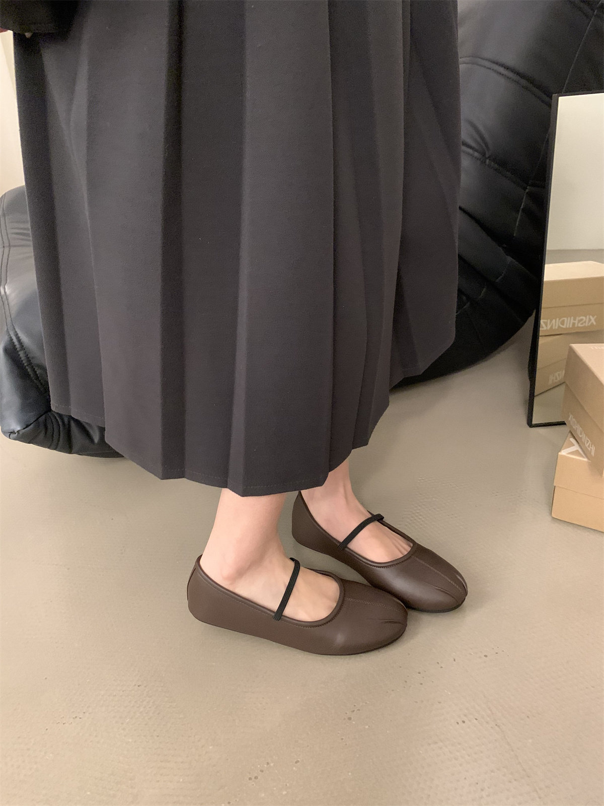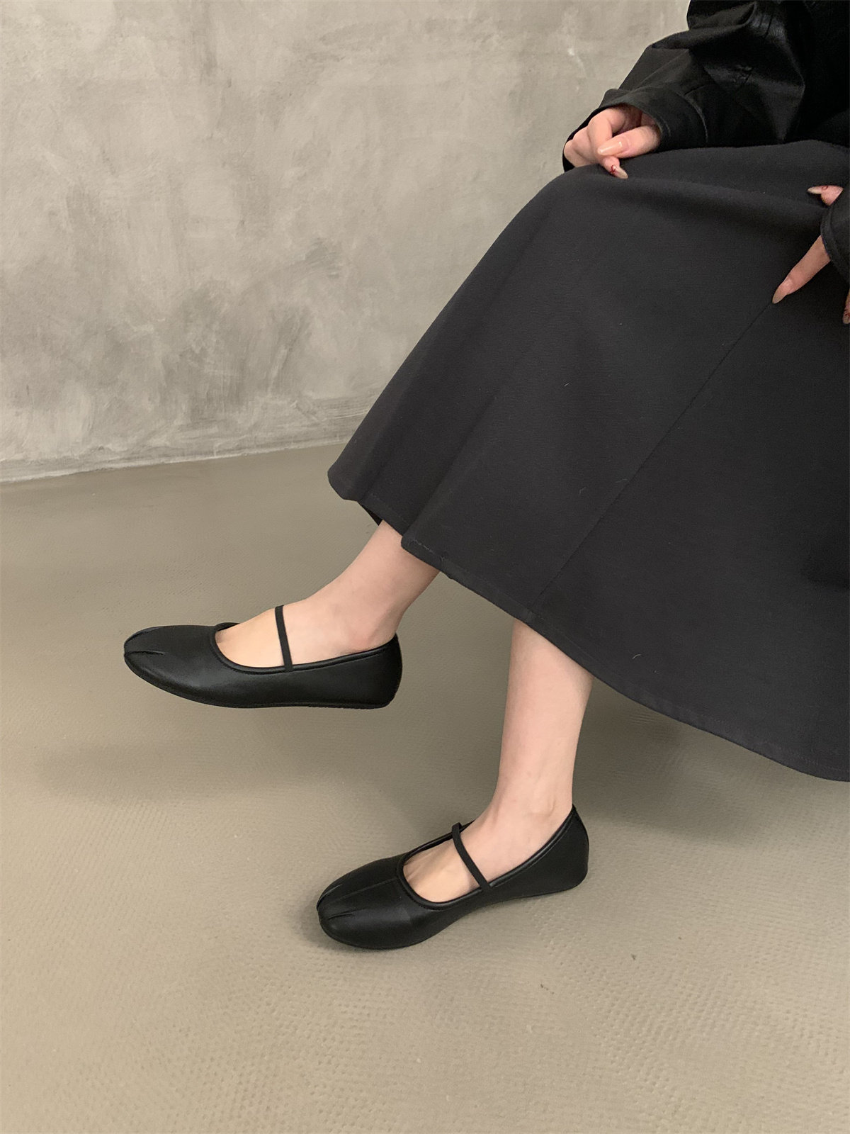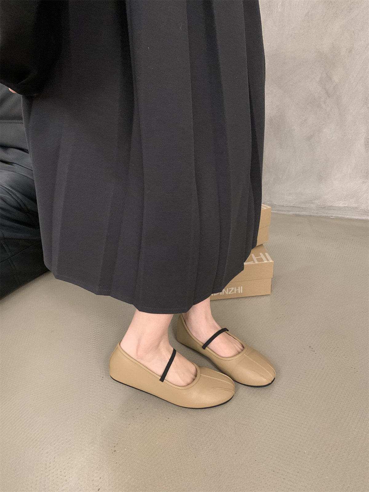 Fairy-Style French Retro Round-Toe Shallow Ballet Shoes for Women, Pleated Flat Mary Jane Shoes with a Single Strap