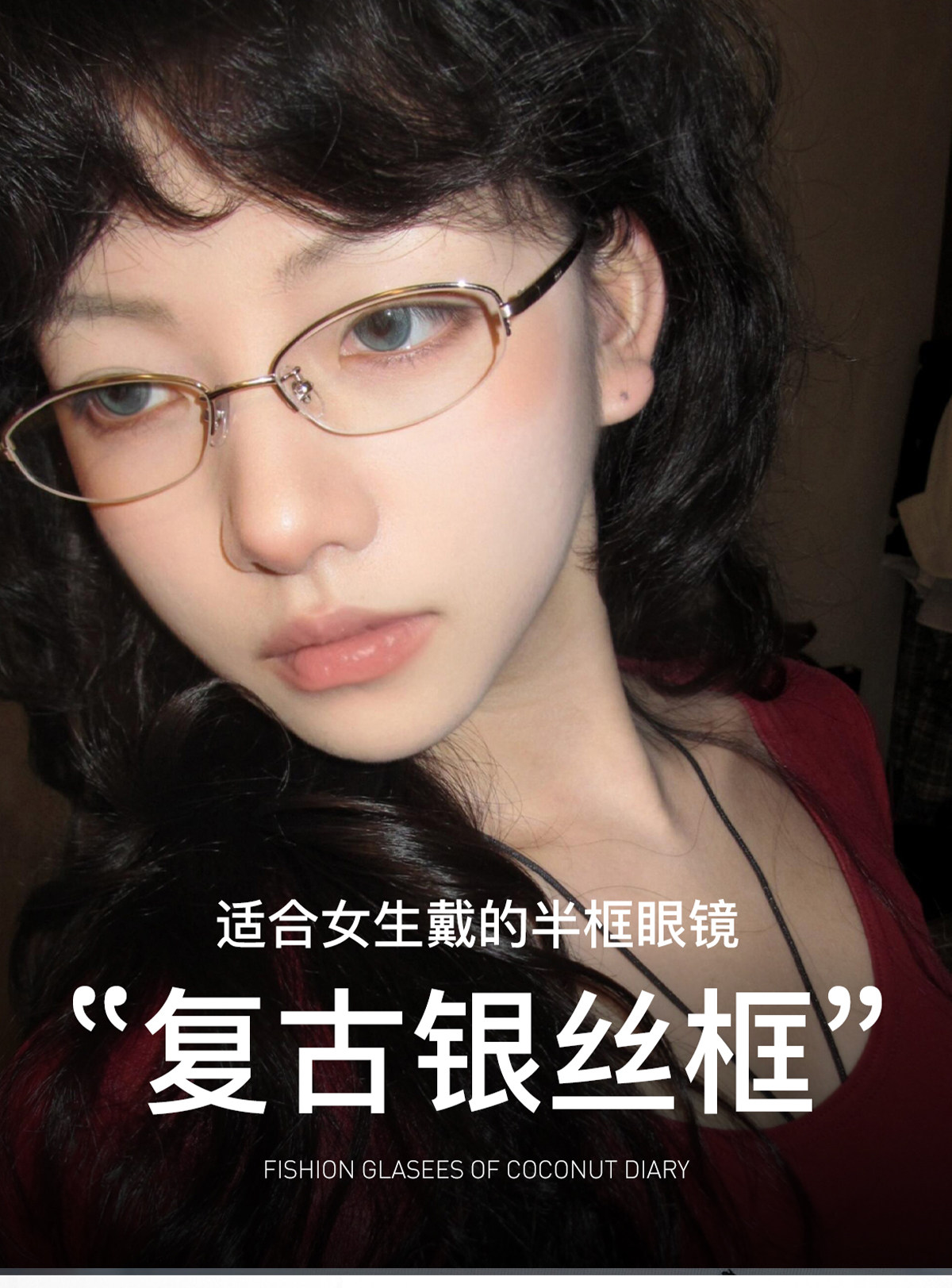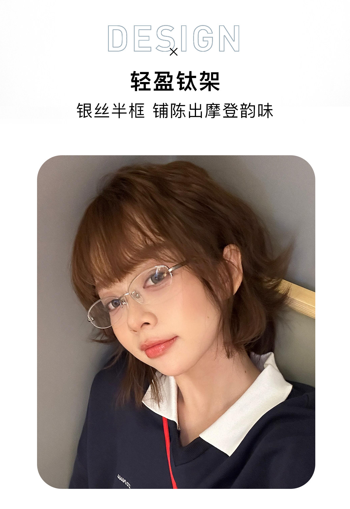 日系上半框眼镜百搭素颜休闲商务清冷风银色椰子日记近视可配度数