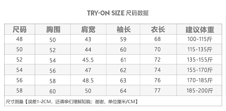 China (cm) 165 / 88-90 170 / 96-98 175 / 108-110 180 / 118-122 185 / 126-130