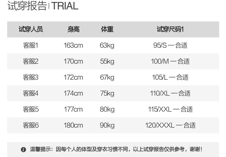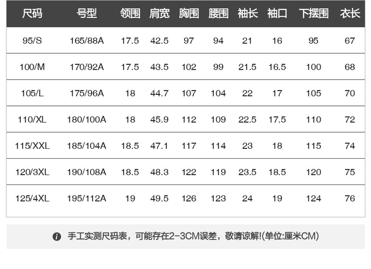 Size 95/S,100/M,105/L,110/XL,115/XXL,120/3XL,125/4XL