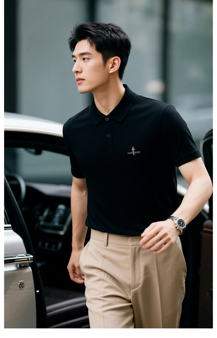 【Antibacterial, Skin-Friendly, Cool Feeling】Biyinlefen Summer Men's Short-Sleeve Polo Shirt, Multi-Color Lapel T-Shirt with Embroidered Logo
