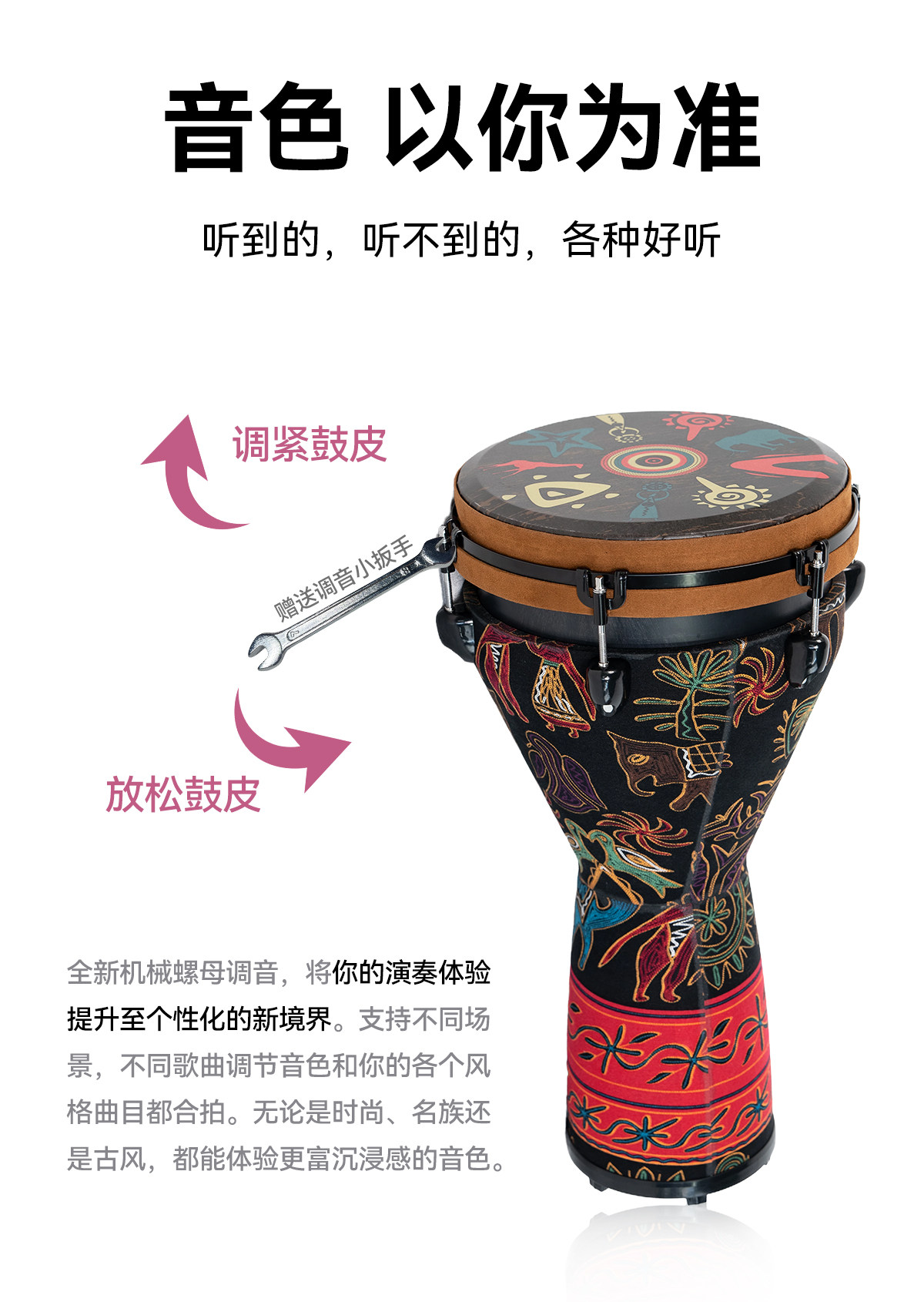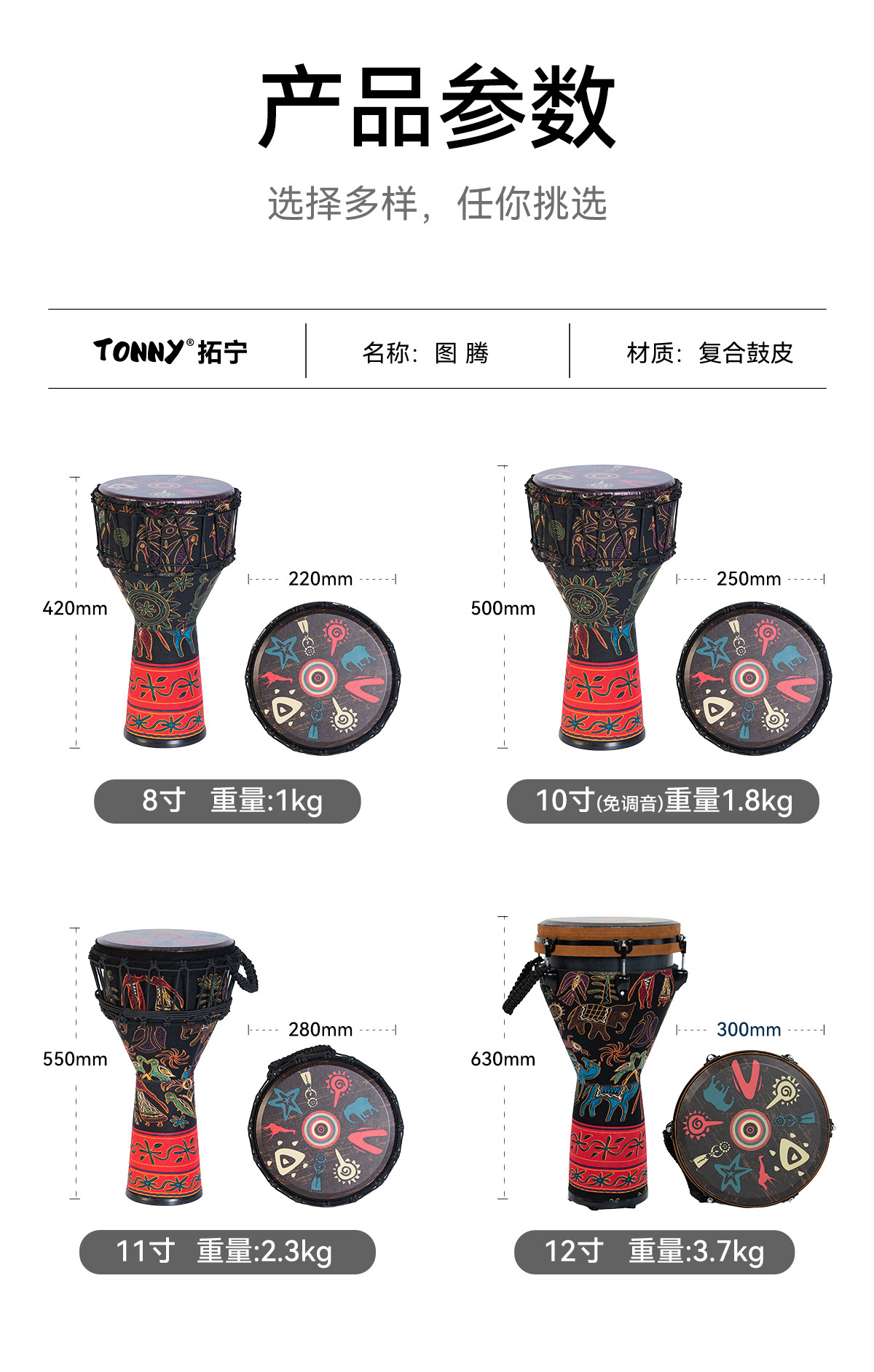 Tambor africano profesional Tuoning estándar de 12 pulgadas, tambor ligero de mano Lijiang para adultos de 10 pulgadas, tambor de juego para principiantes