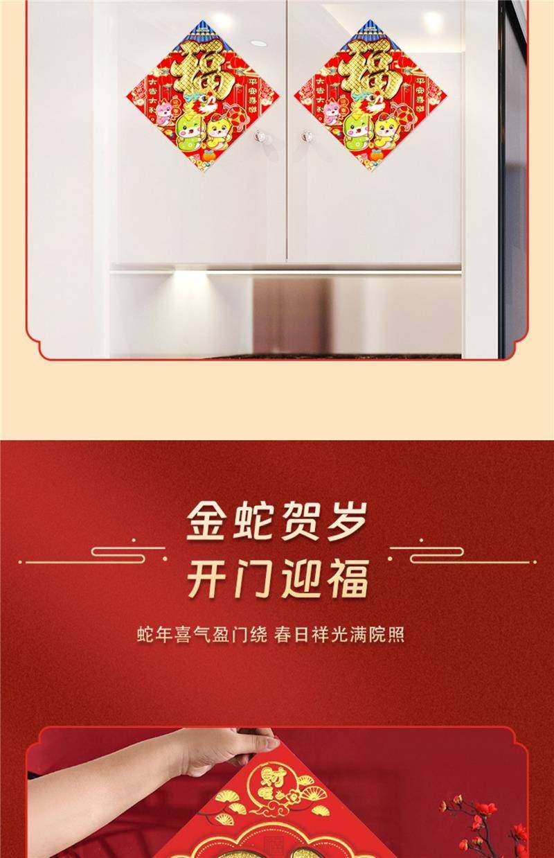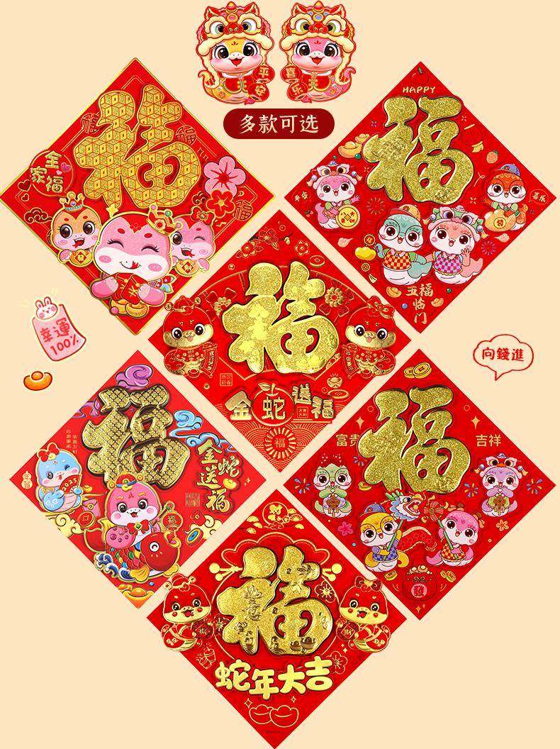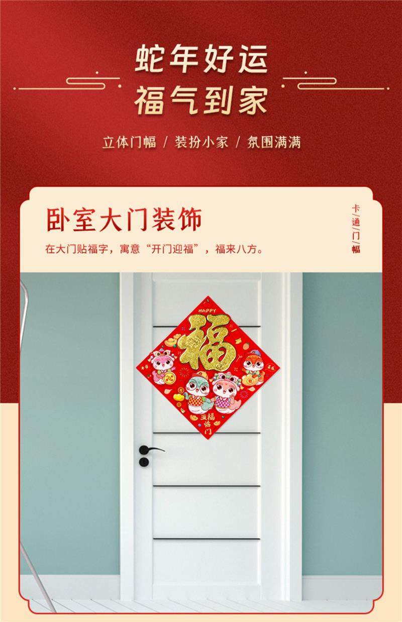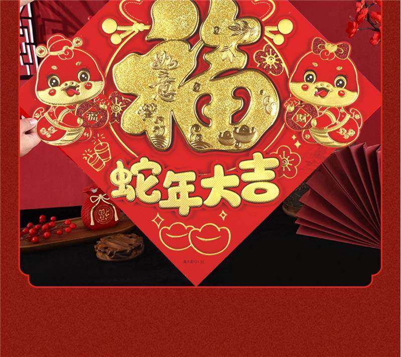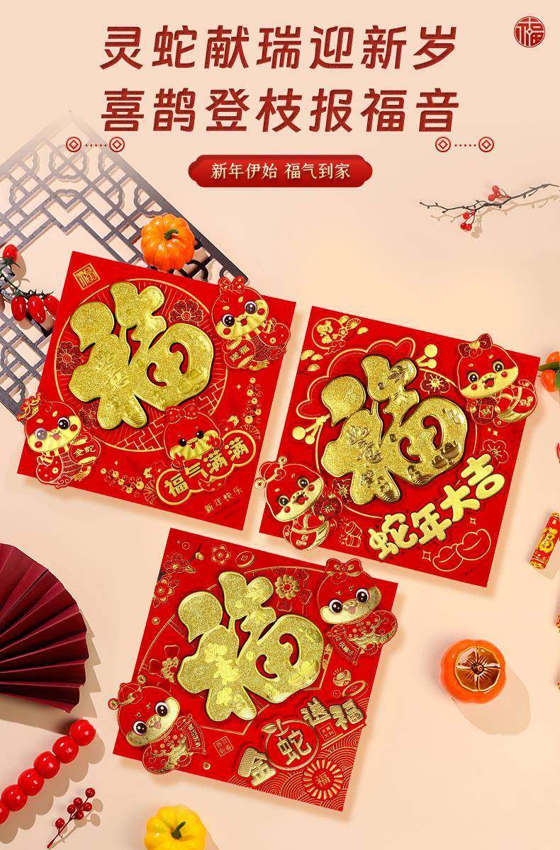 Three-dimensional blessing stickers magnetic adhesion adhesive dual-purpose flocking spring festival decoration door new year supplies 2025 new year of the snake