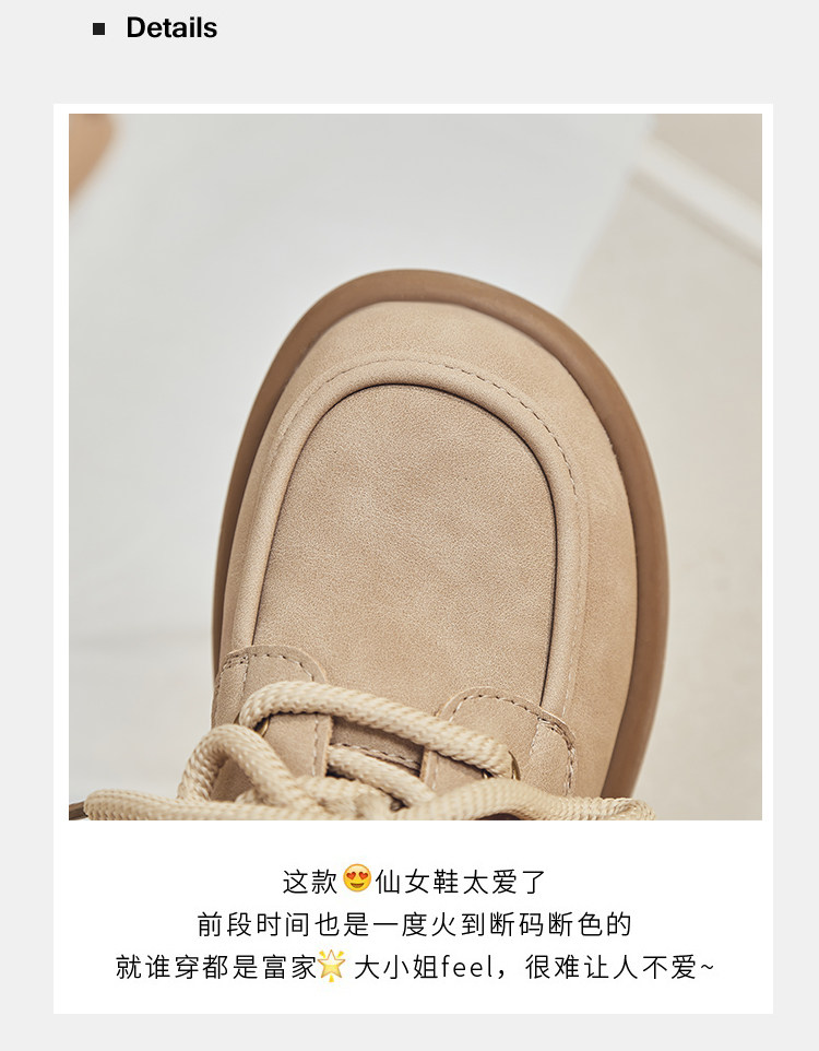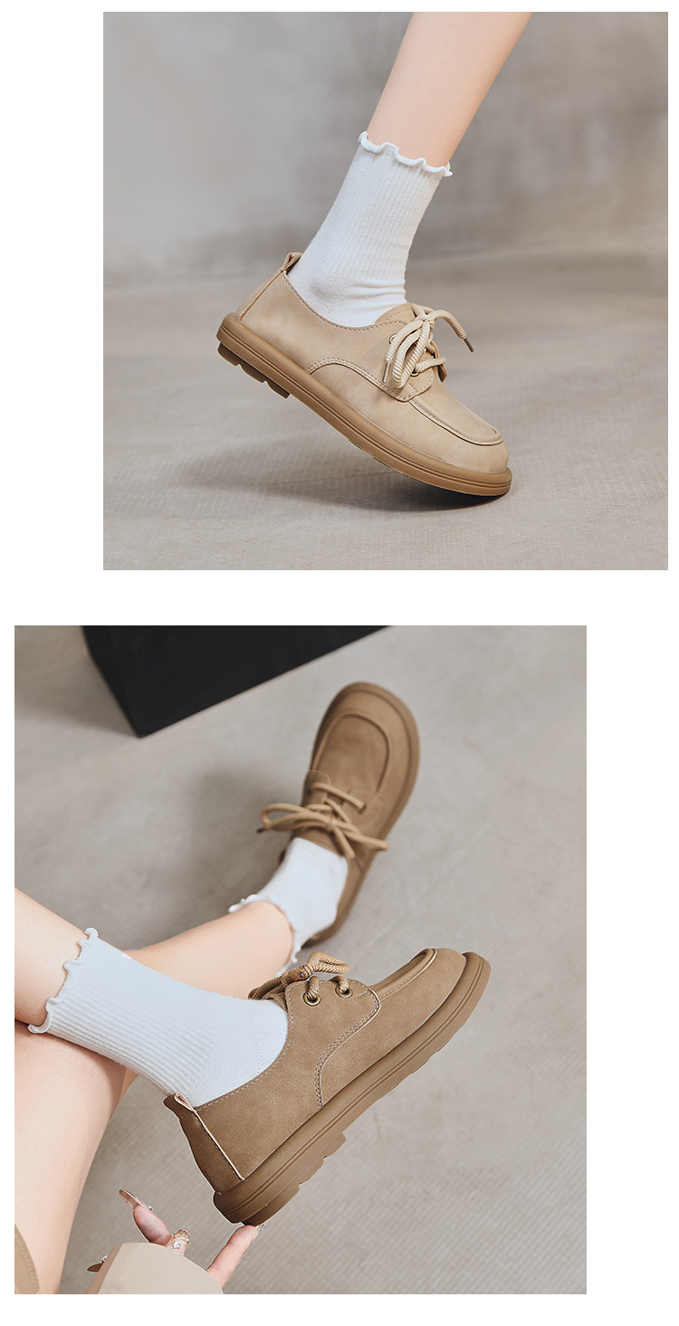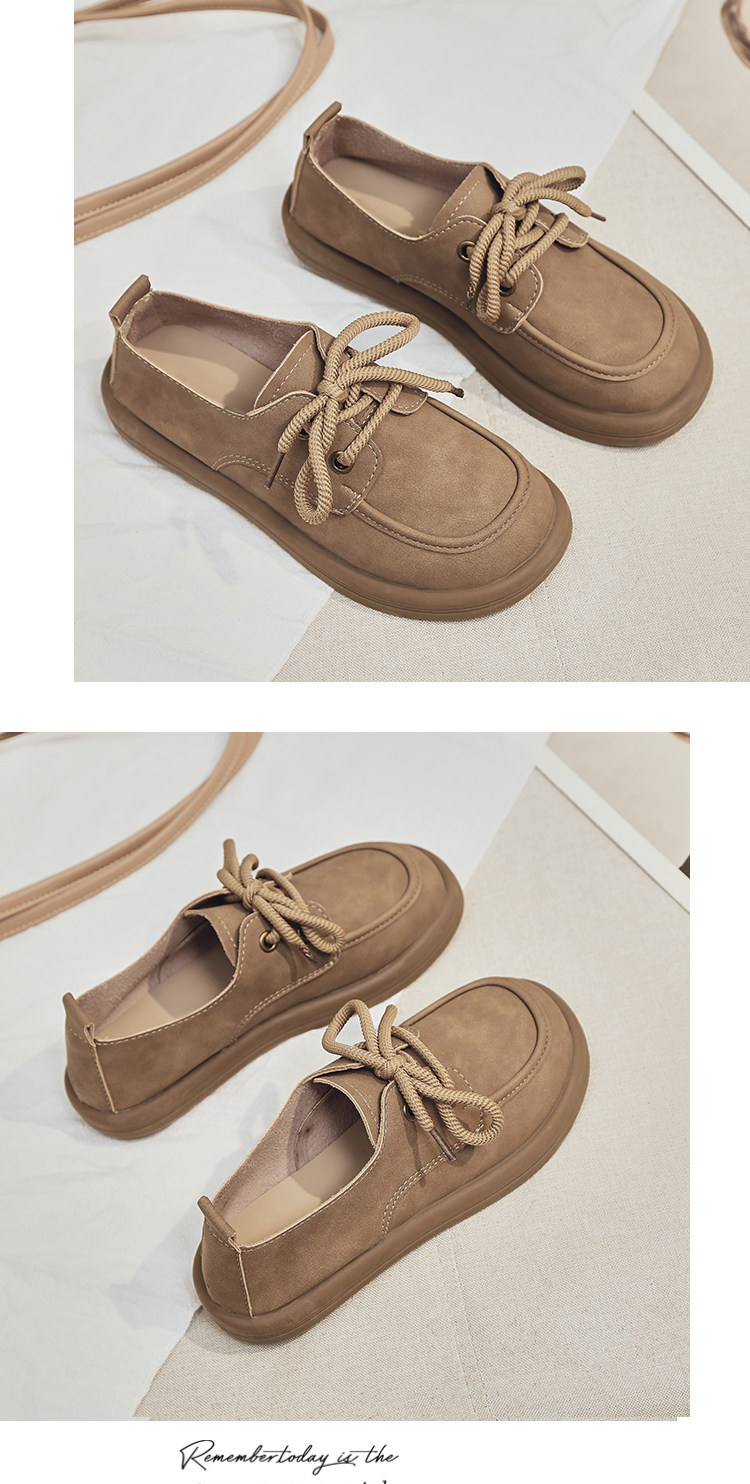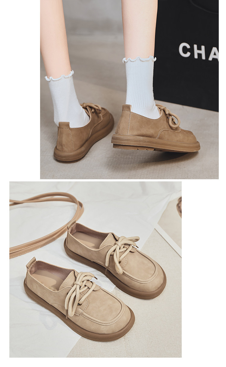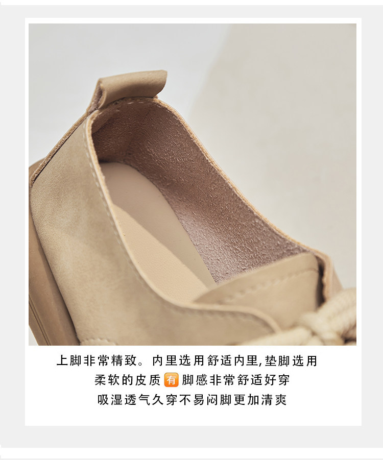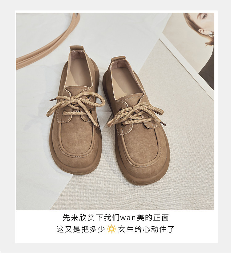 日系勃肯鞋女2025春季新款丑萌大头豆豆单鞋复古英伦风系带乐福鞋