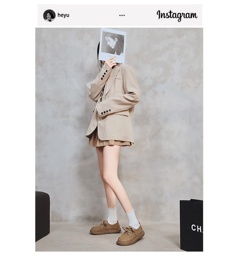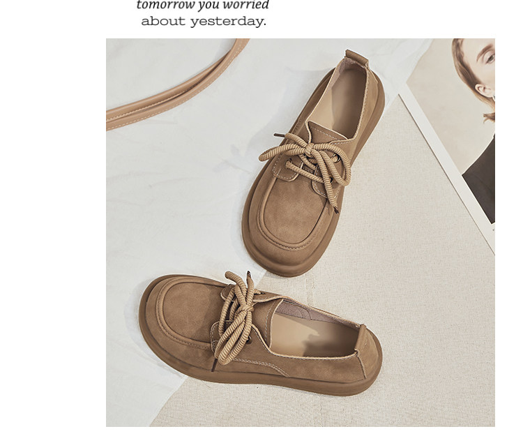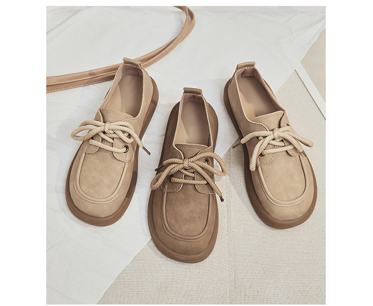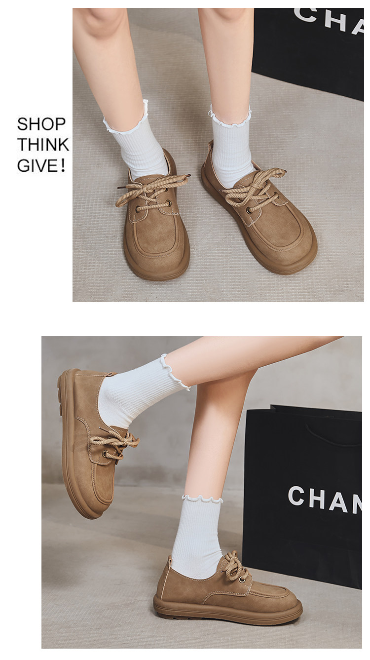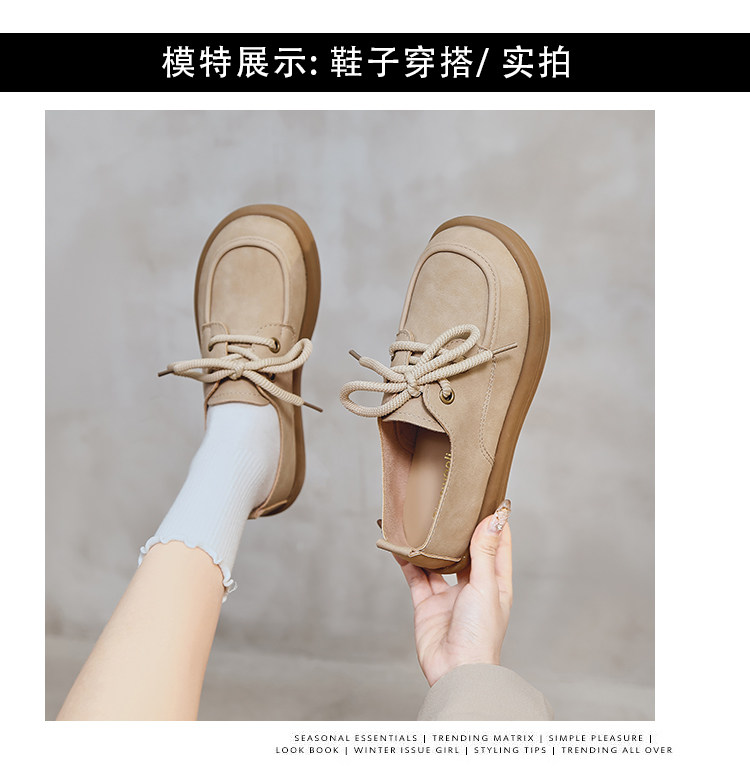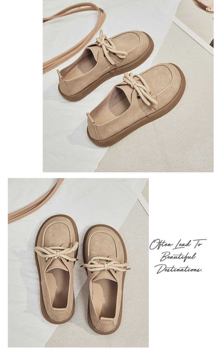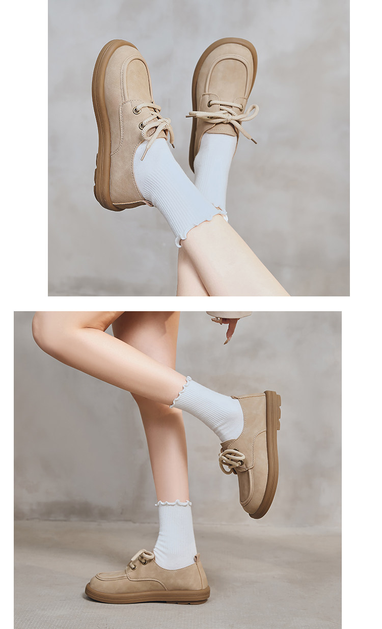 日系勃肯鞋女2025春季新款丑萌大头豆豆单鞋复古英伦风系带乐福鞋