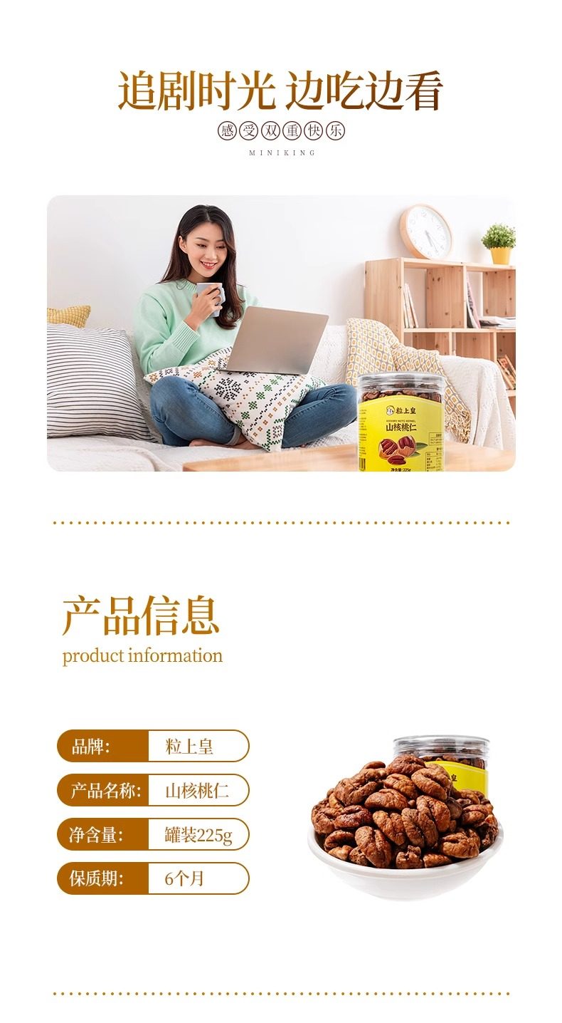 粒上皇山核桃仁225g新货临安特产原味小核桃罐装坚果休闲零食炒货