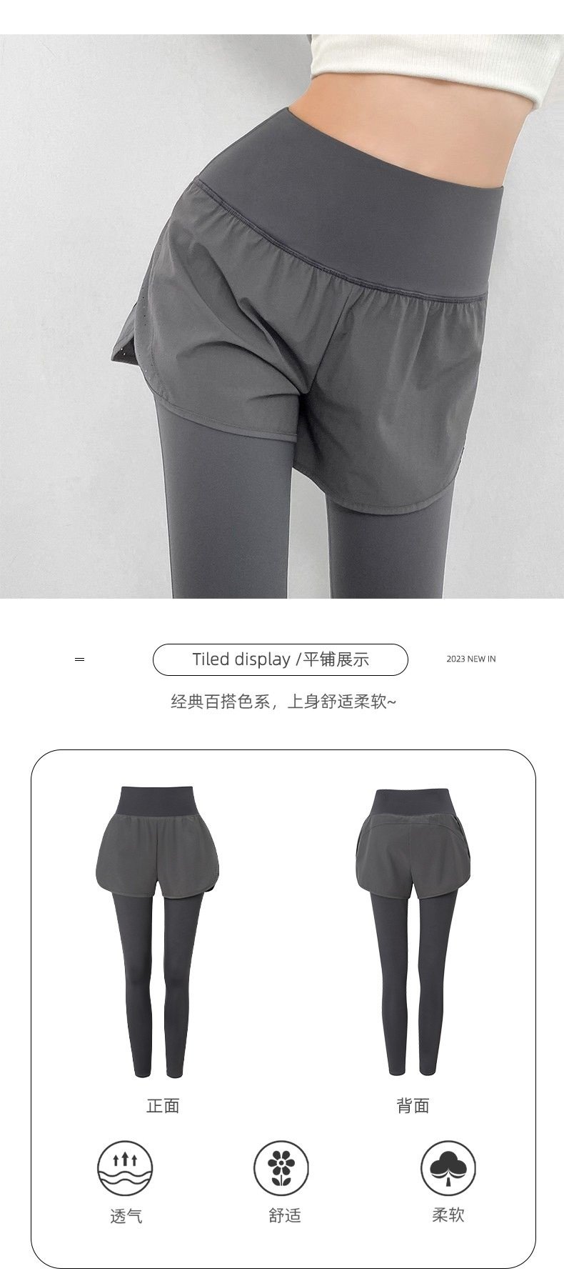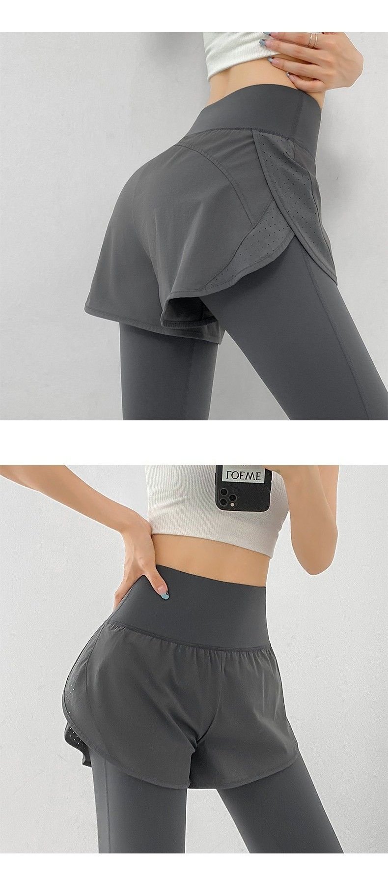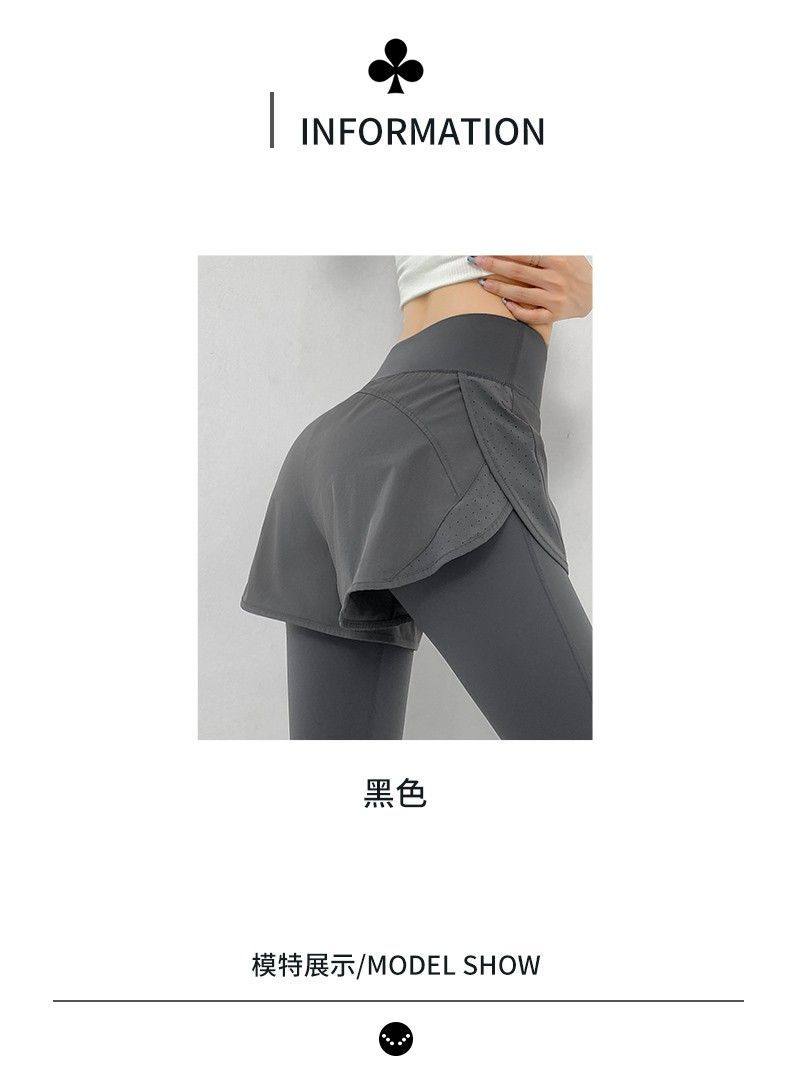 瑜伽裤假两件女高腰提臀秋季宽松健身裤跑步训练运动速干紧身长裤