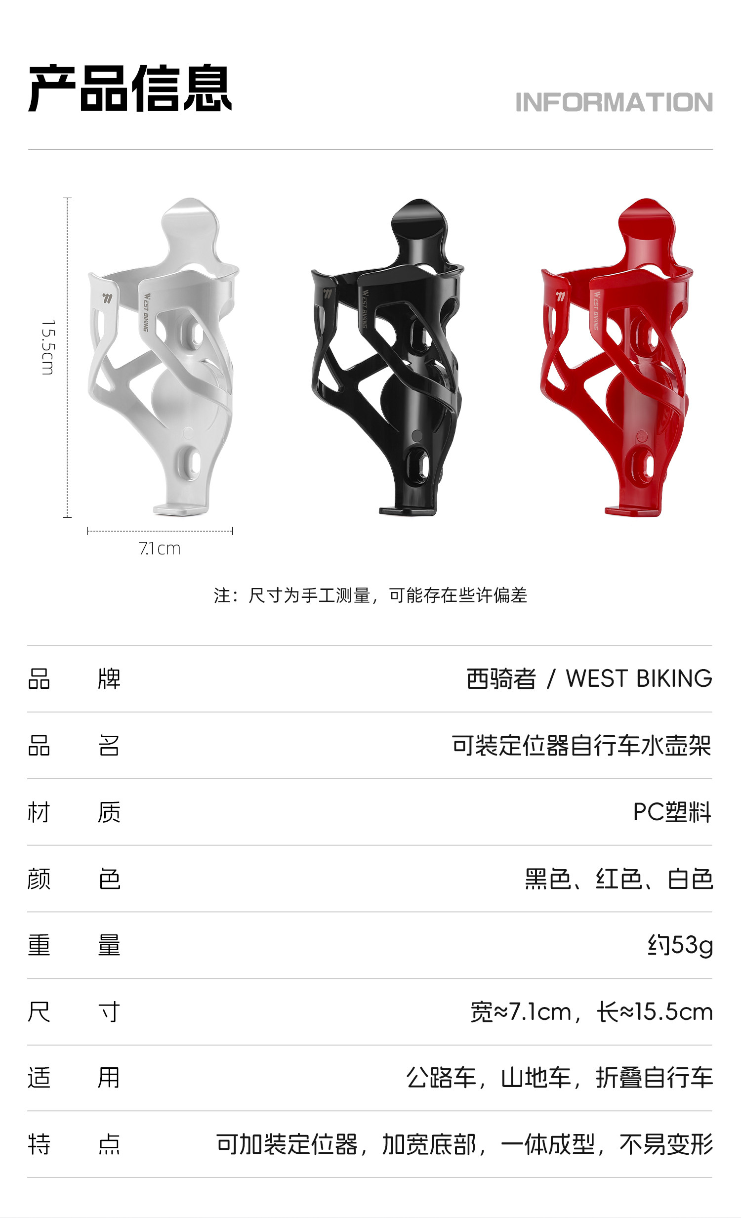 West Rider Water Bottle Cage Bicycle Cup Holder Ultra-Light Mountain Bike Road Bike Cup Holder Universal Bicycle Cup Holder