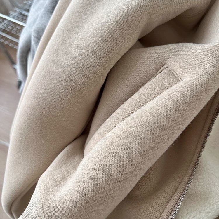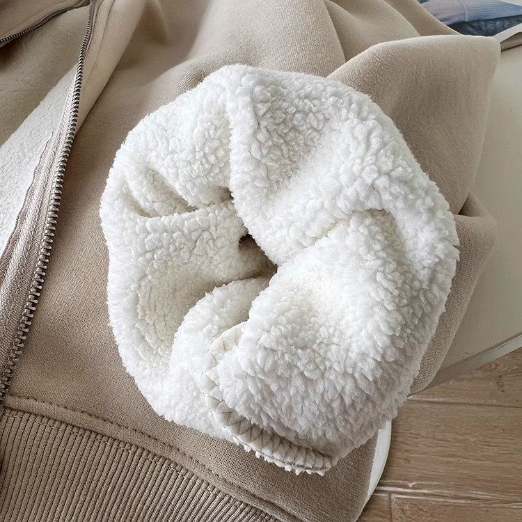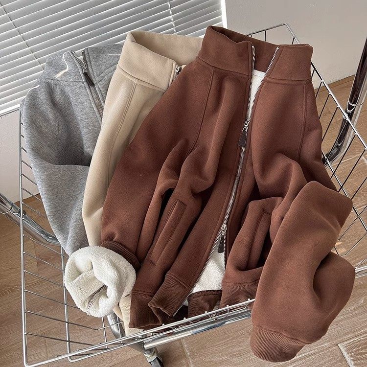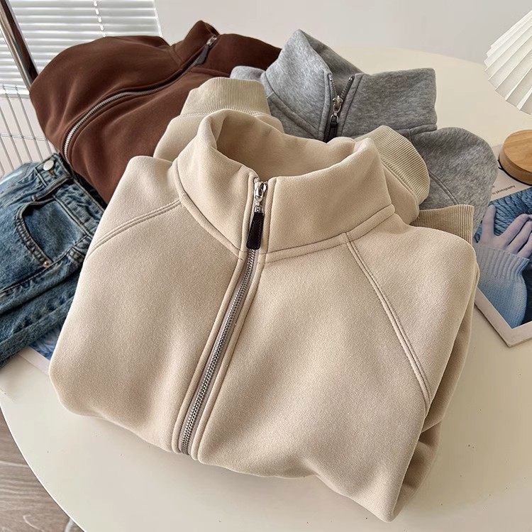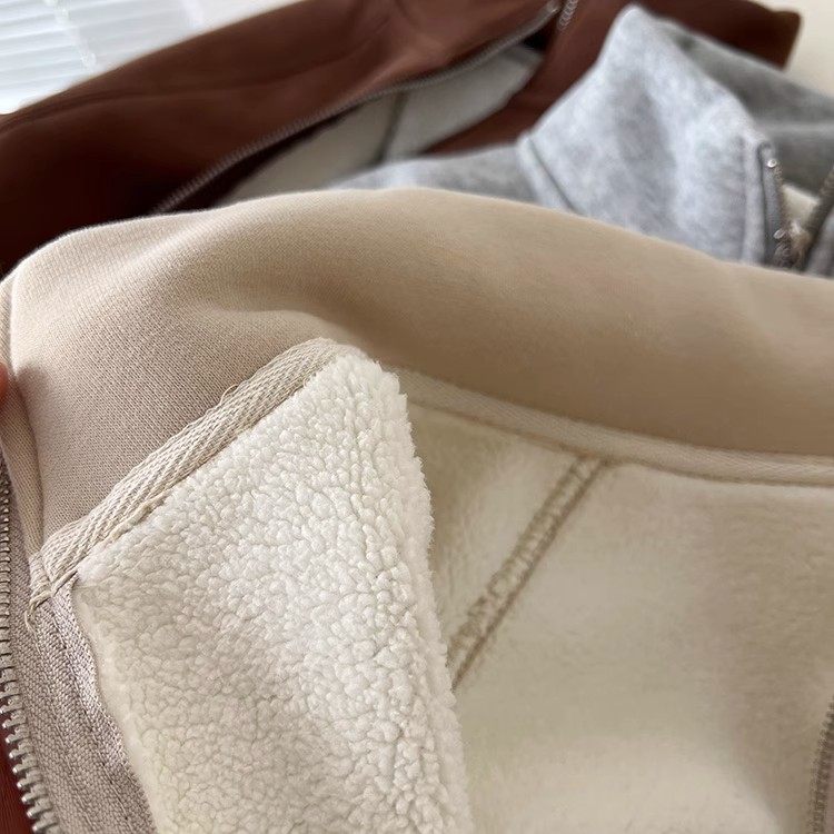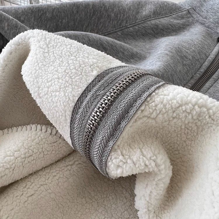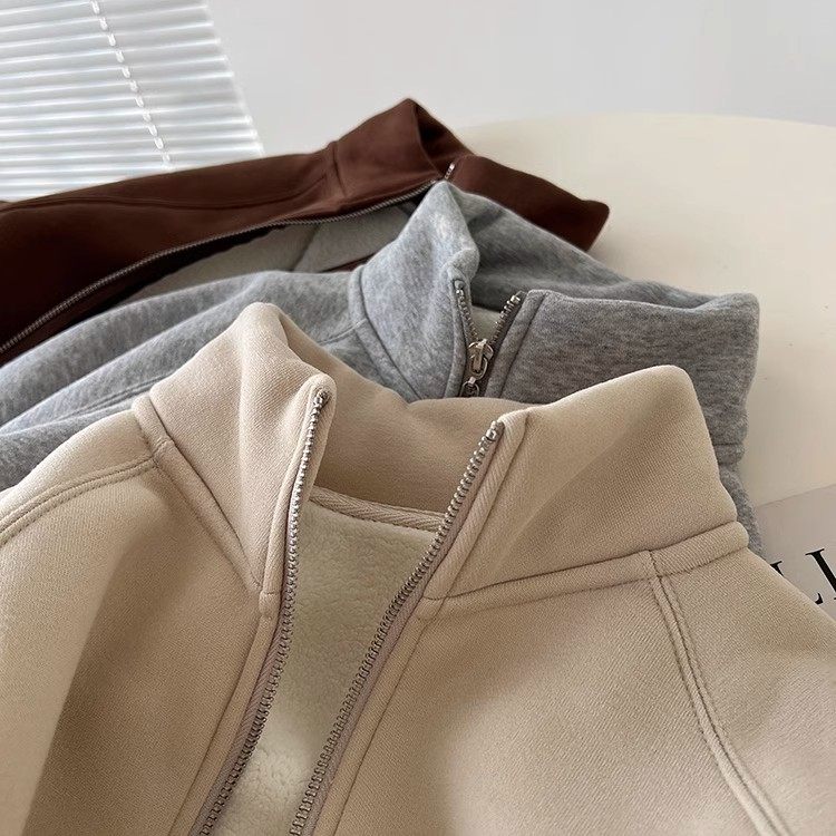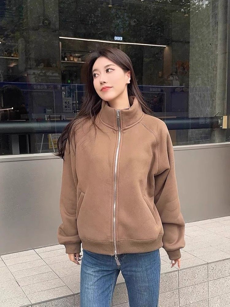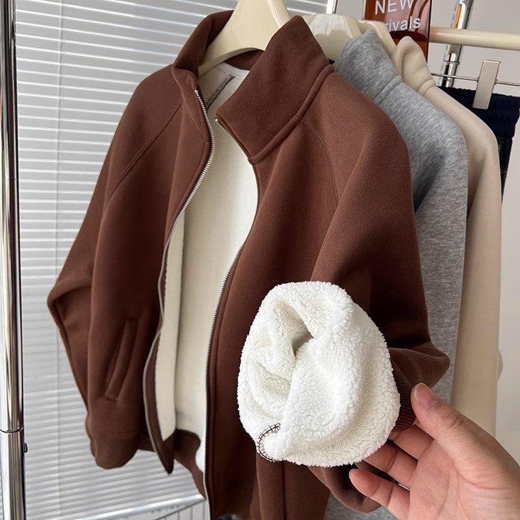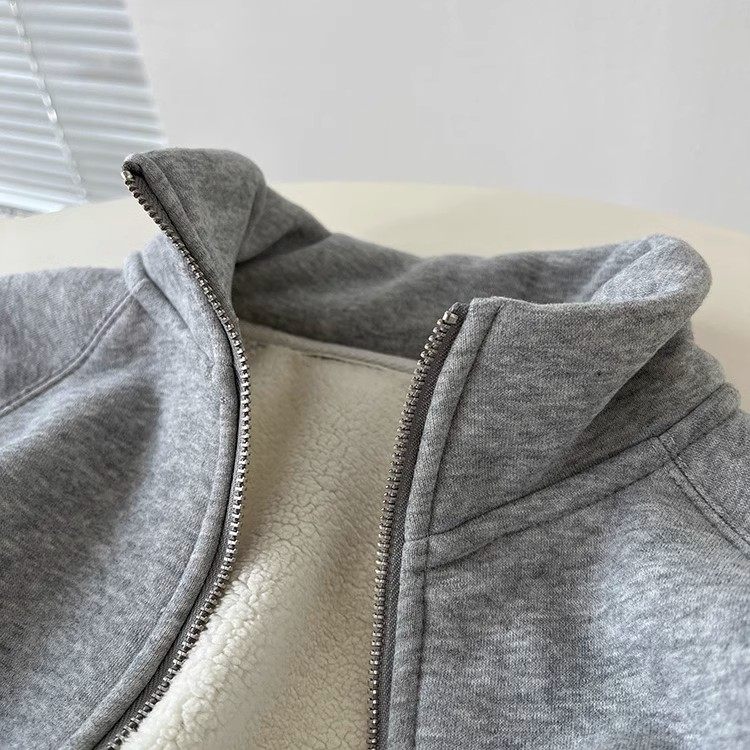 Winter Little Heater! Thickened Lamb Fleece Stand-Up Collar Sweatshirt for Women, Warm and Versatile, Casual Double-Zip Cardigan Jacket, Trendy