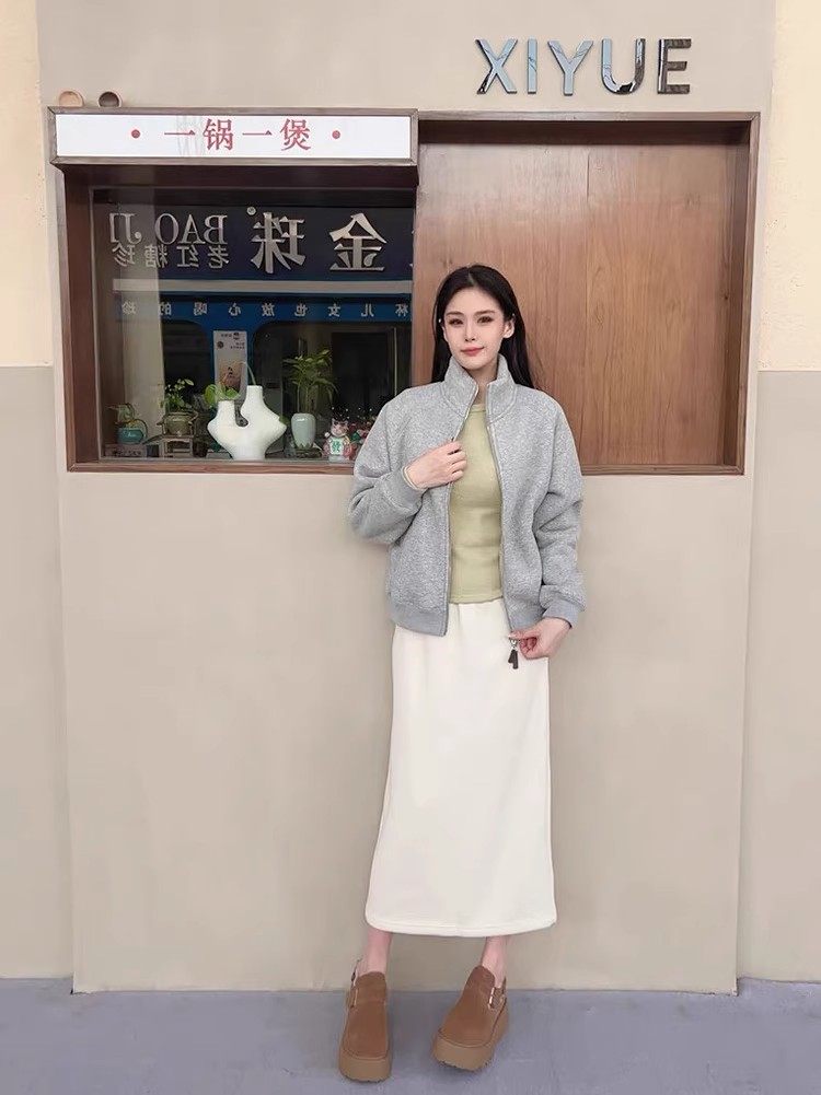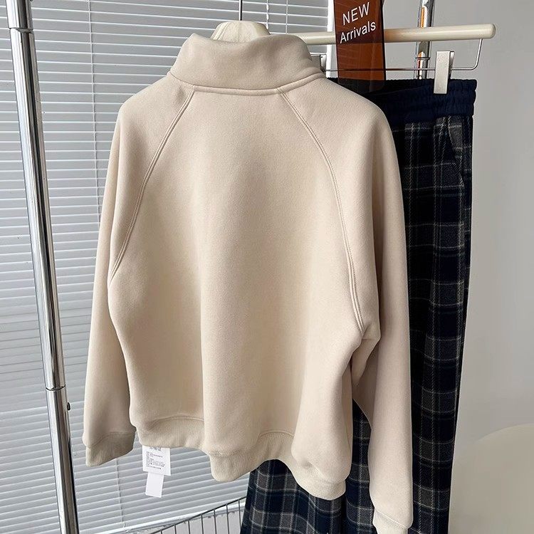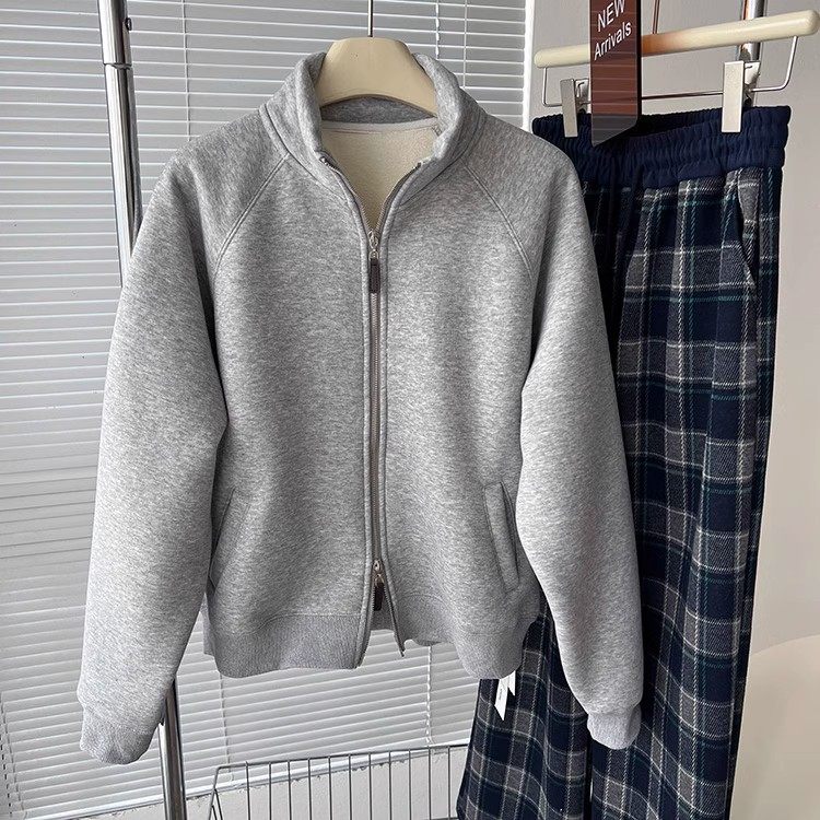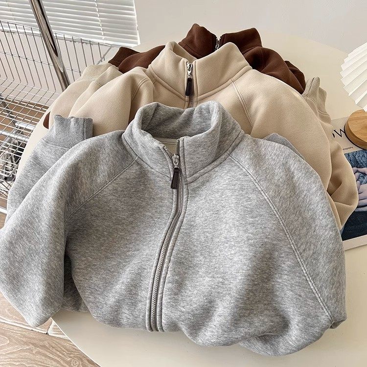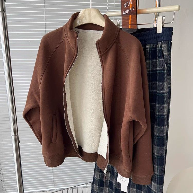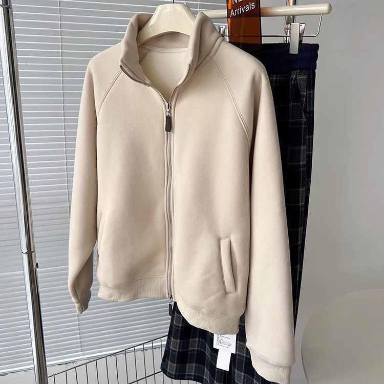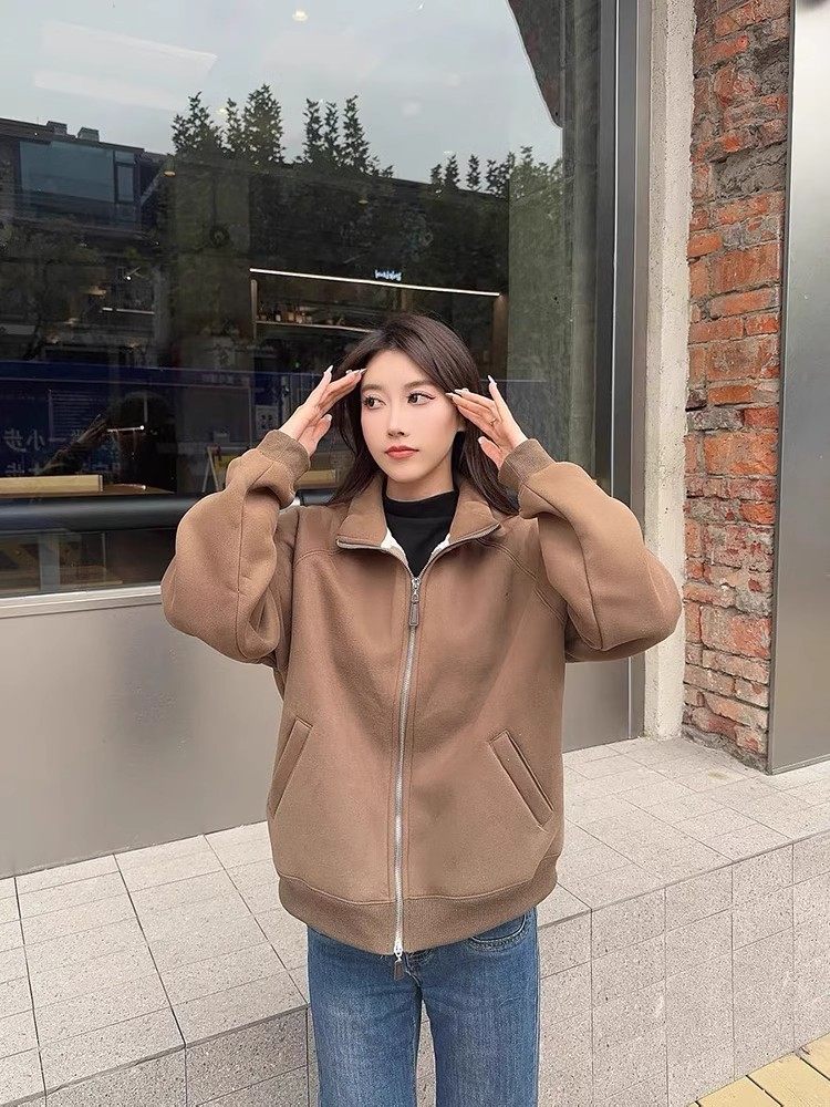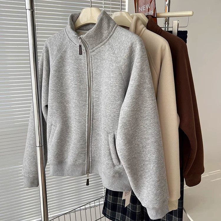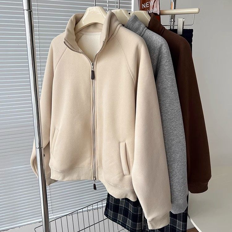 Winter Little Heater! Thickened Lamb Fleece Stand-Up Collar Sweatshirt for Women, Warm and Versatile, Casual Double-Zip Cardigan Jacket, Trendy