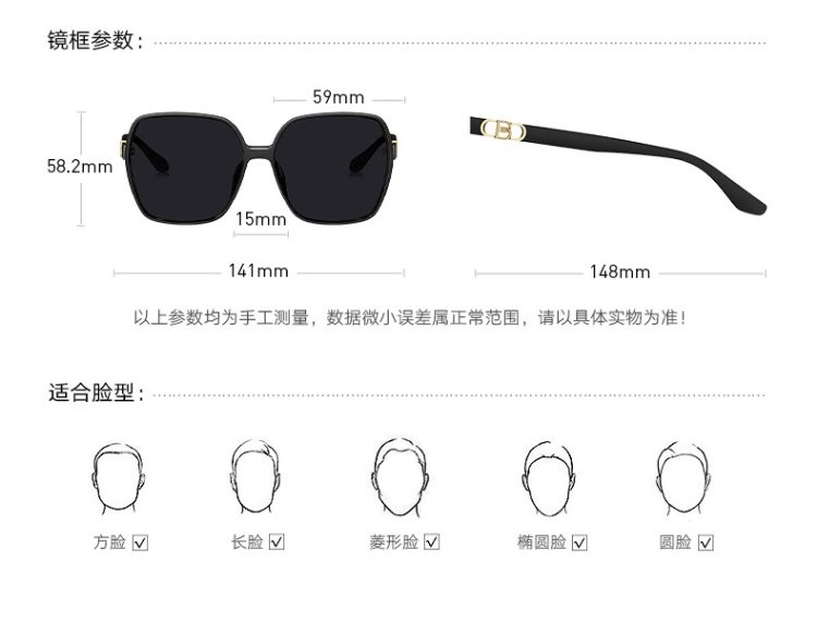 [New Year's Gift] Tyrannosaurus Glasses 25 New Large Frame Beauty Sunglasses Sun Protection Polarized Sunglasses for Women Bl5098