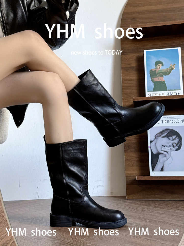 Botas cortas a media pantorrilla con punta redonda estilo Wasteland para mujer Botas de caballero de mm de grasa de tubo ancho Botas de chimenea de cuero suave para mujer Botas Martin de otoño e invierno 2025