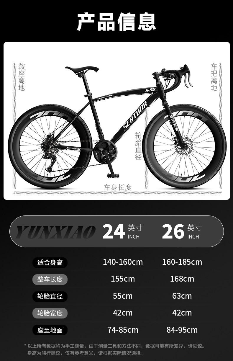 Размер 24 дюйма подходят для прямых рулей длиной 140–155 см.,24 дюйма подходят для изогнутого руля длиной 140–155 см.,26 дюймов подходят для прямых рулей длиной 155-185 см.,26 дюймов подходят для изогнутых рулей 155-185 см.,26 дюймов, рекомендуемая высота 165-185 см/700°С