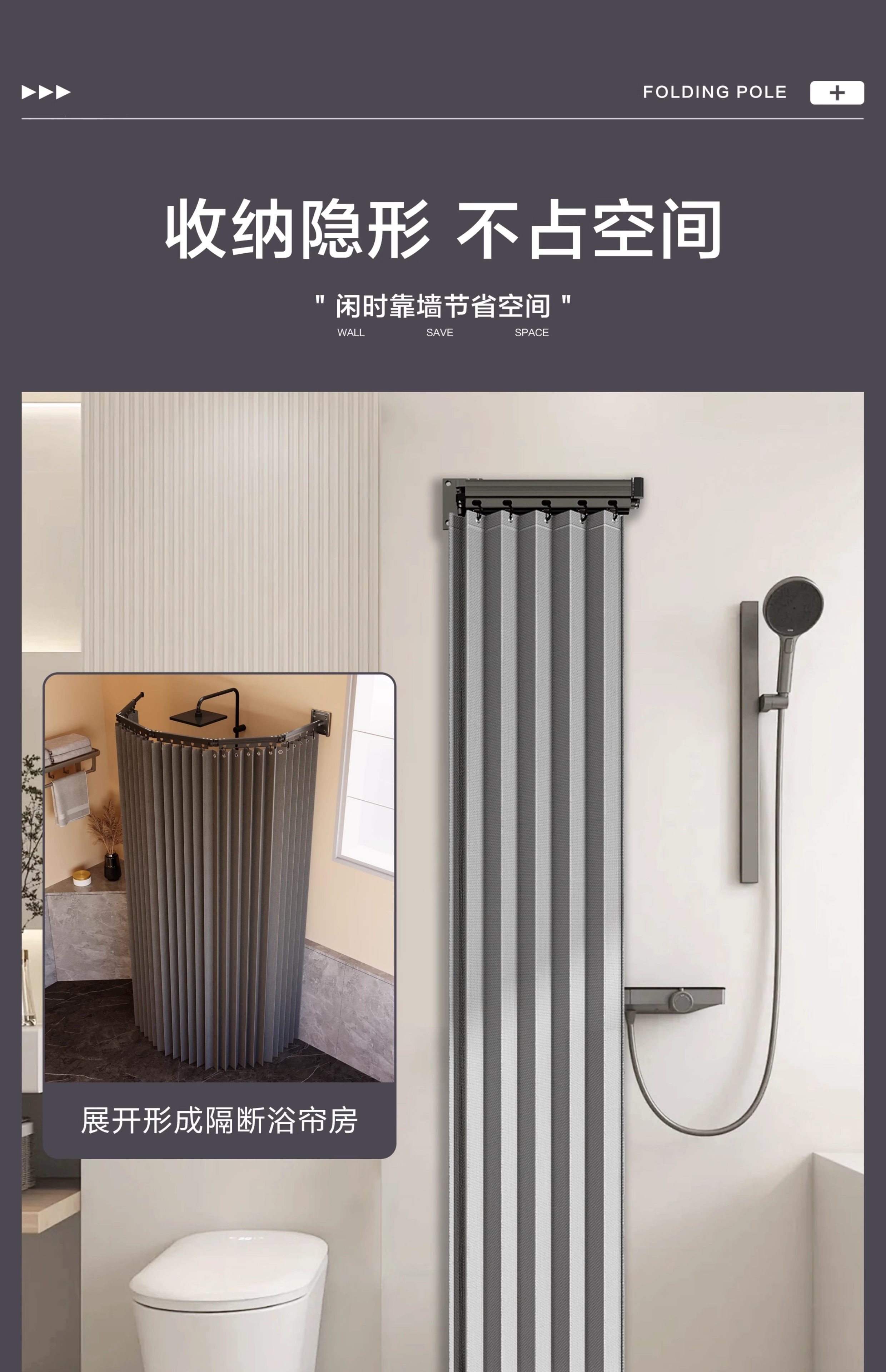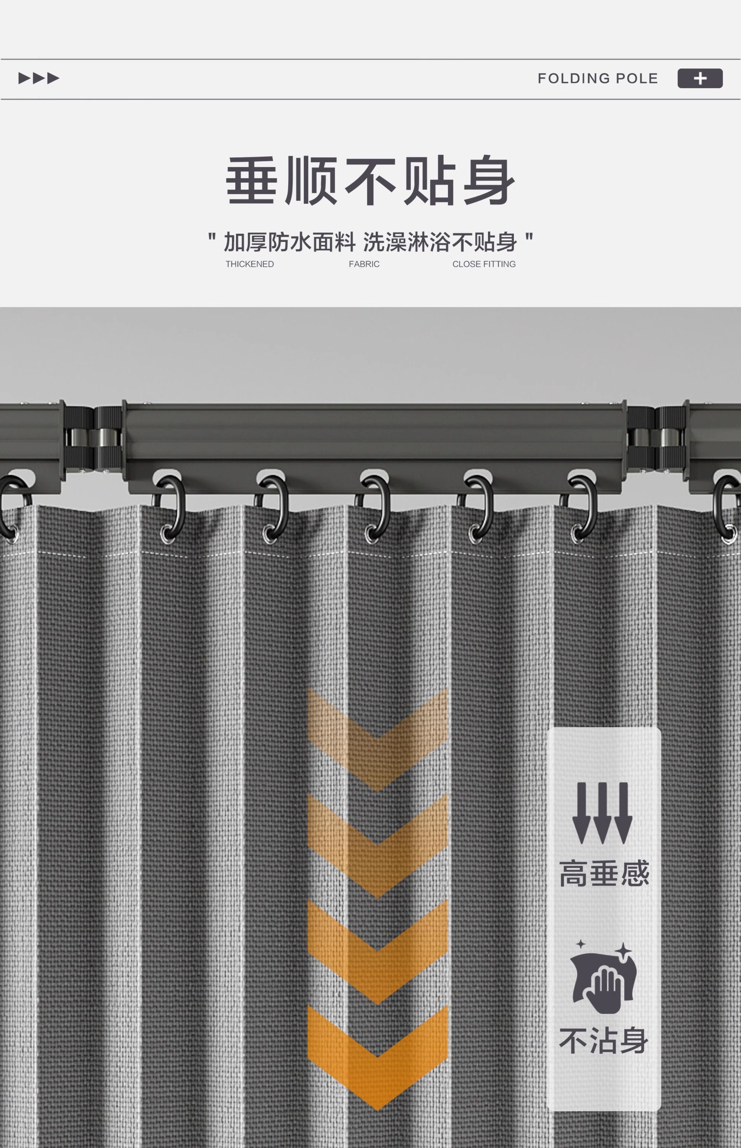 Folding Rod Bathroom Shower Curtain, Foldable Invisible Bathroom Shower Screen, Waterproof Partition for Dry and Wet Separation, Water-Blocking Curtain
