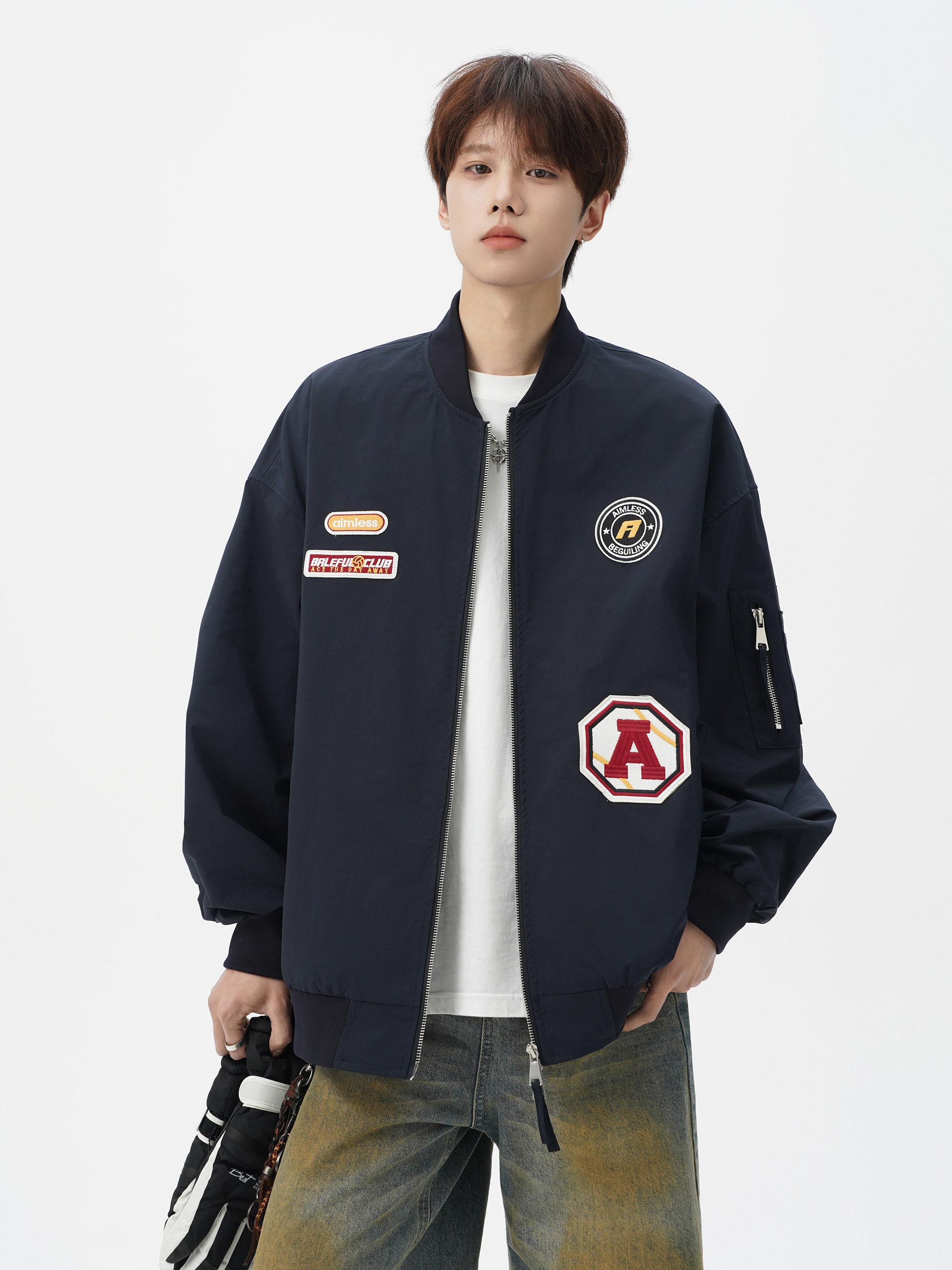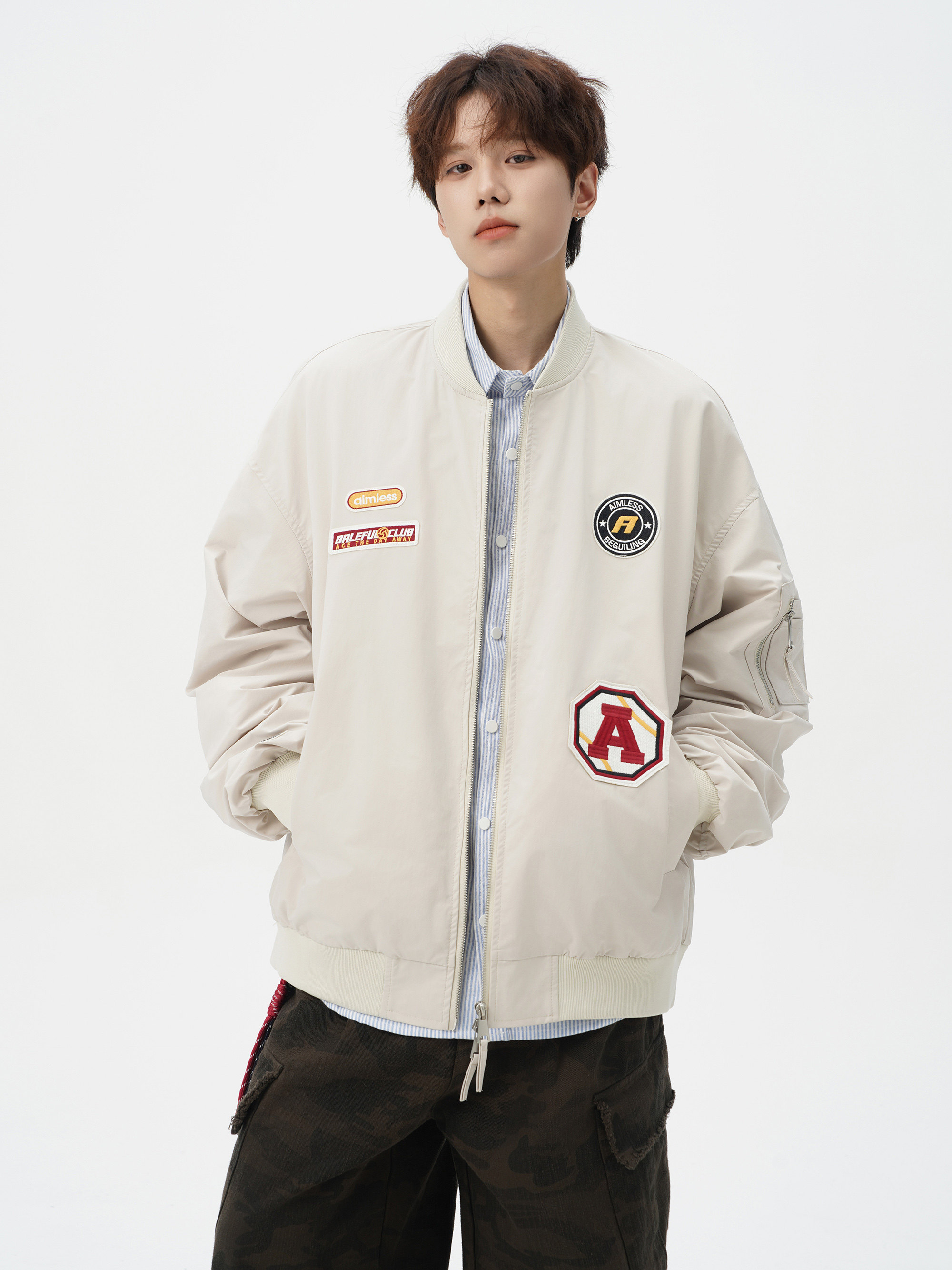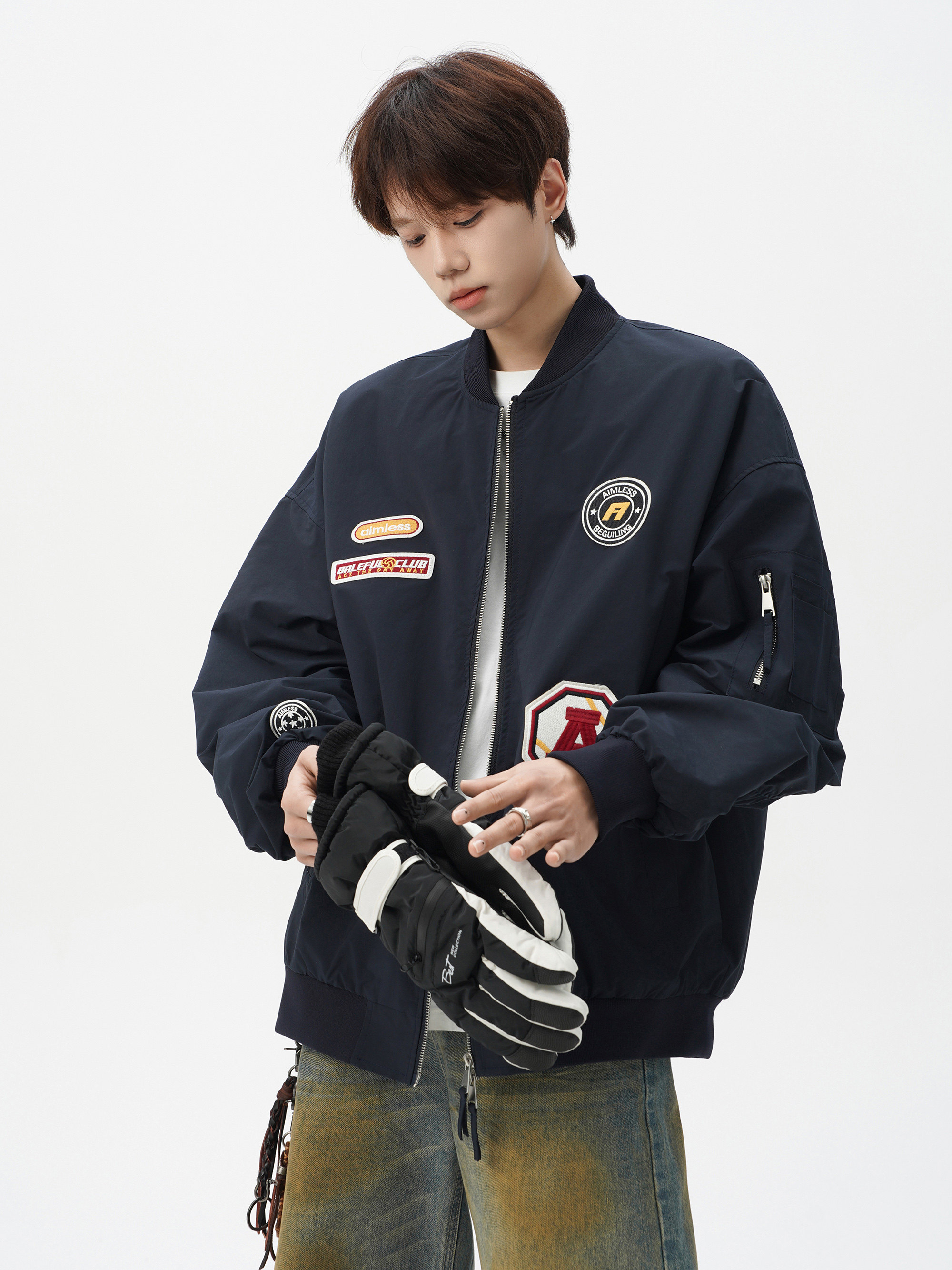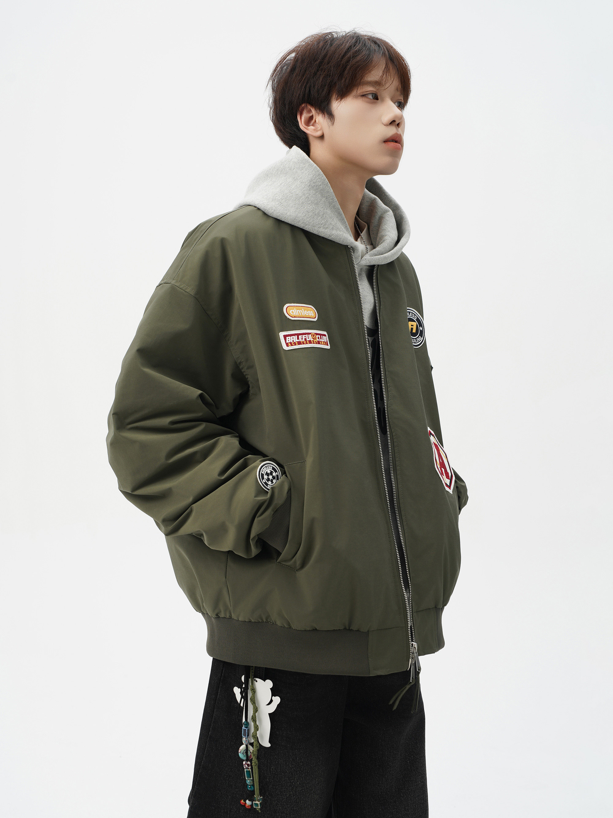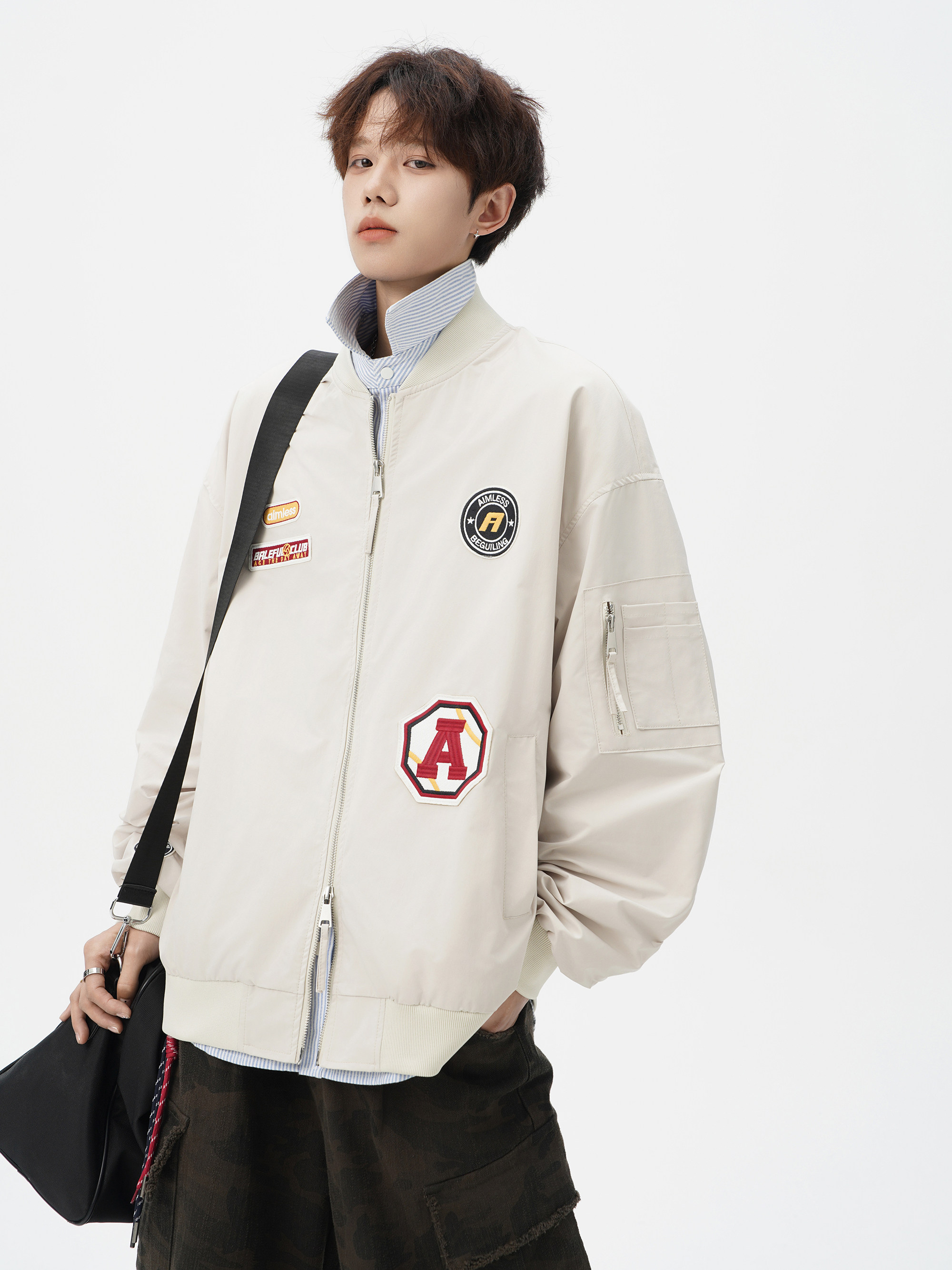 Chaqueta americana con cuello de béisbol para hombre, diseño de insignia retro de invierno, ropa de motocicleta, ropa de trabajo holgada de calle, chaqueta de moda