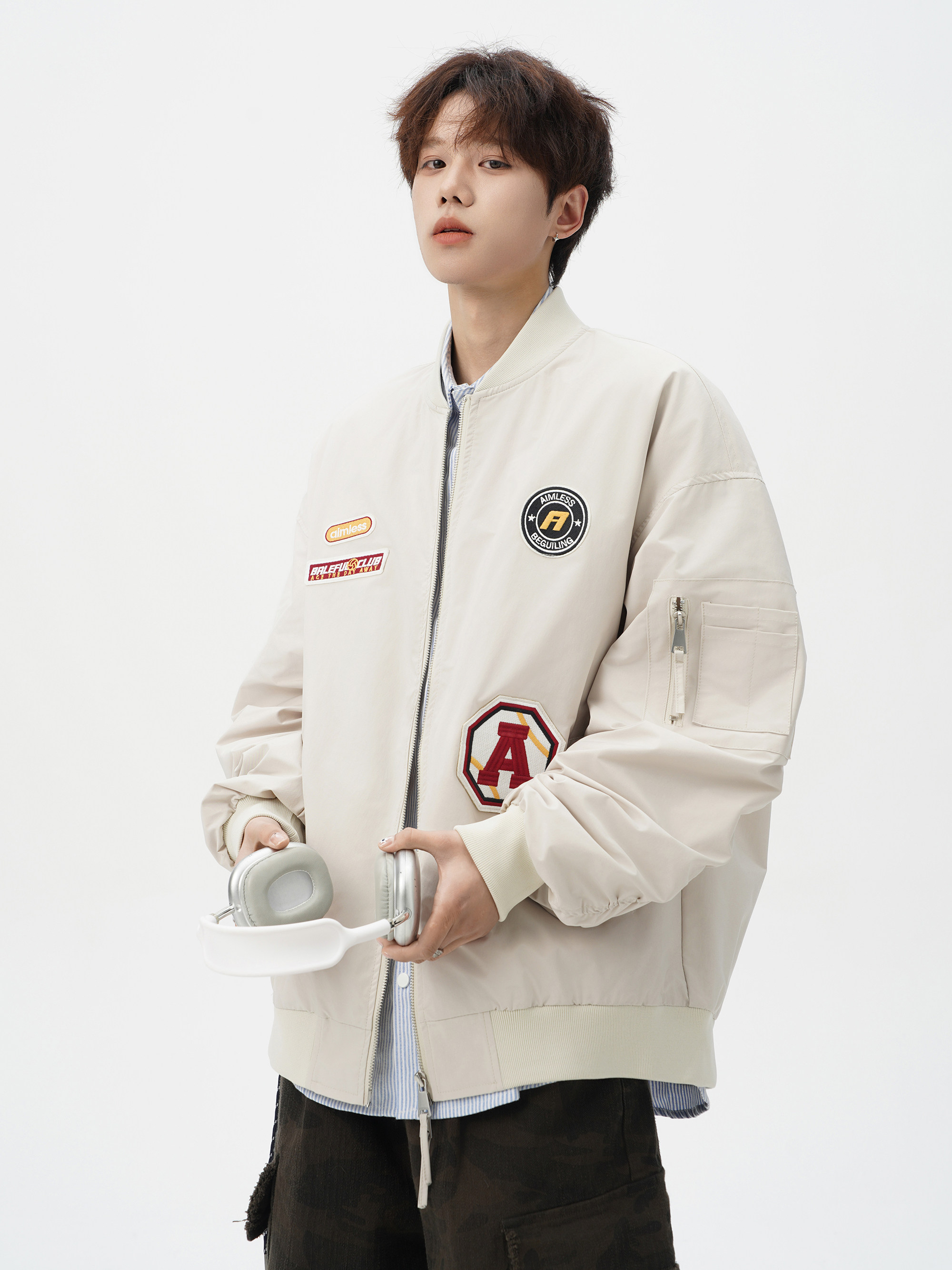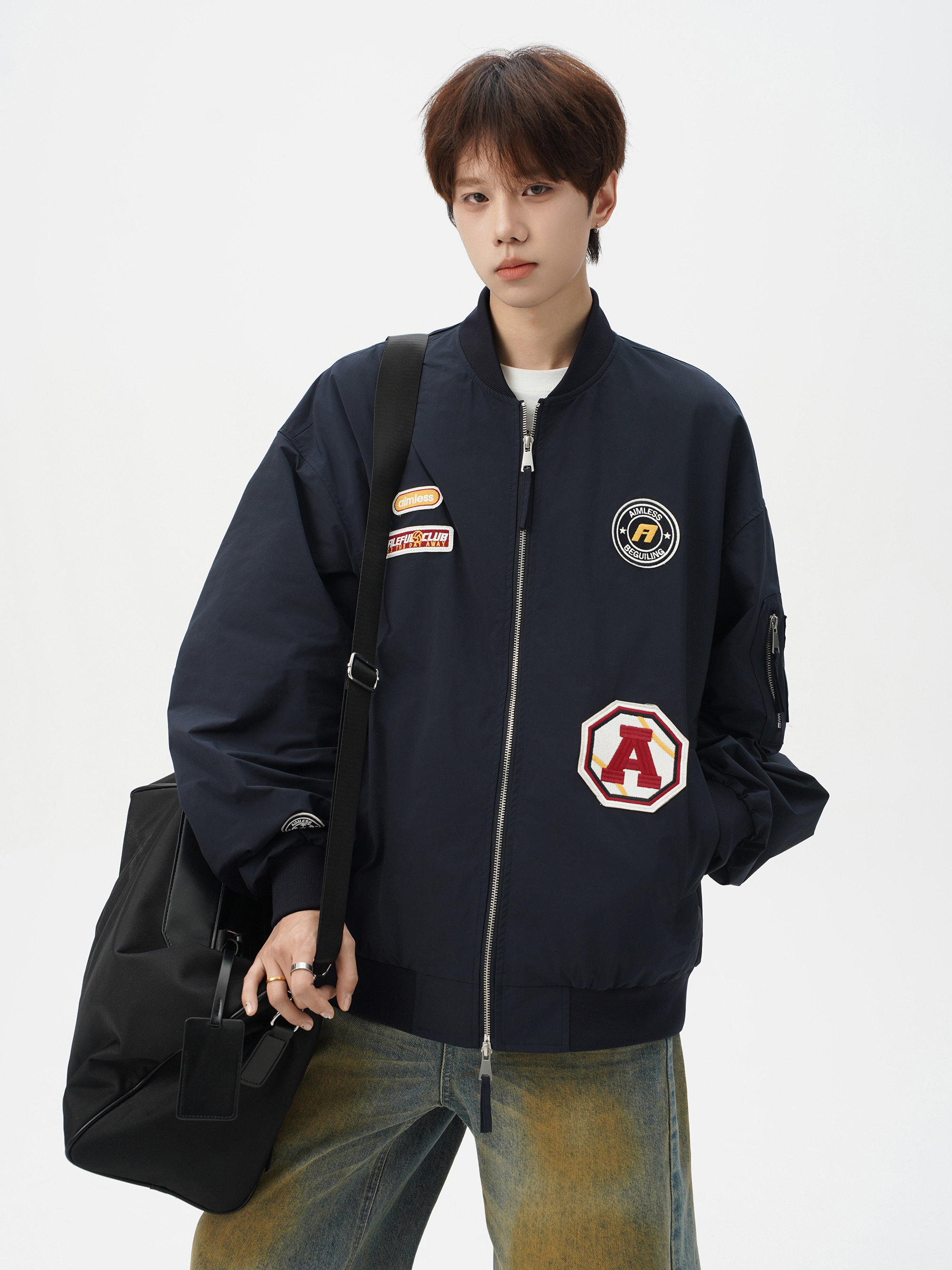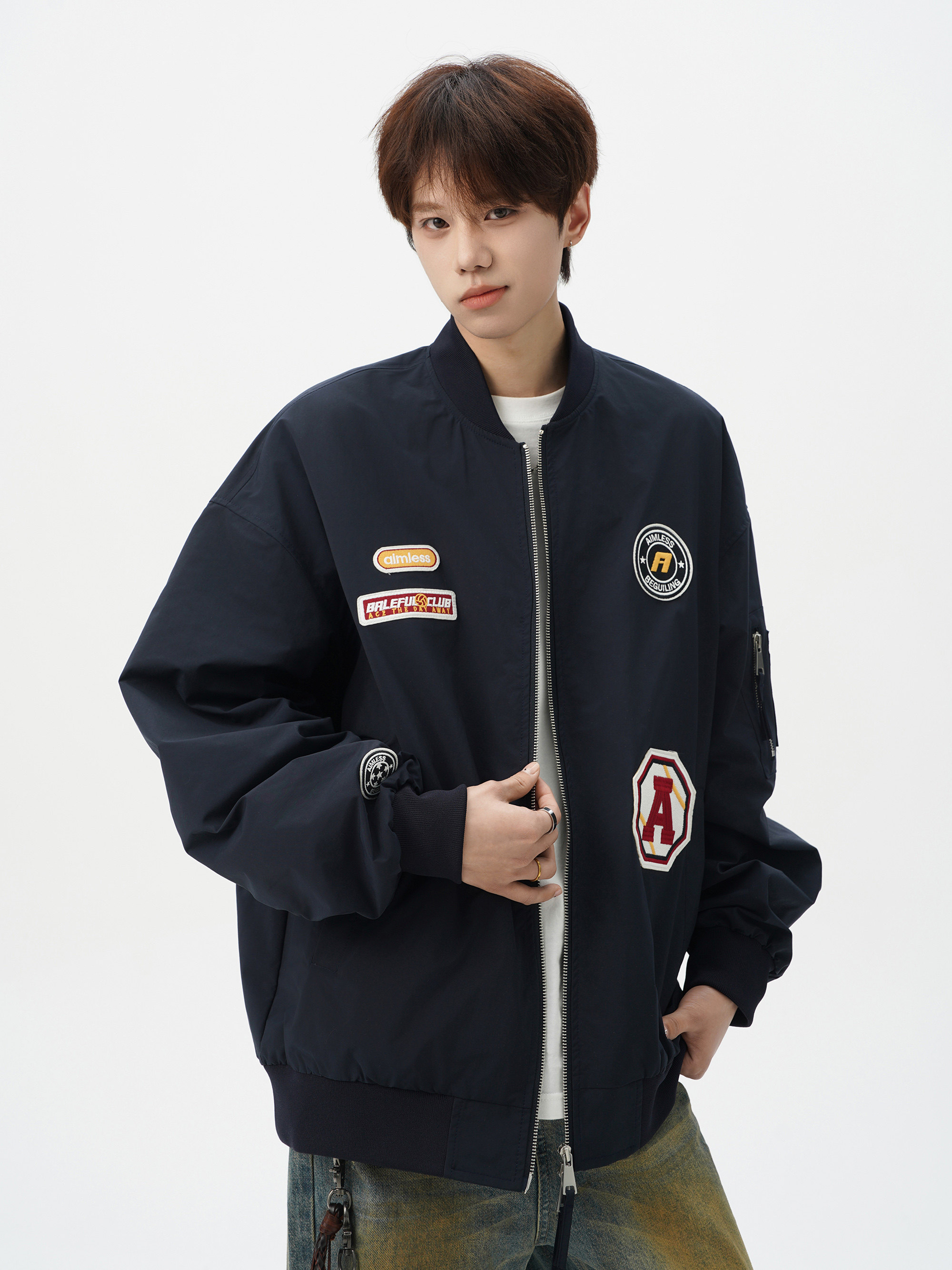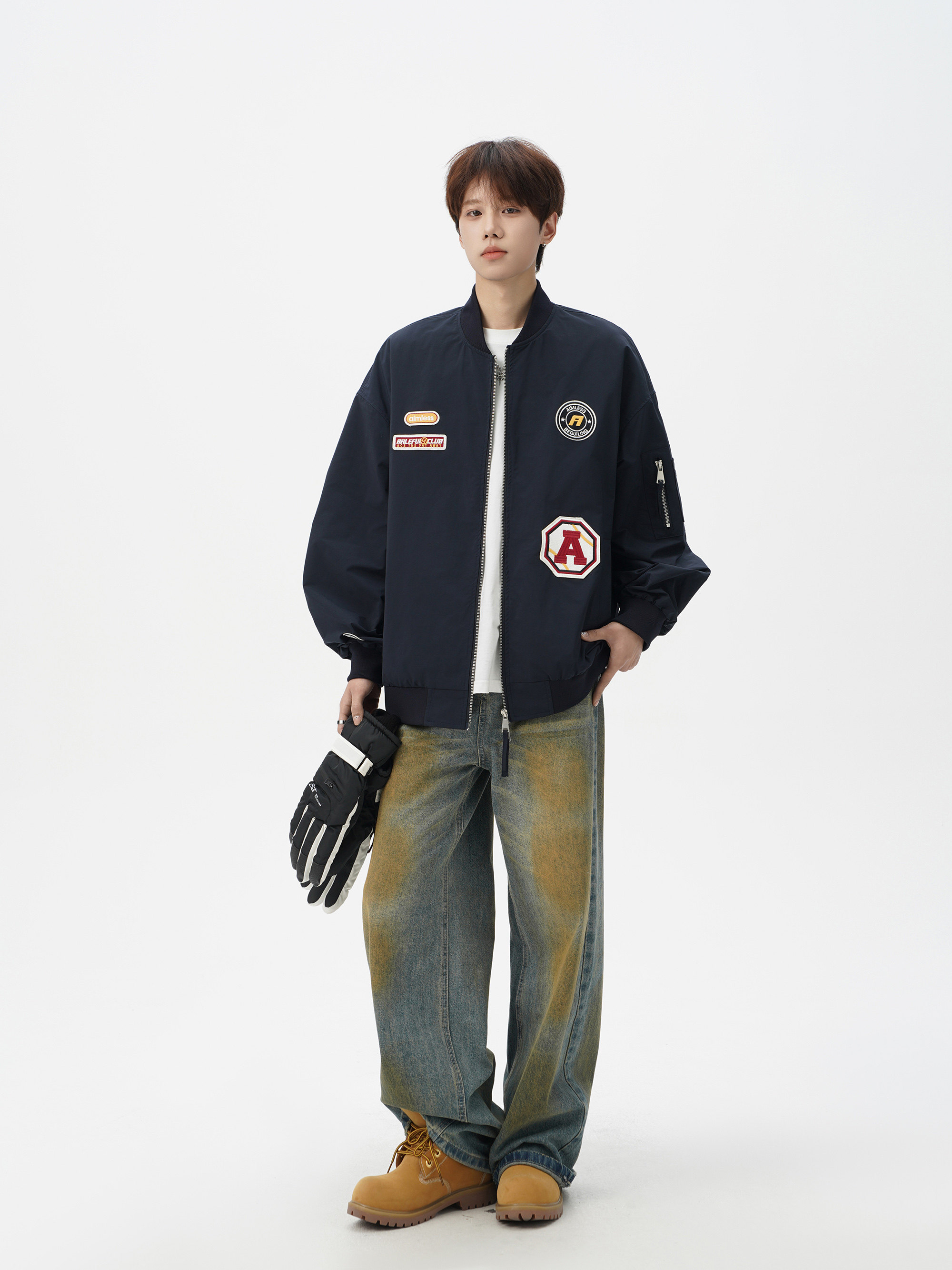 Chaqueta americana con cuello de béisbol para hombre, diseño de insignia retro de invierno, ropa de motocicleta, ropa de trabajo holgada de calle, chaqueta de moda