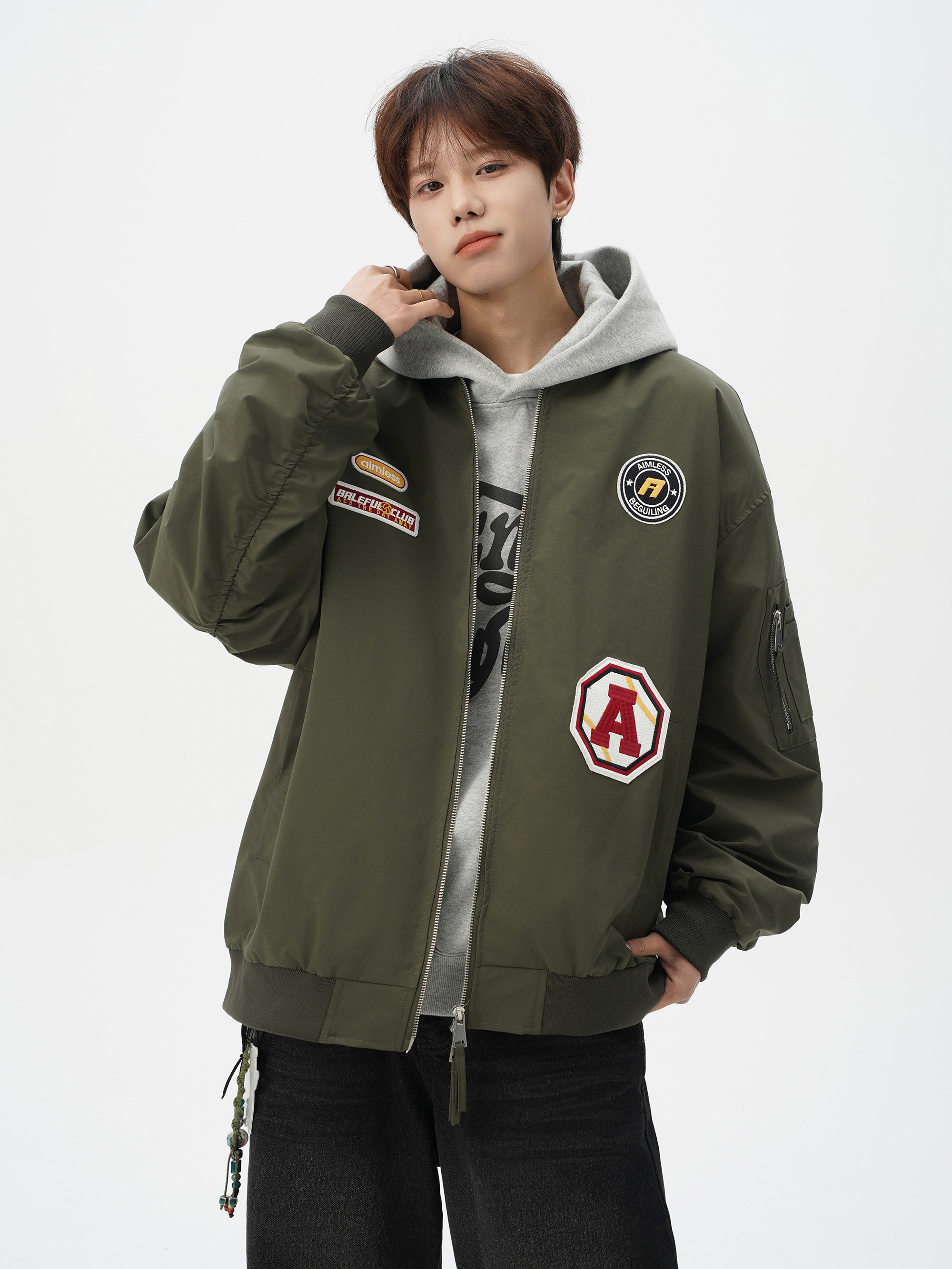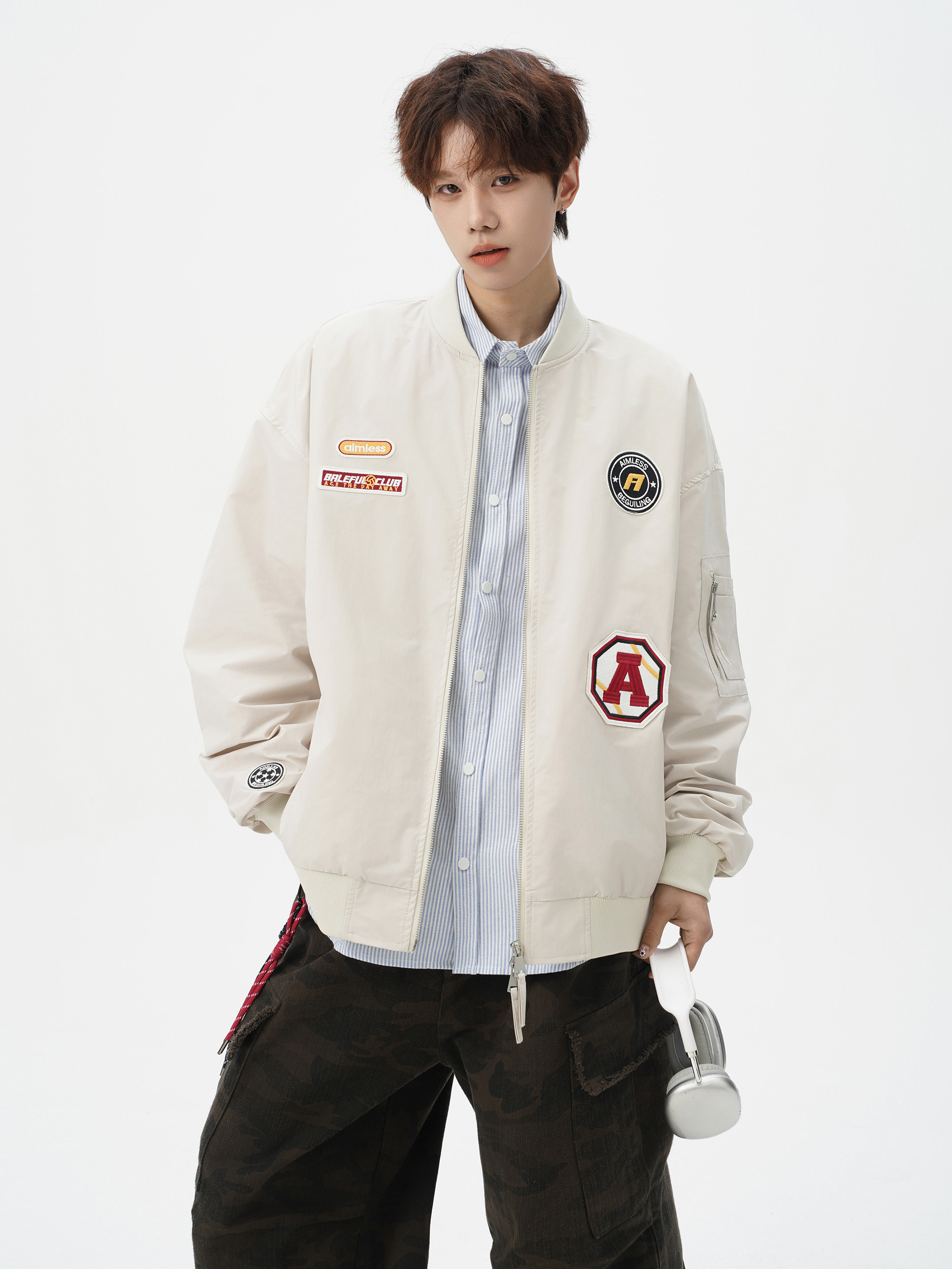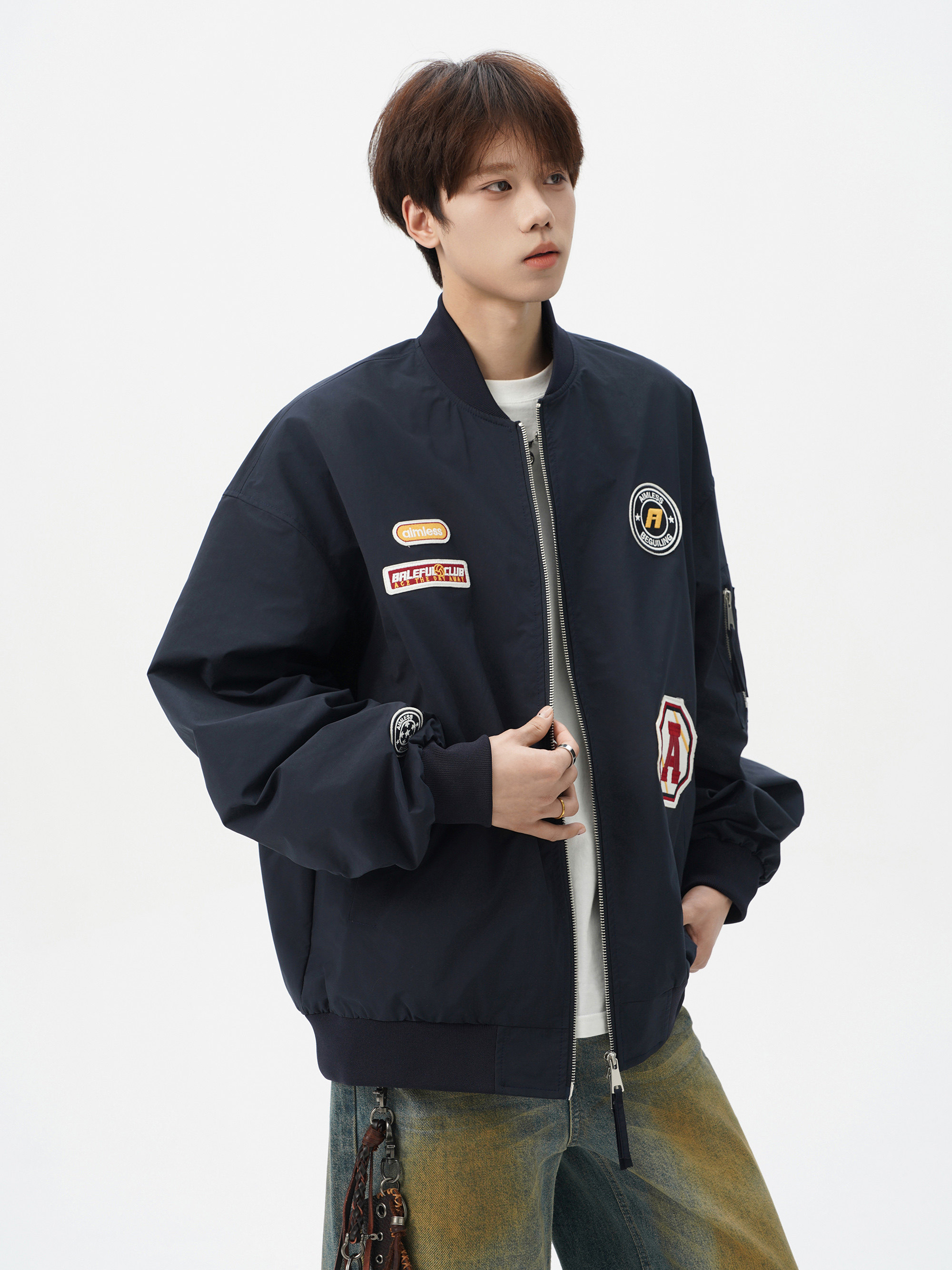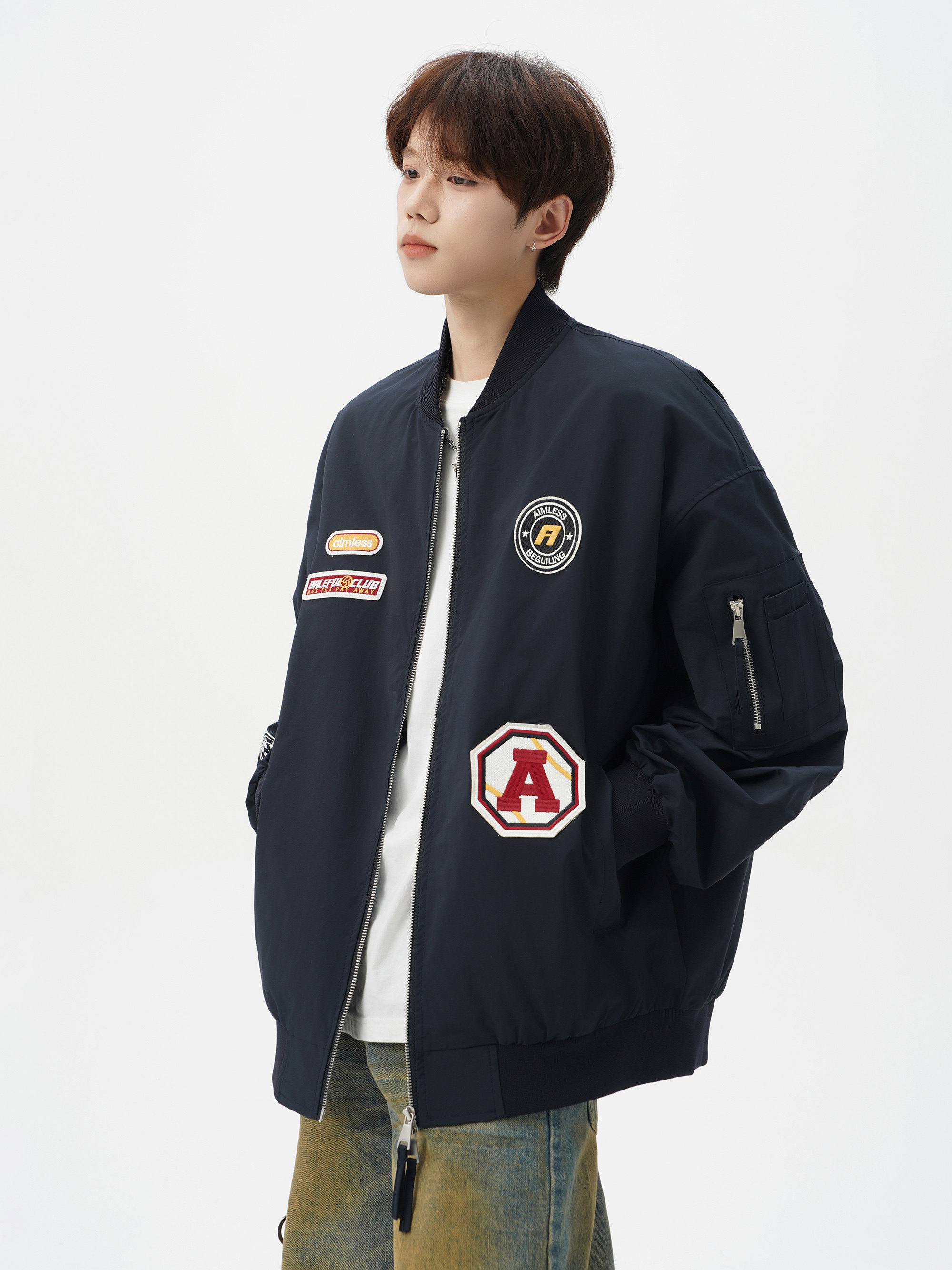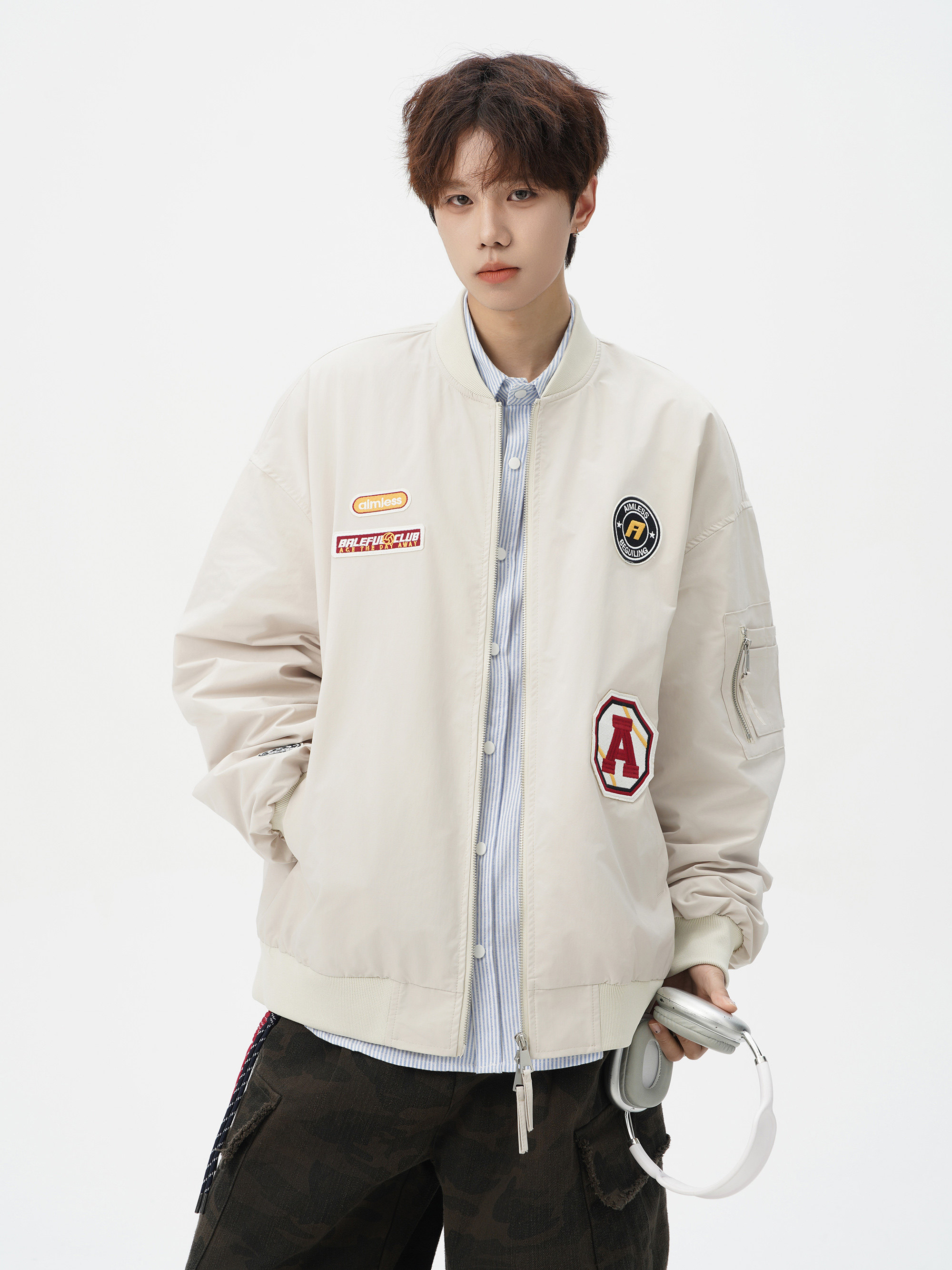Chaqueta americana con cuello de béisbol para hombre, diseño de insignia retro de invierno, ropa de motocicleta, ropa de trabajo holgada de calle, chaqueta de moda