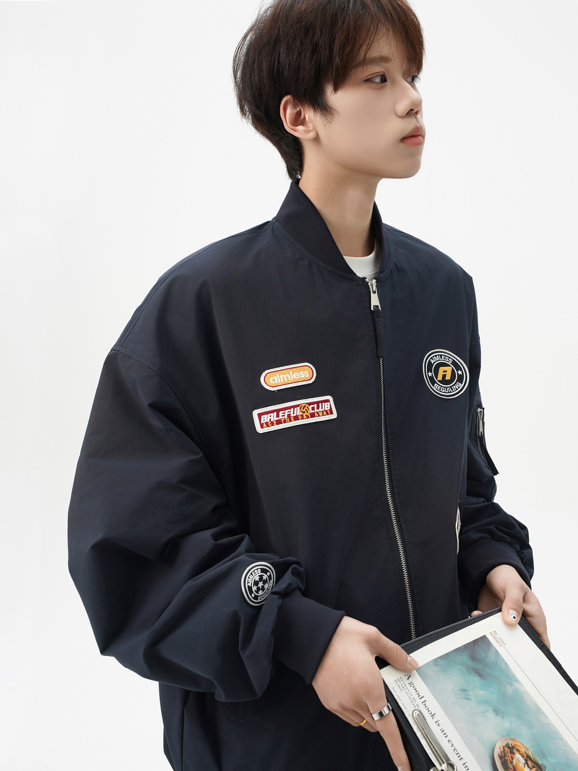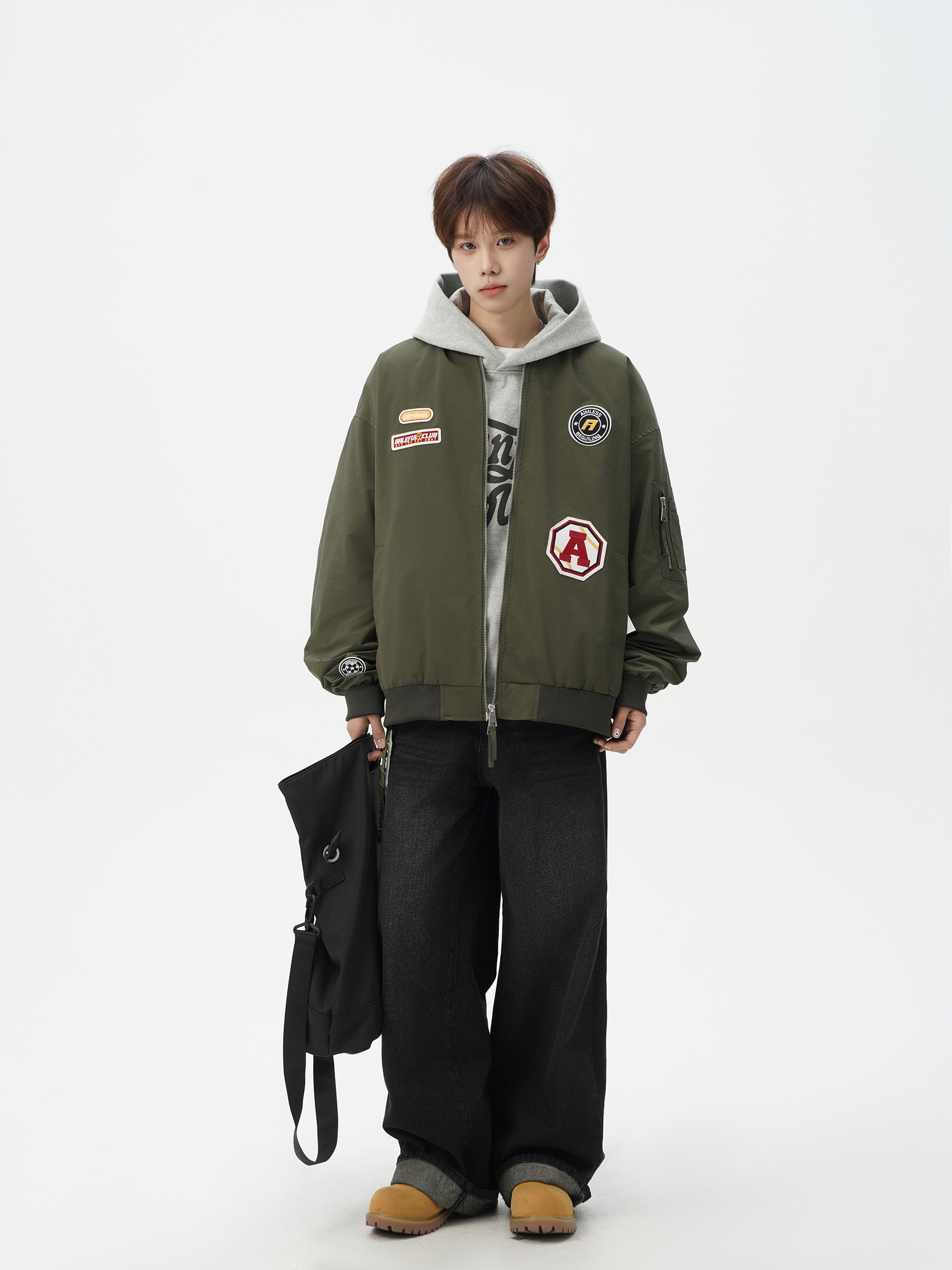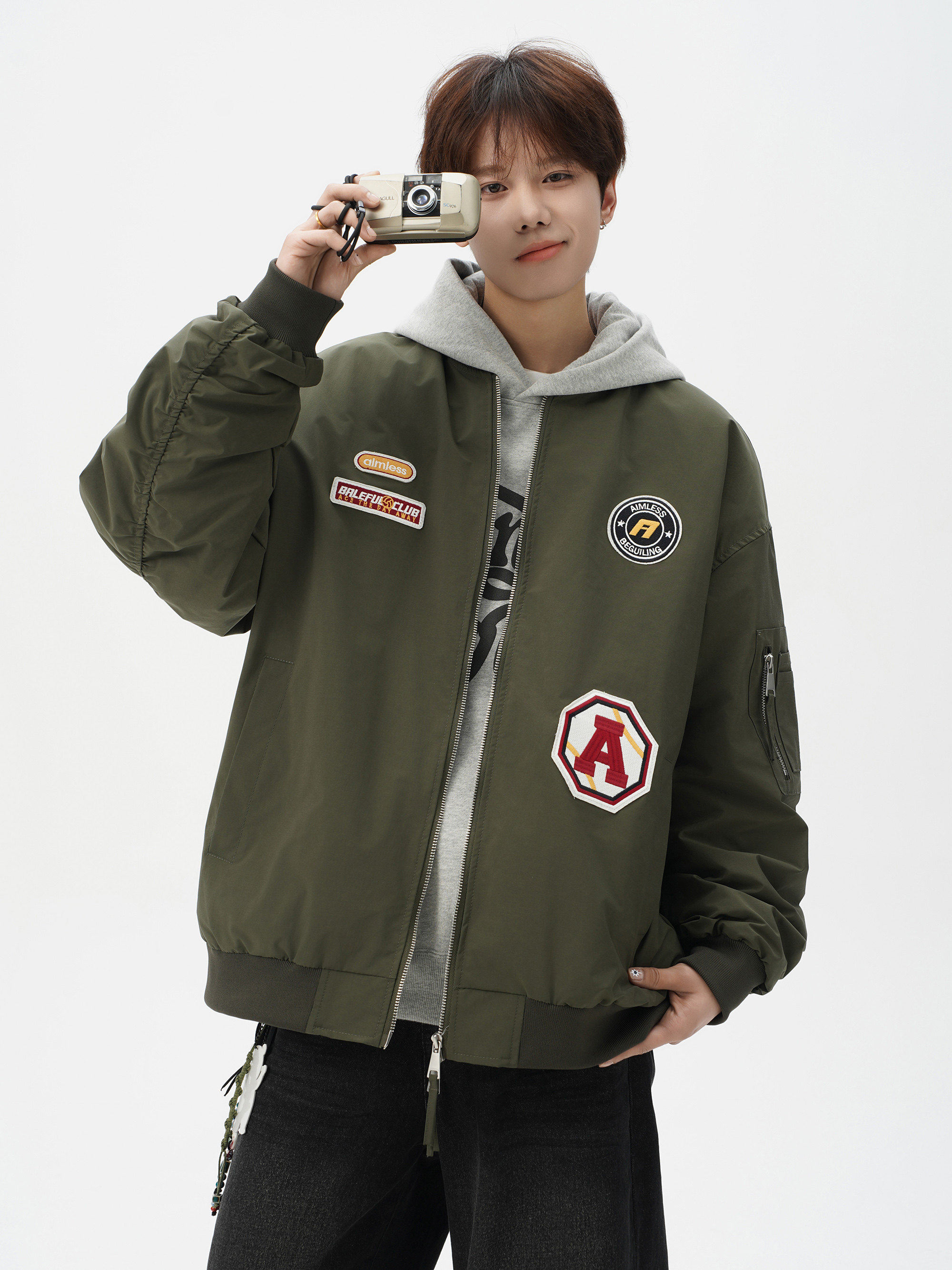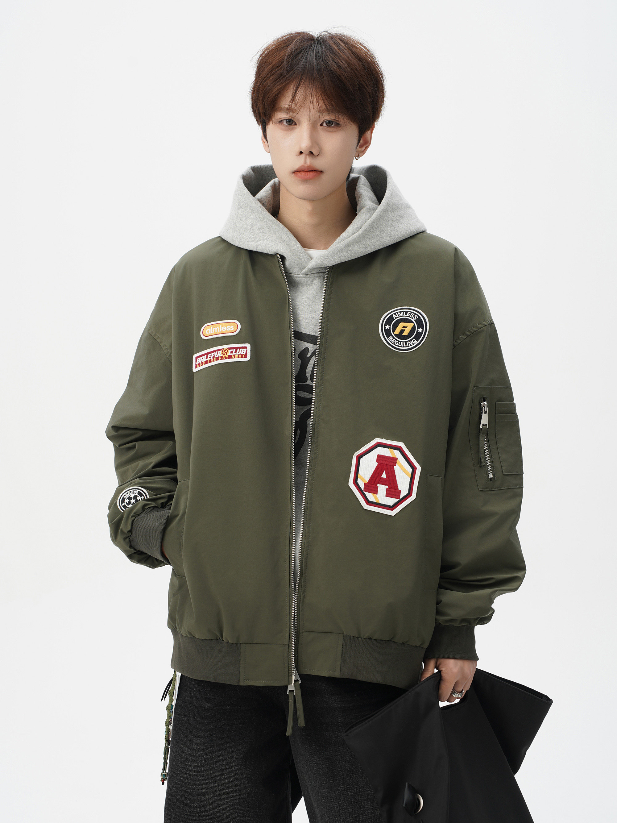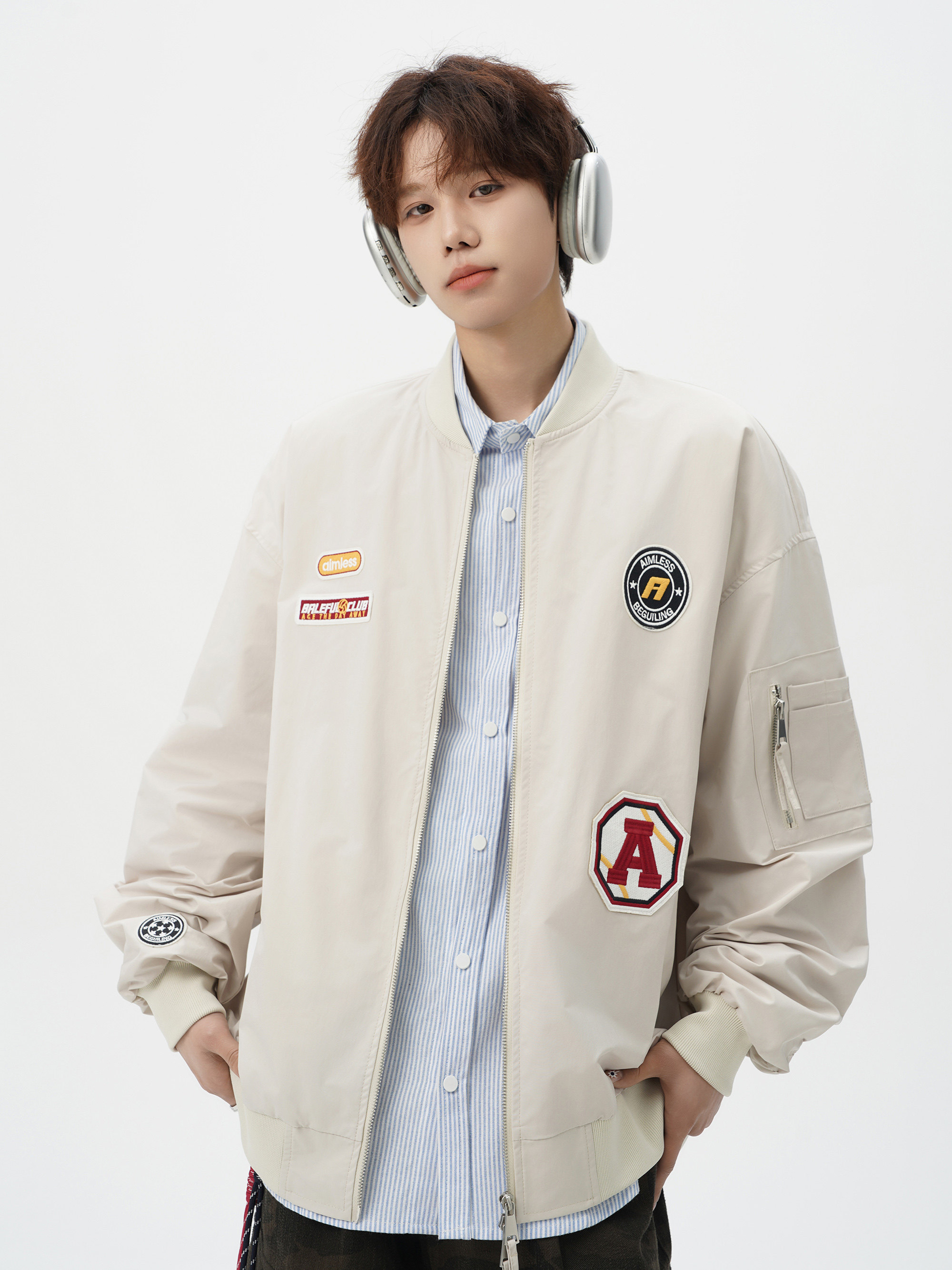 Chaqueta americana con cuello de béisbol para hombre, diseño de insignia retro de invierno, ropa de motocicleta, ropa de trabajo holgada de calle, chaqueta de moda
