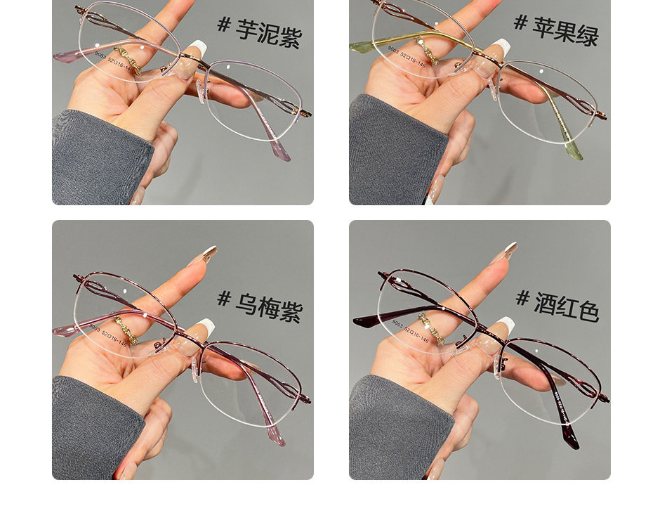 Color Classification Burgundy,Champagne Gold,Bright Black Frame,Taro Purple,Apple Green,Plum Purple