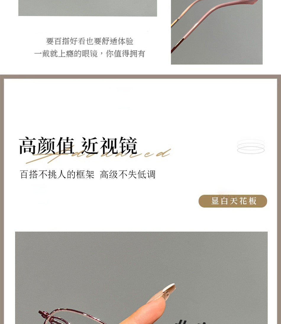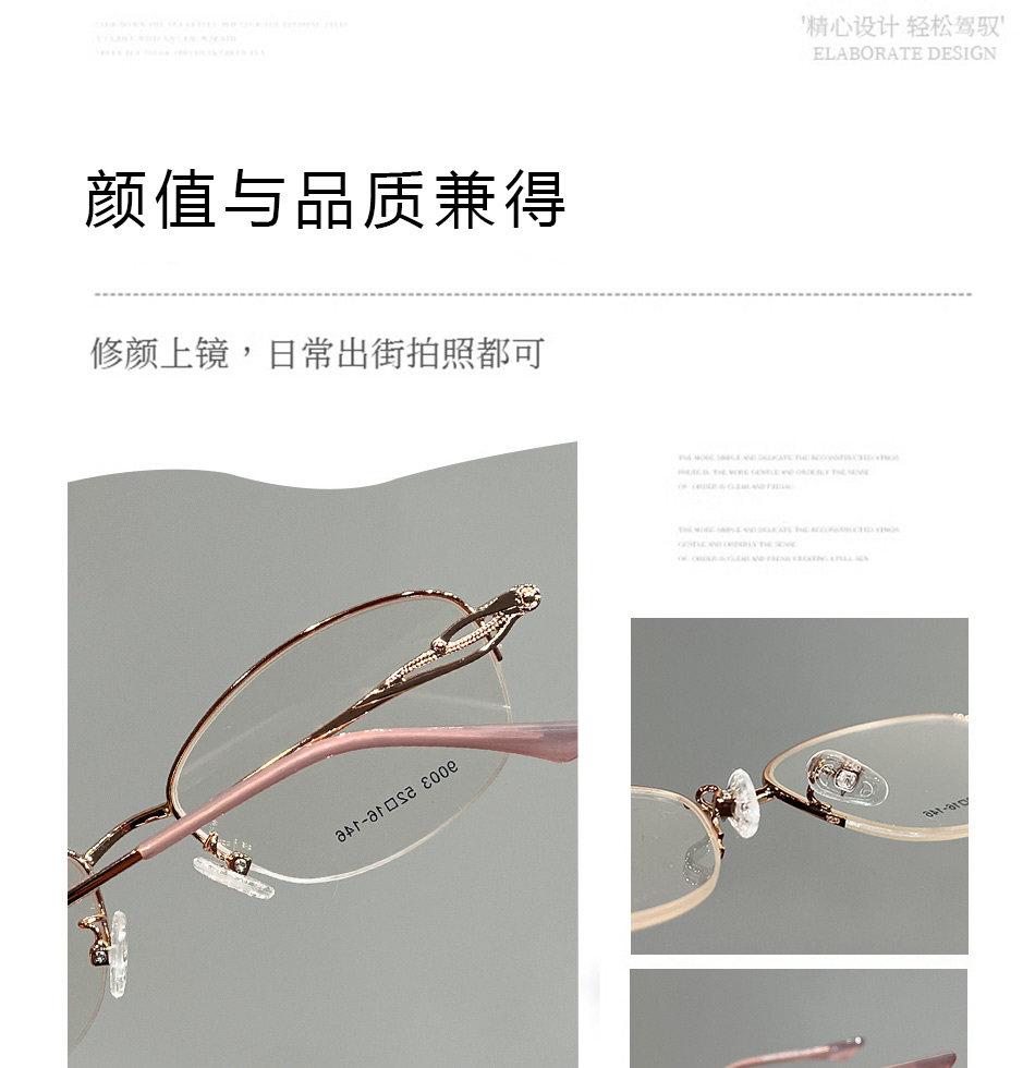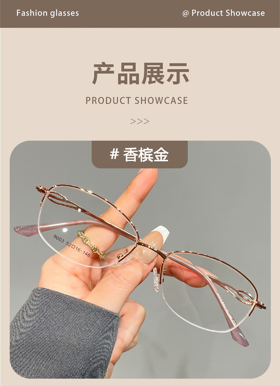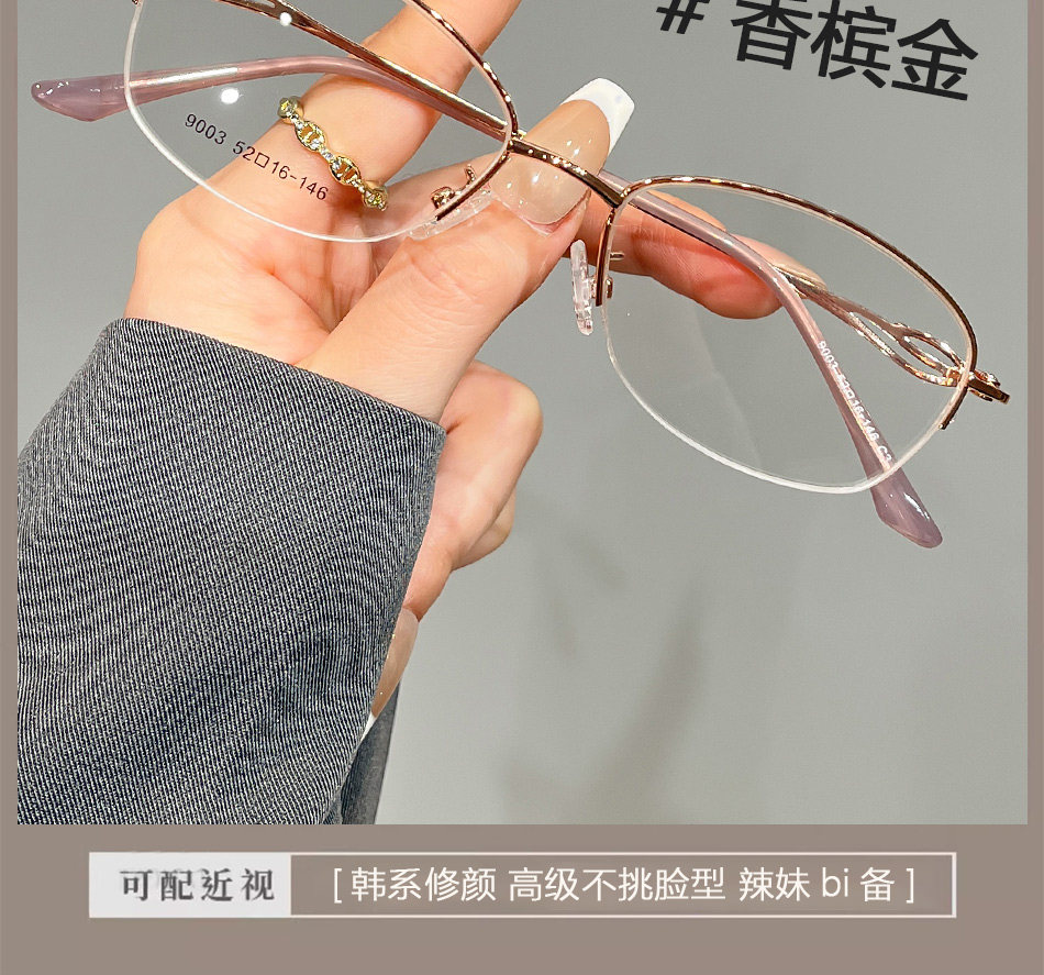 Elegant Half-Rim Myopia Glasses for Women, Can Be Fitted with Prescription Lenses, High-End Style, Natural Look, Small Face, Blue Light Blocking, Gold Wire Eyeglass Frame