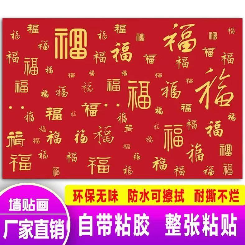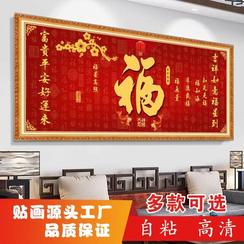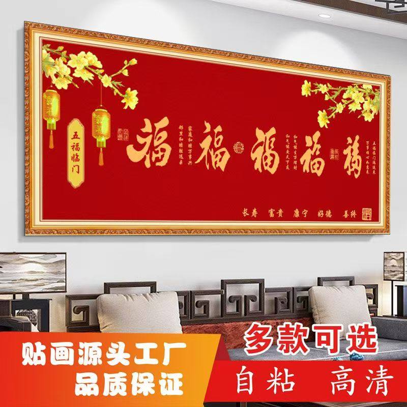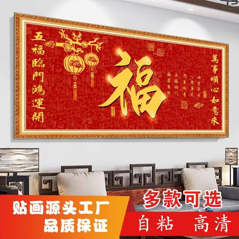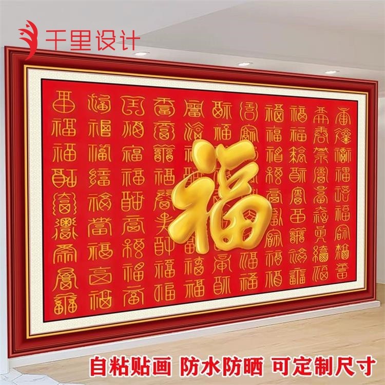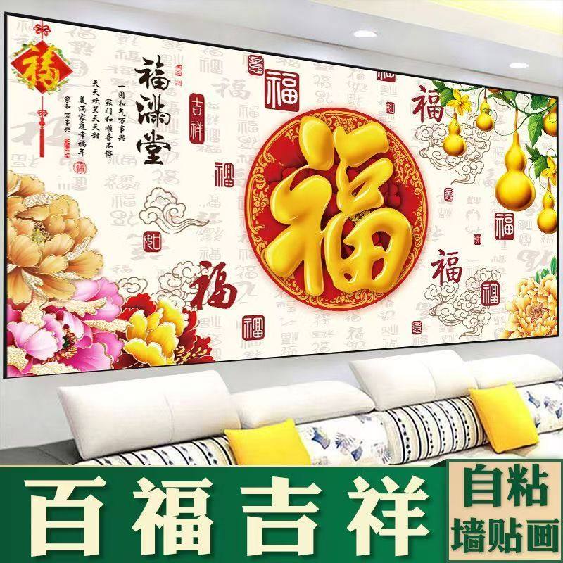 百福图自粘贴画福字画镇宅旺宅旺业办公室中堂装饰画财源滚滚年画
