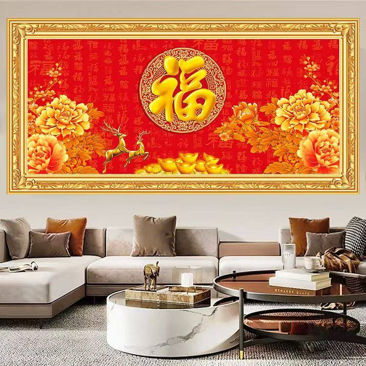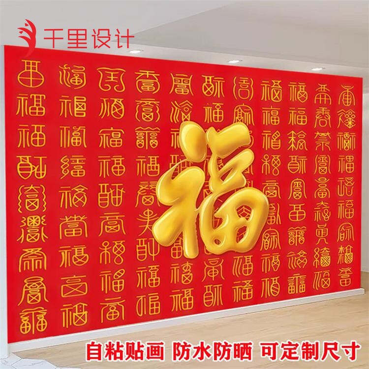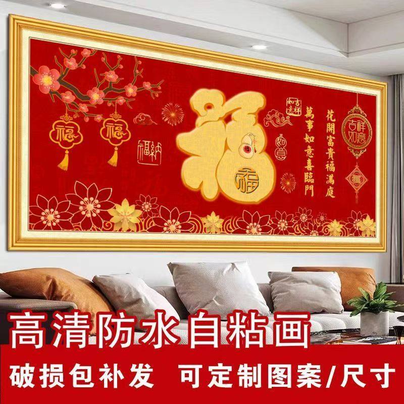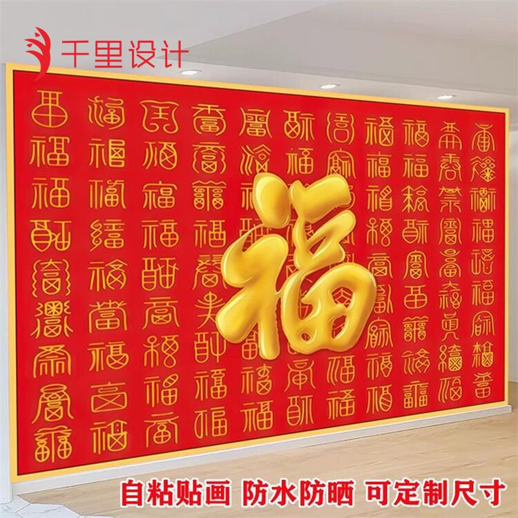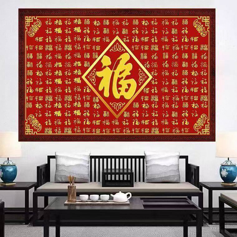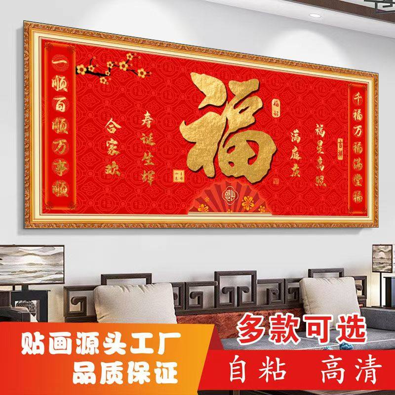 百福图自粘贴画福字画镇宅旺宅旺业办公室中堂装饰画财源滚滚年画