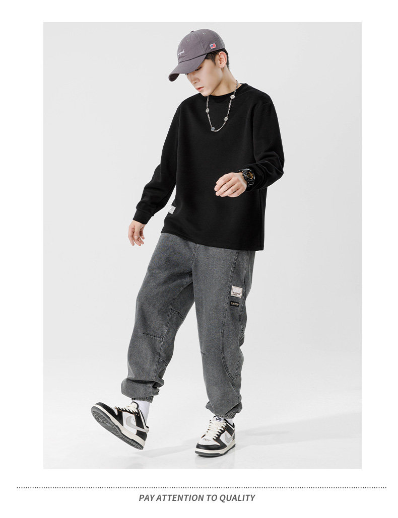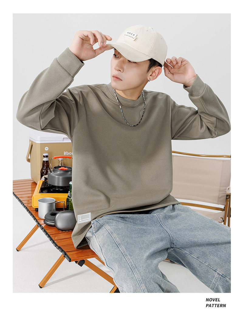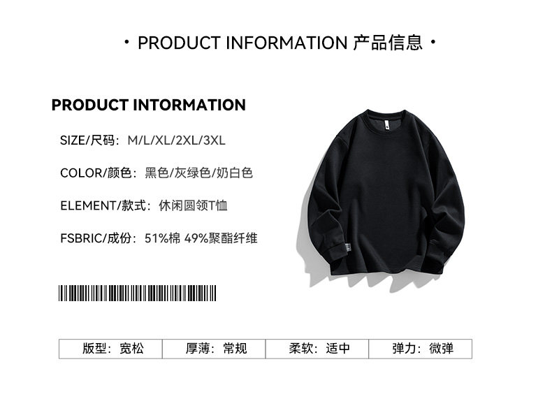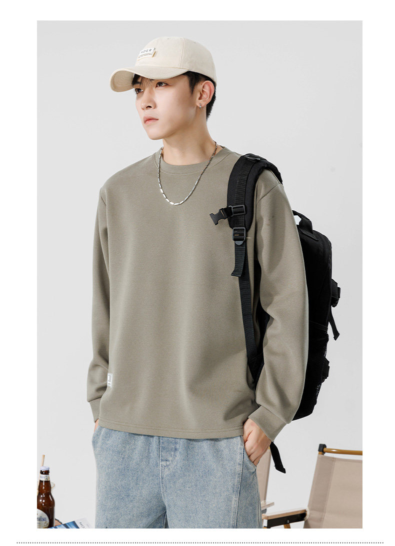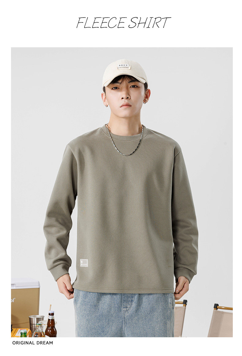 长袖t恤男圆领内搭2025春秋冬季新款重磅加绒打底衫休闲男装卫衣