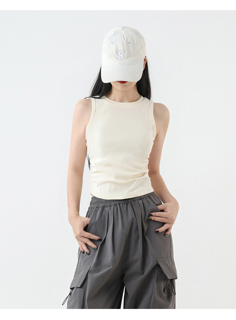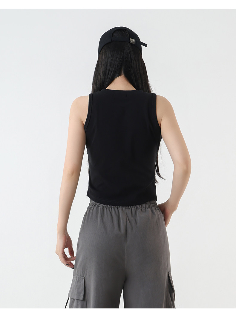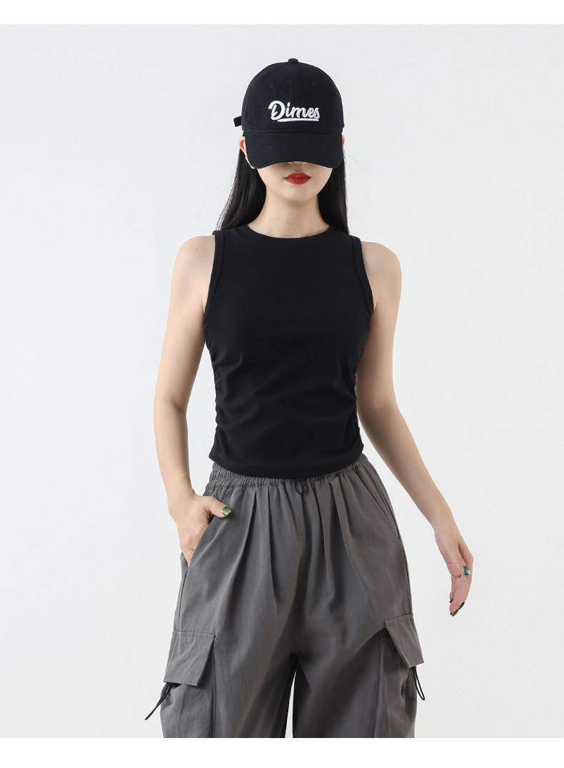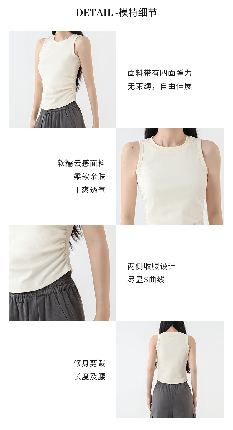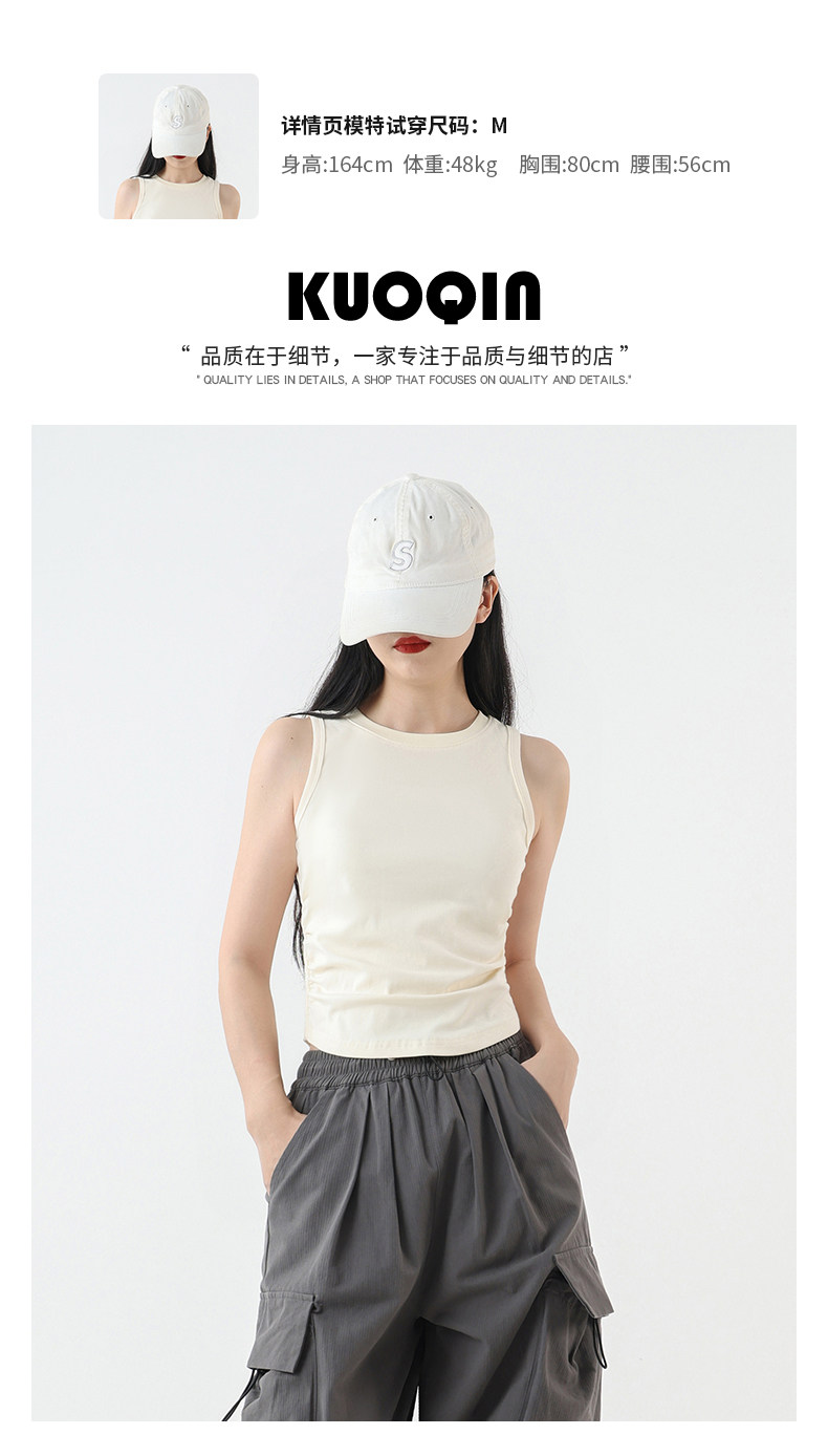 阔勤2025夏季新款无袖爵士舞上衣女cleanfit 侧面收腰短款背心