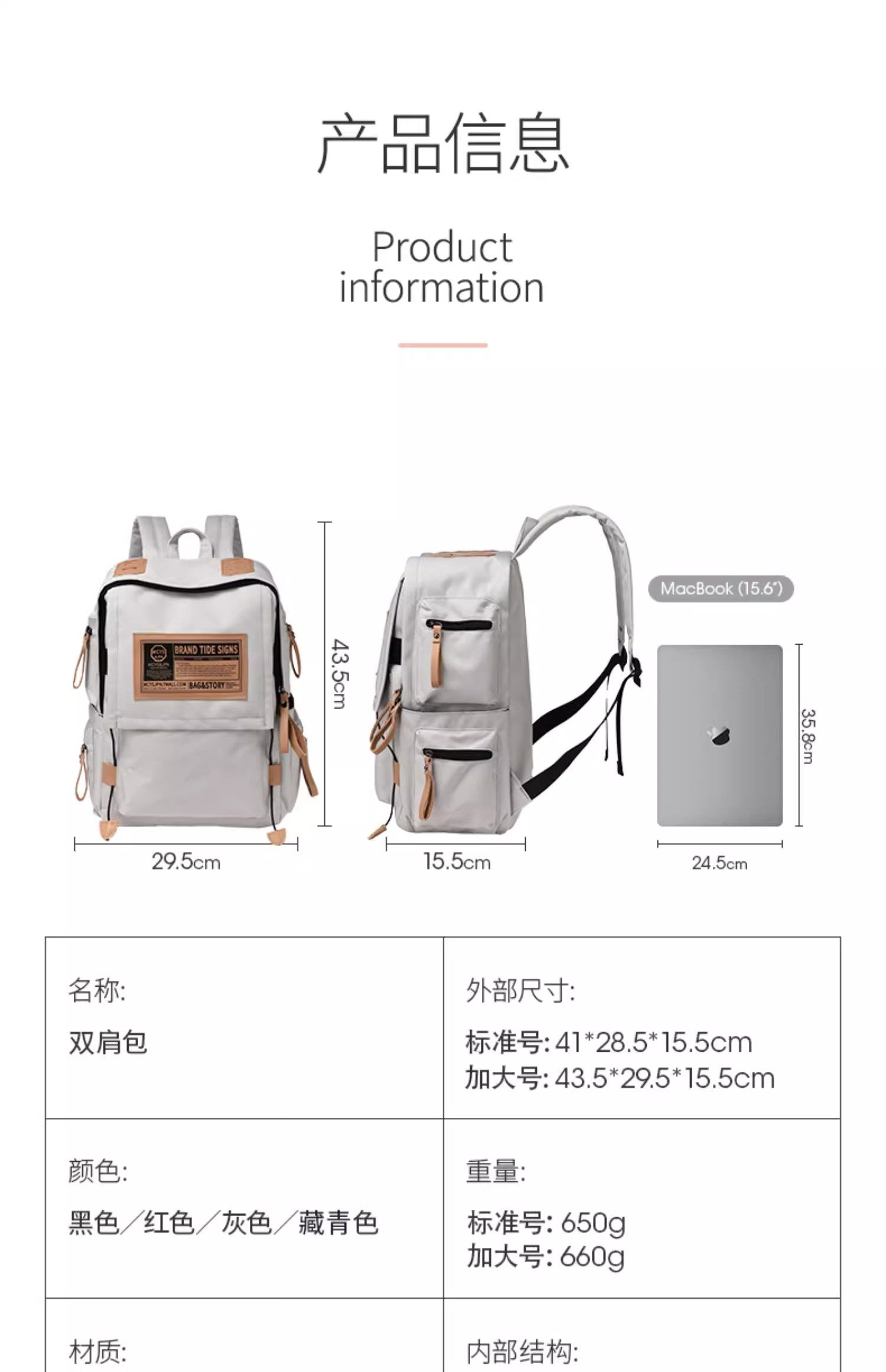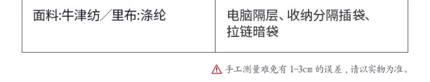内部结构 网袋,手机袋,暗格,电脑插袋
