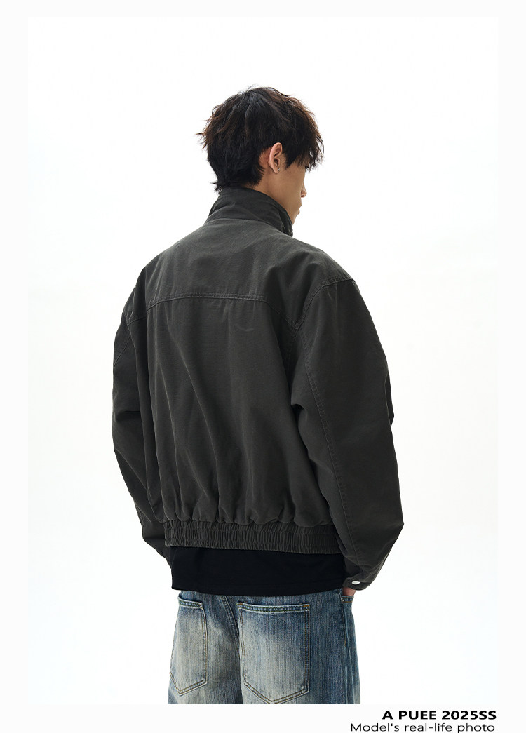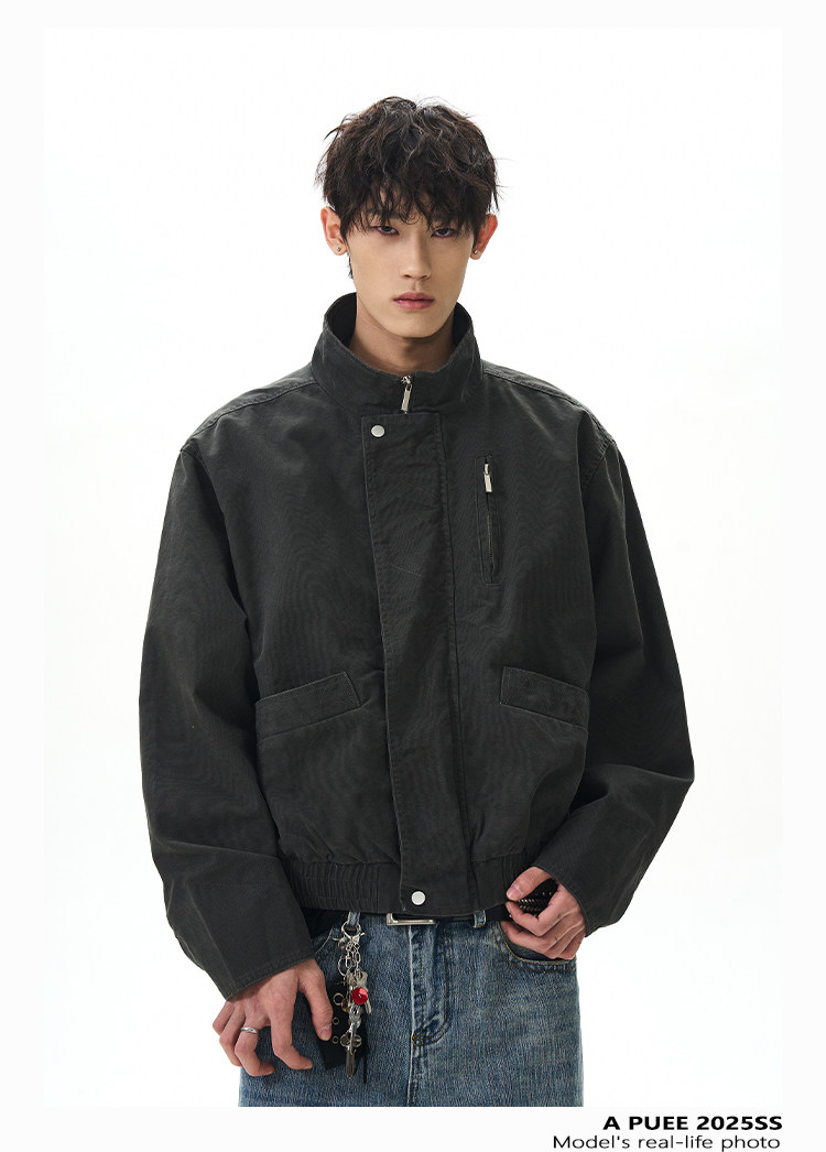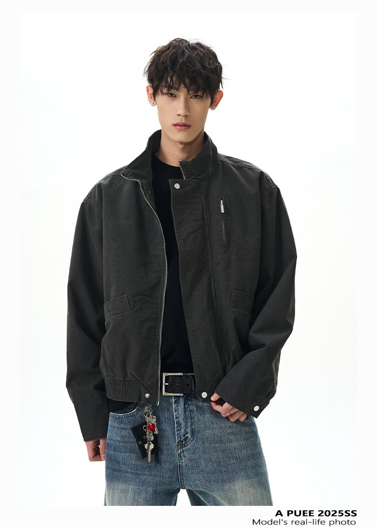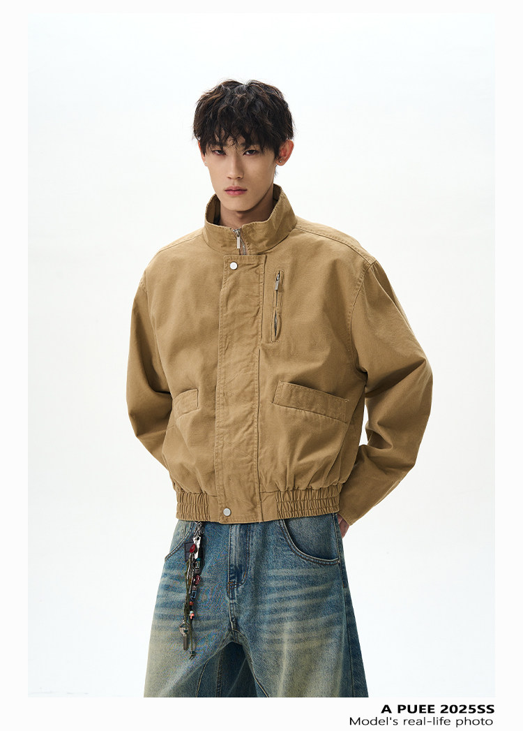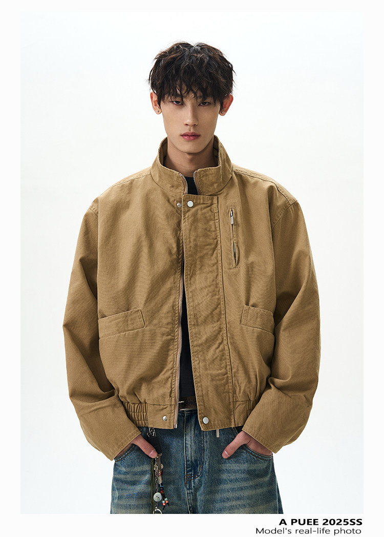 A PUEE美式复古bomber立领飞行员夹克男女boxy短款巴恩风工装外套