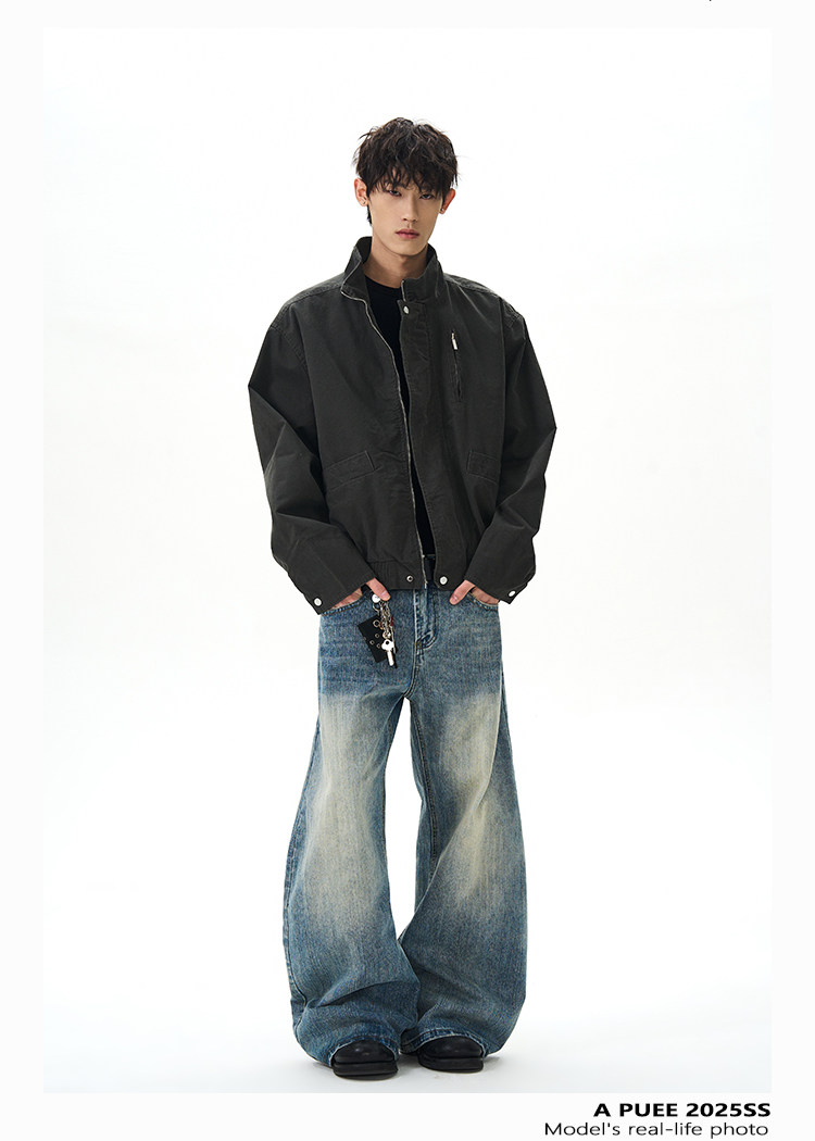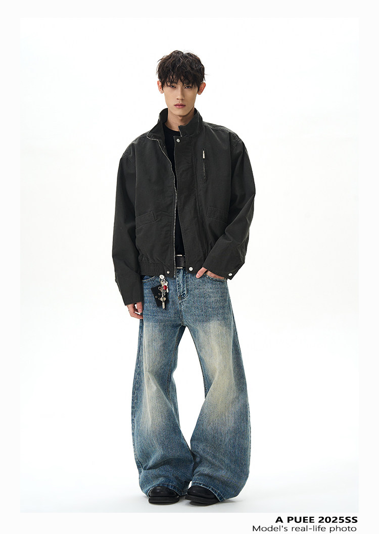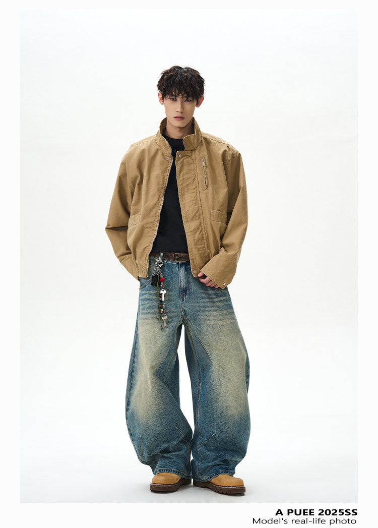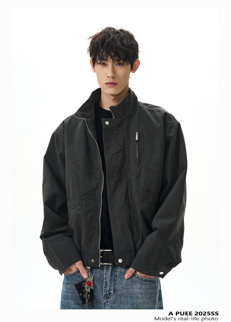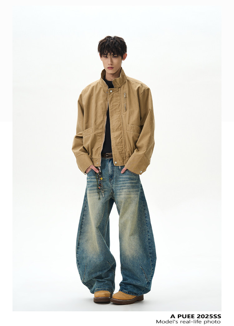 A PUEE美式复古bomber立领飞行员夹克男女boxy短款巴恩风工装外套