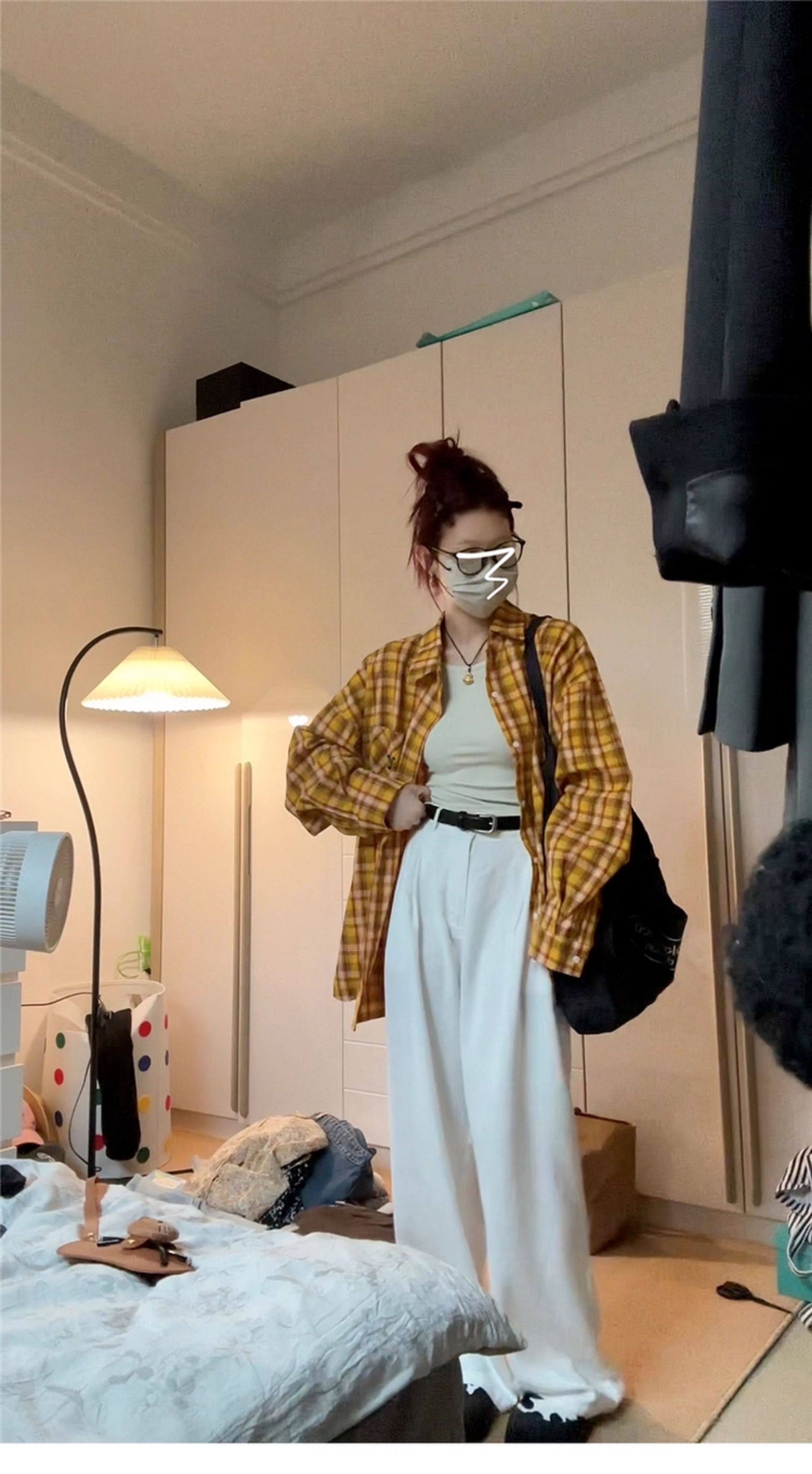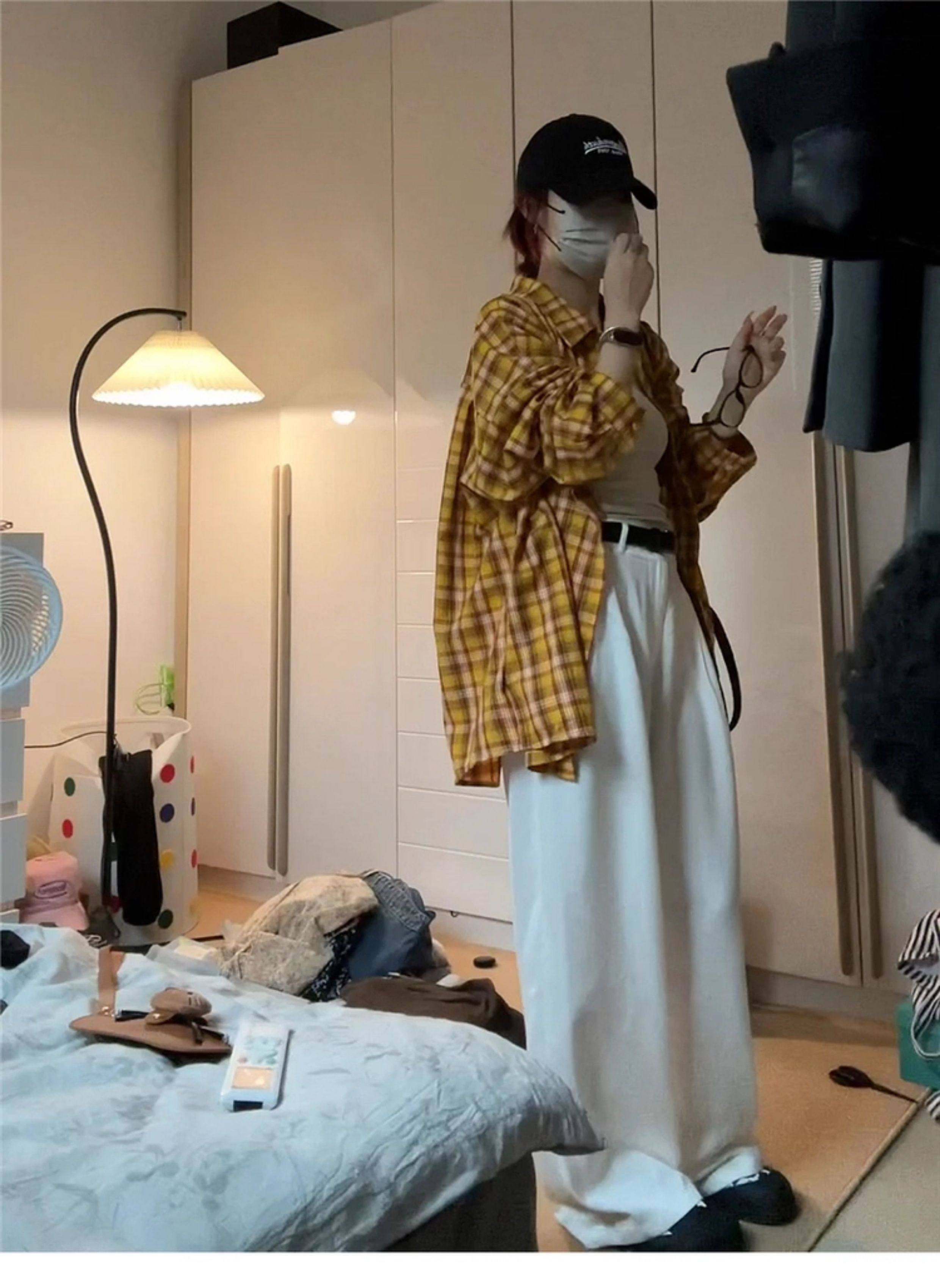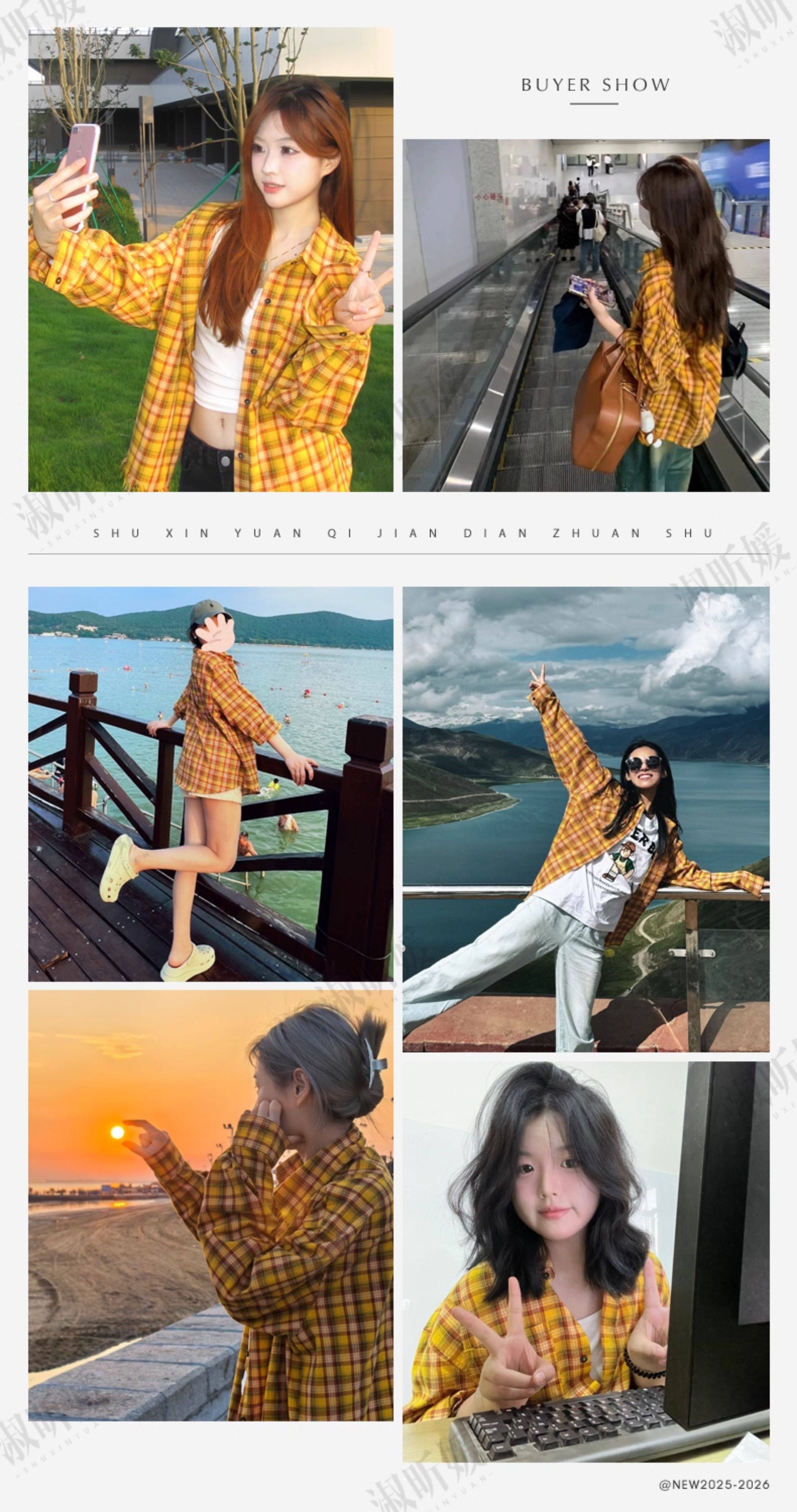 美式复古黄色条纹格子衬衫外套女2025新款夏季中长款上衣衬衣早秋