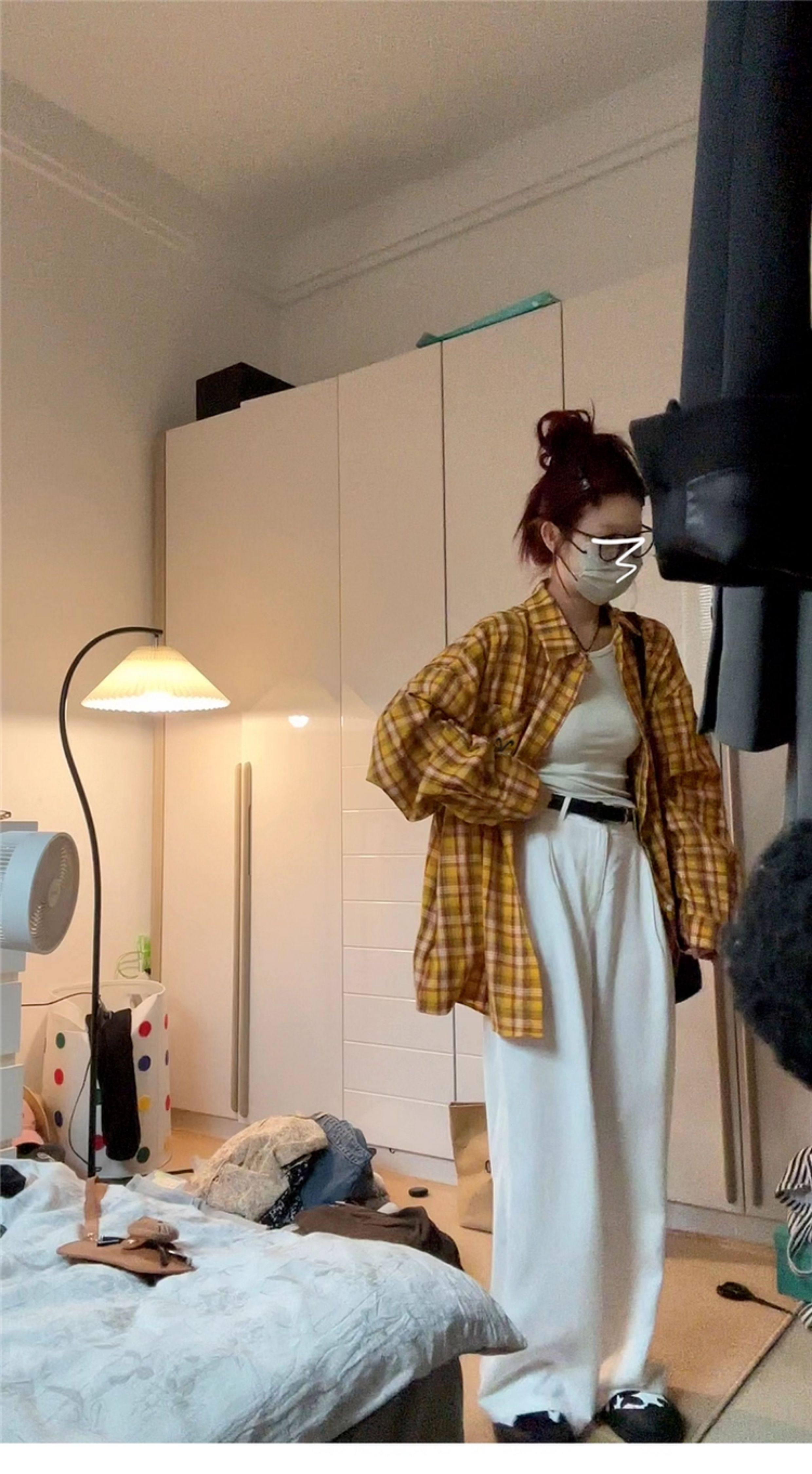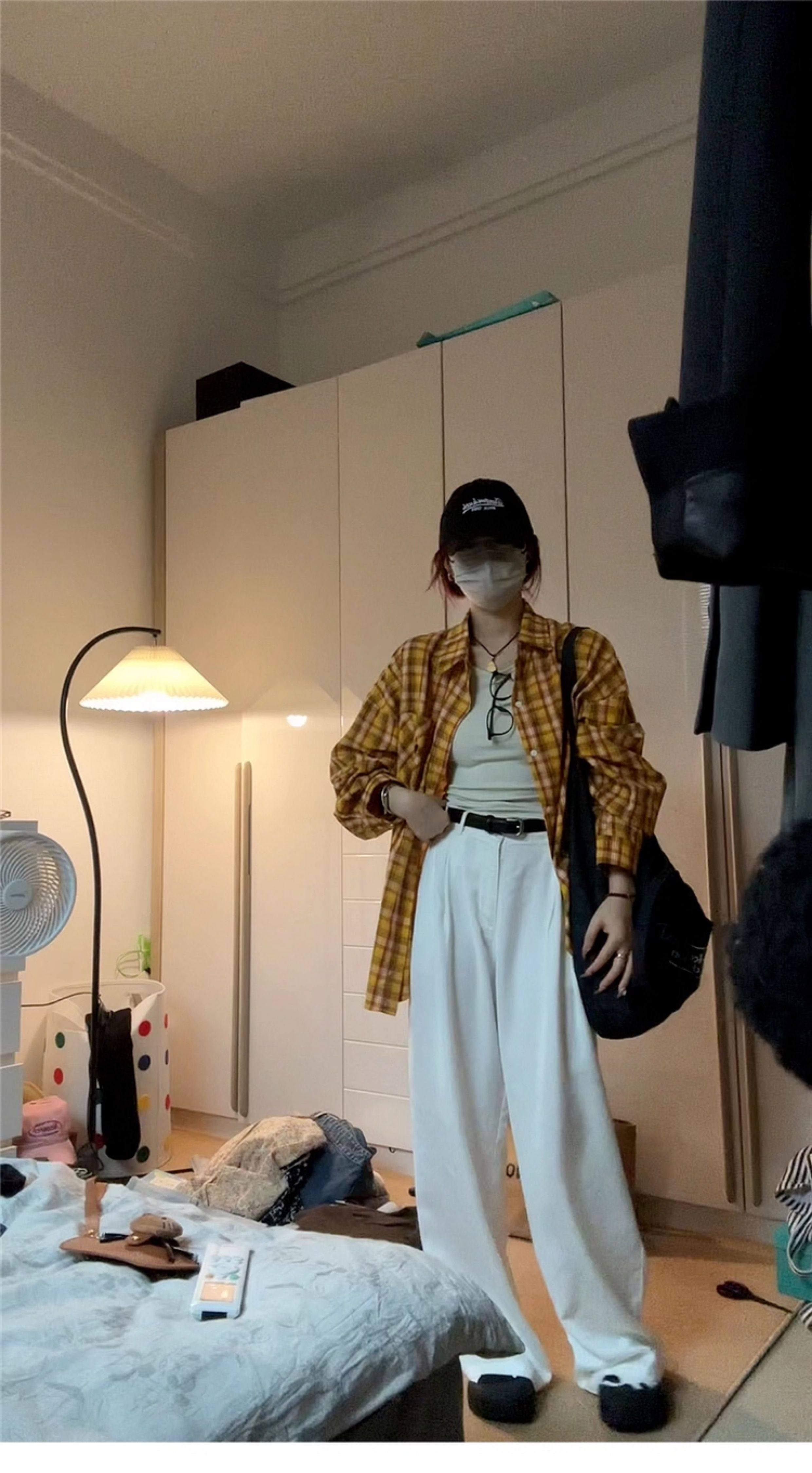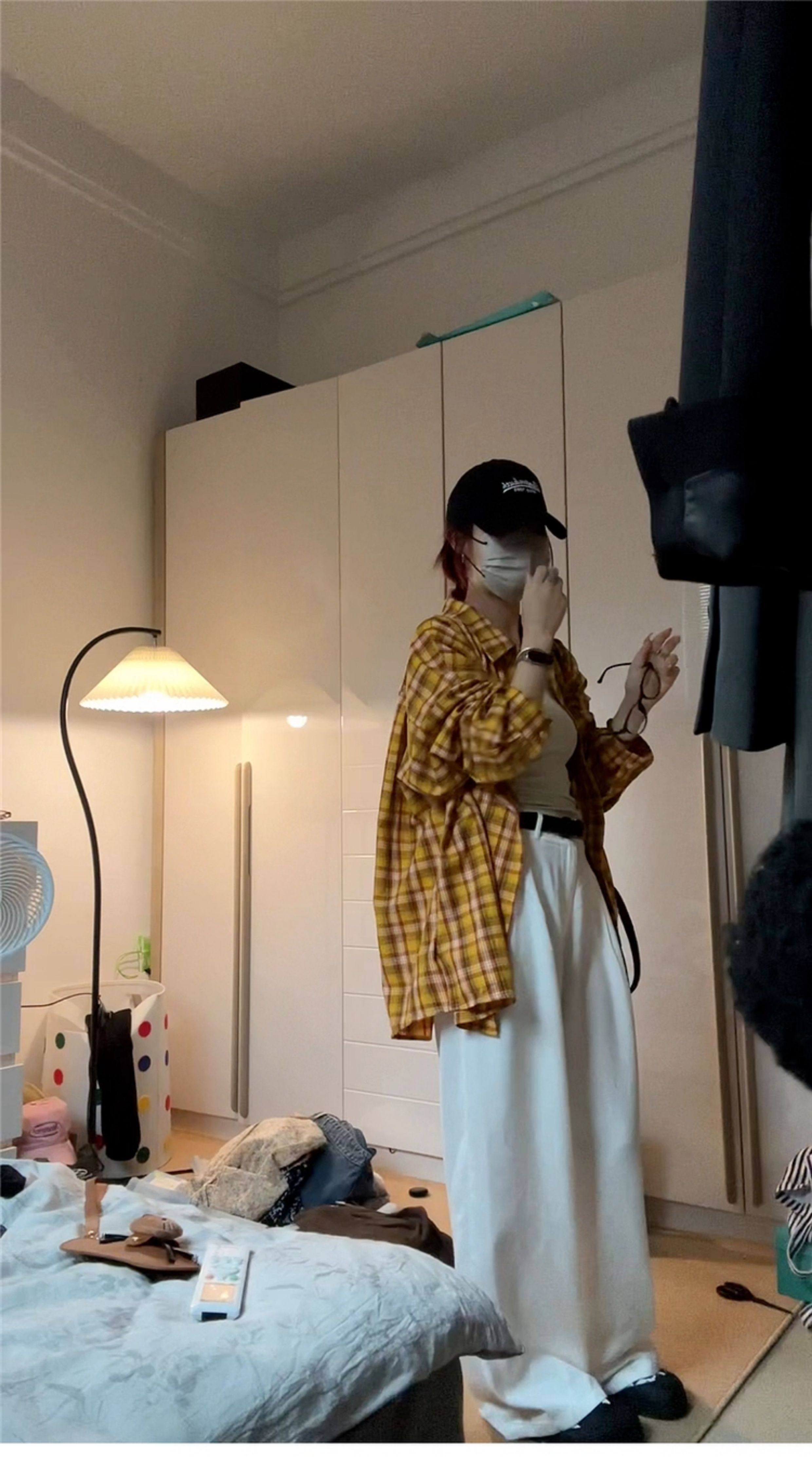 美式复古黄色条纹格子衬衫外套女2025新款夏季中长款上衣衬衣早秋