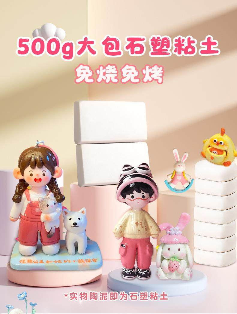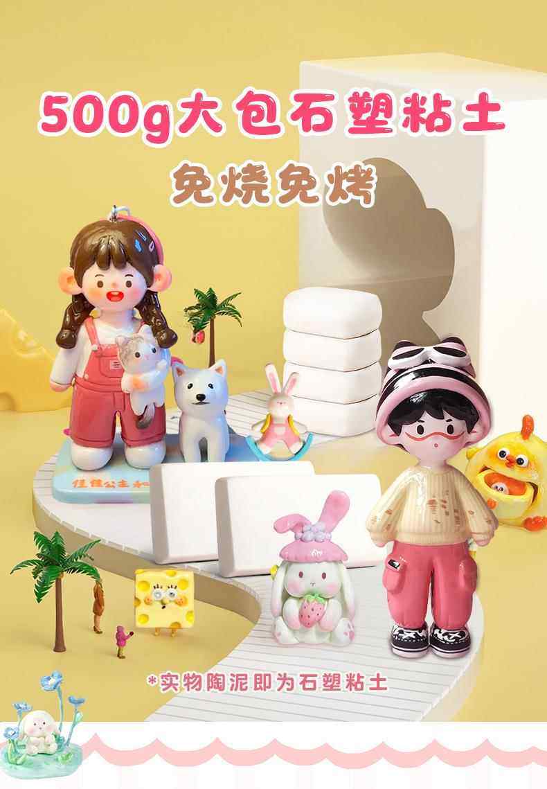 Stone Plastic Clay DIY Material Kit Clay Set Tools No-Bake No-Burning Universal Colored Clay Handmade Plasticine Tools Moldable Light Clay Soft Pottery Clay Mold Children's Glossy Oil No-Bake White