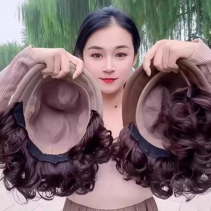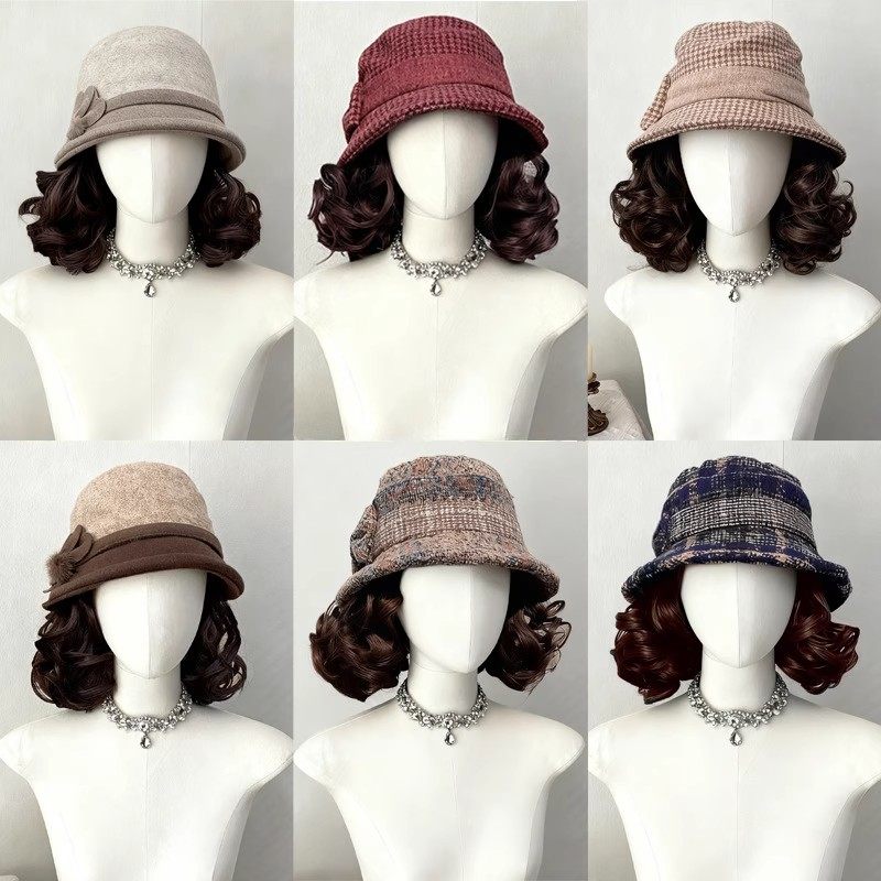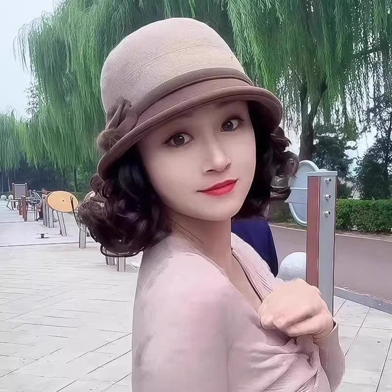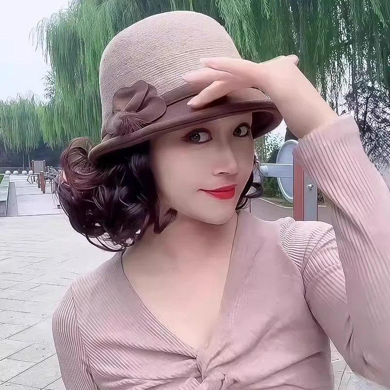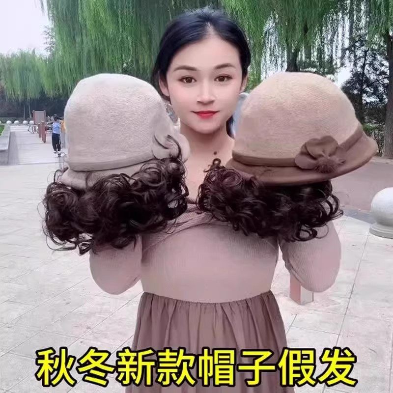 爆款帽子假发合集秋季新款中老年妈妈帽短卷发一体渔夫帽女全头套