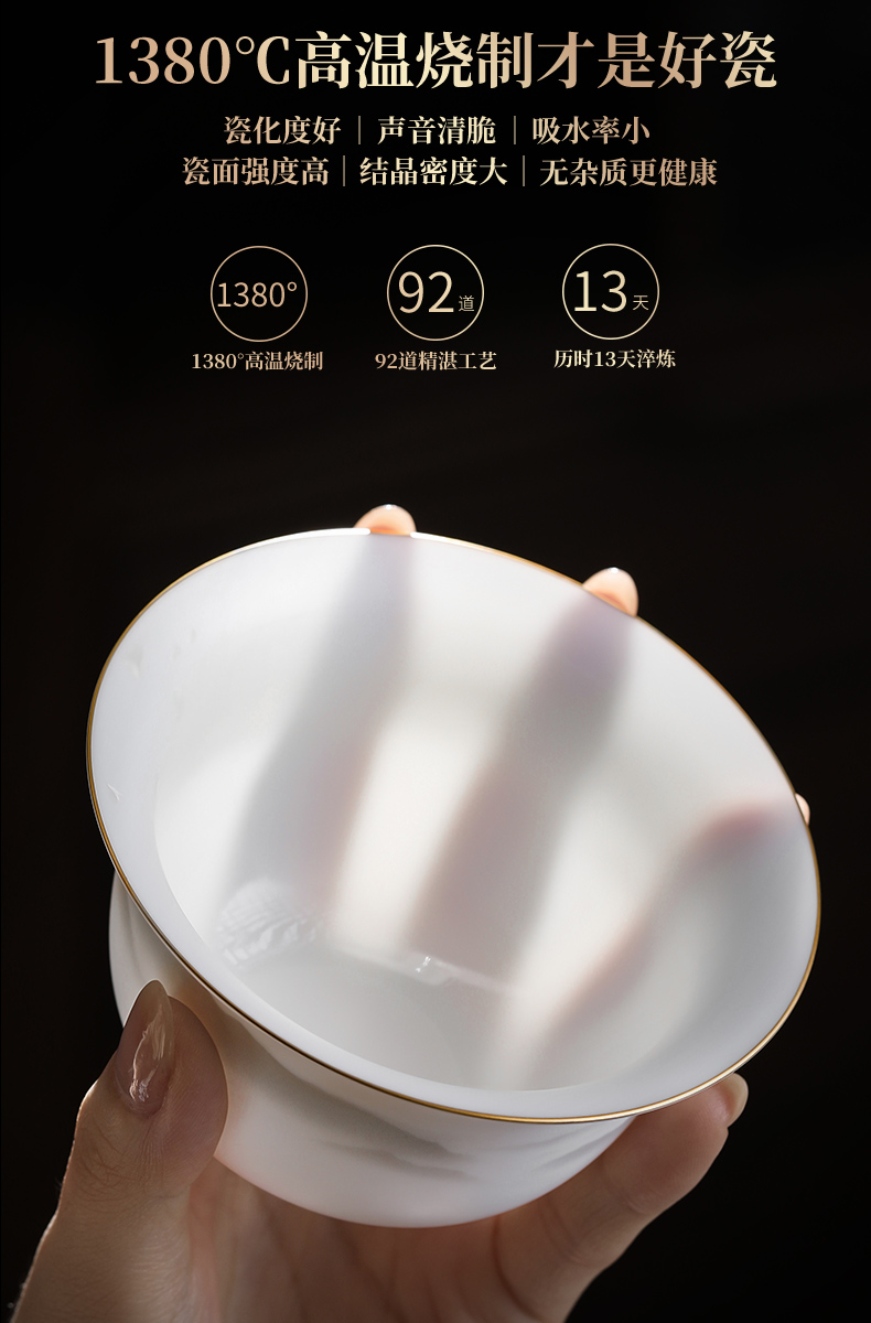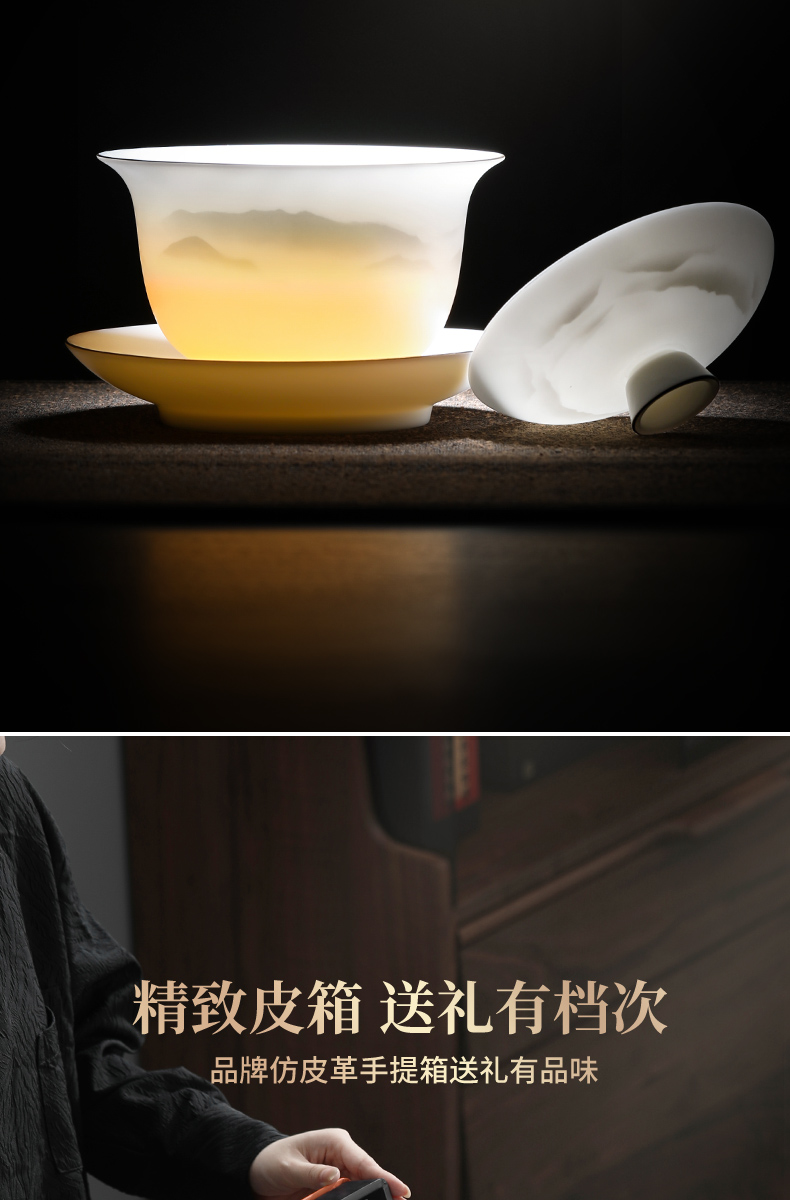 大师级羊脂玉白瓷茶具套装家用轻奢高档2025新款盖碗功夫茶礼盒装
