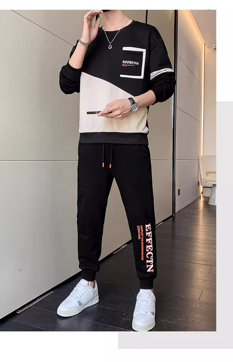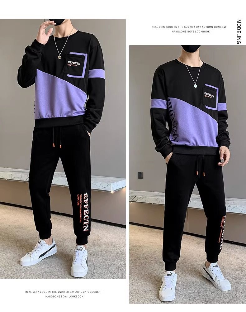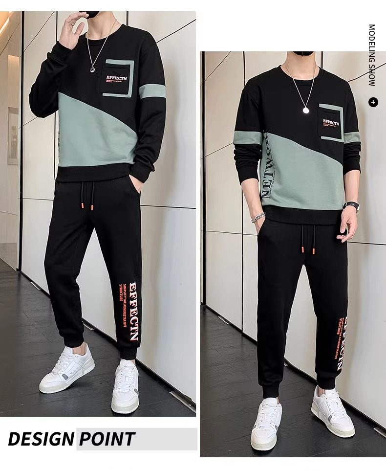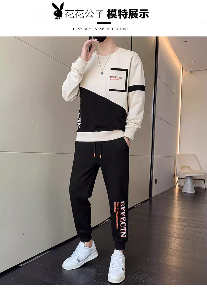 花花公子休闲运动套装男士圆领卫衣服秋季新款潮搭配卫裤男装一套