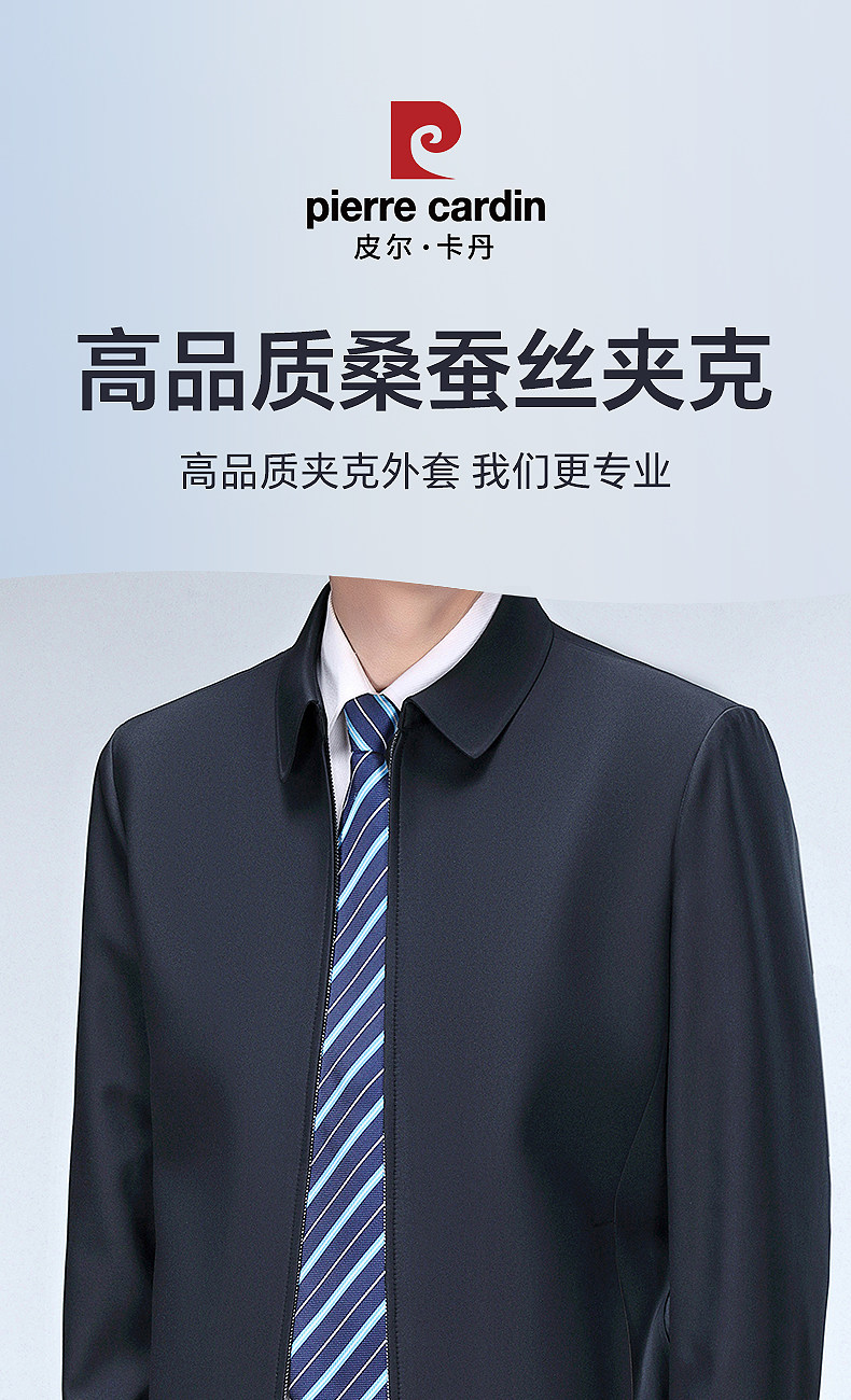皮尔卡丹行政夹克男装新款宽松大码翻领立领中老年人爸爸春秋外套