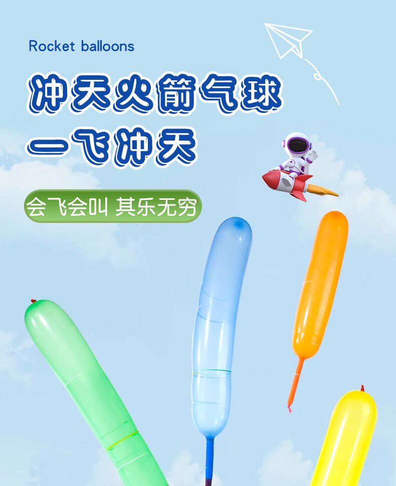 Rocket Balloons That Can Fly and Scream, Internet-Famous Flying Fart Balloons That Shoot into the Sky, Non-Toxic, Odorless, Long Strip Children's Toys
