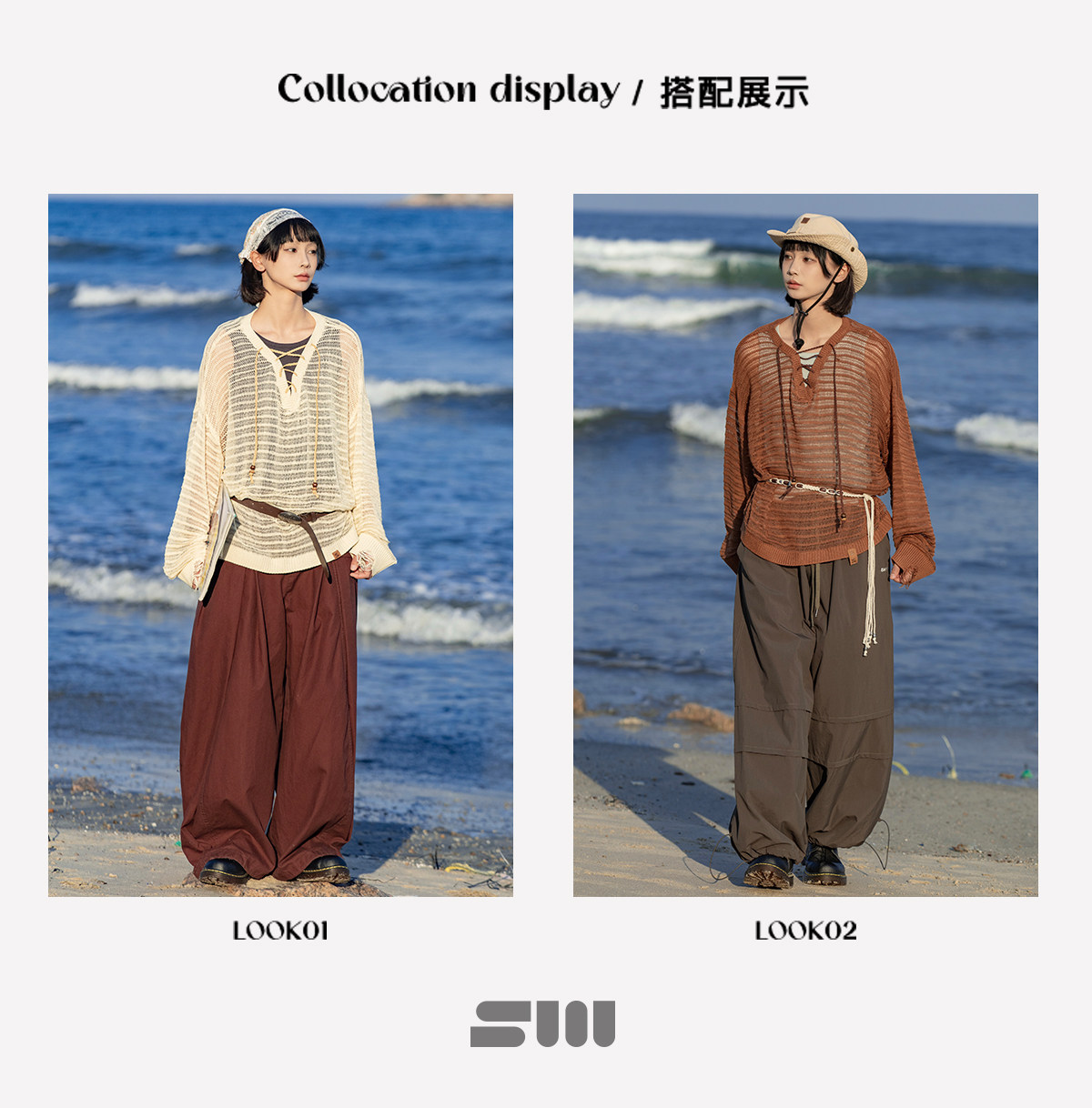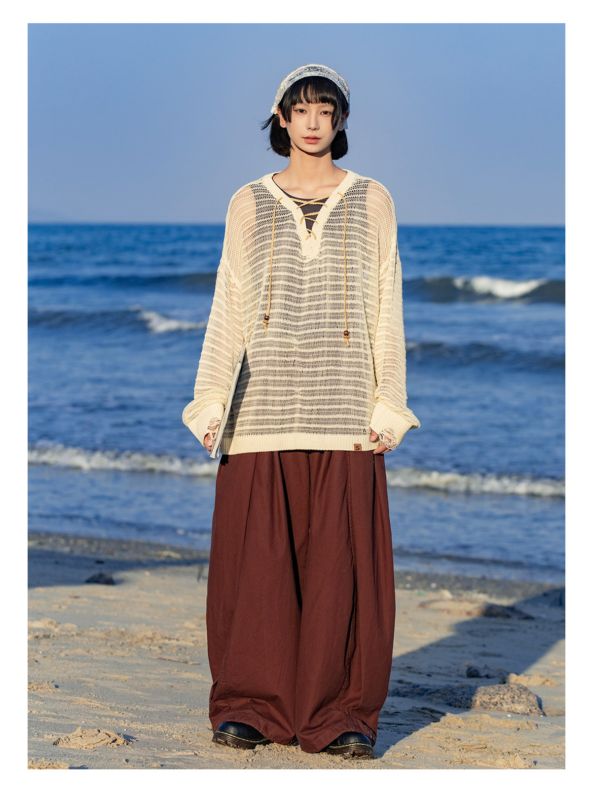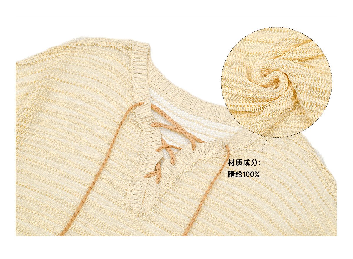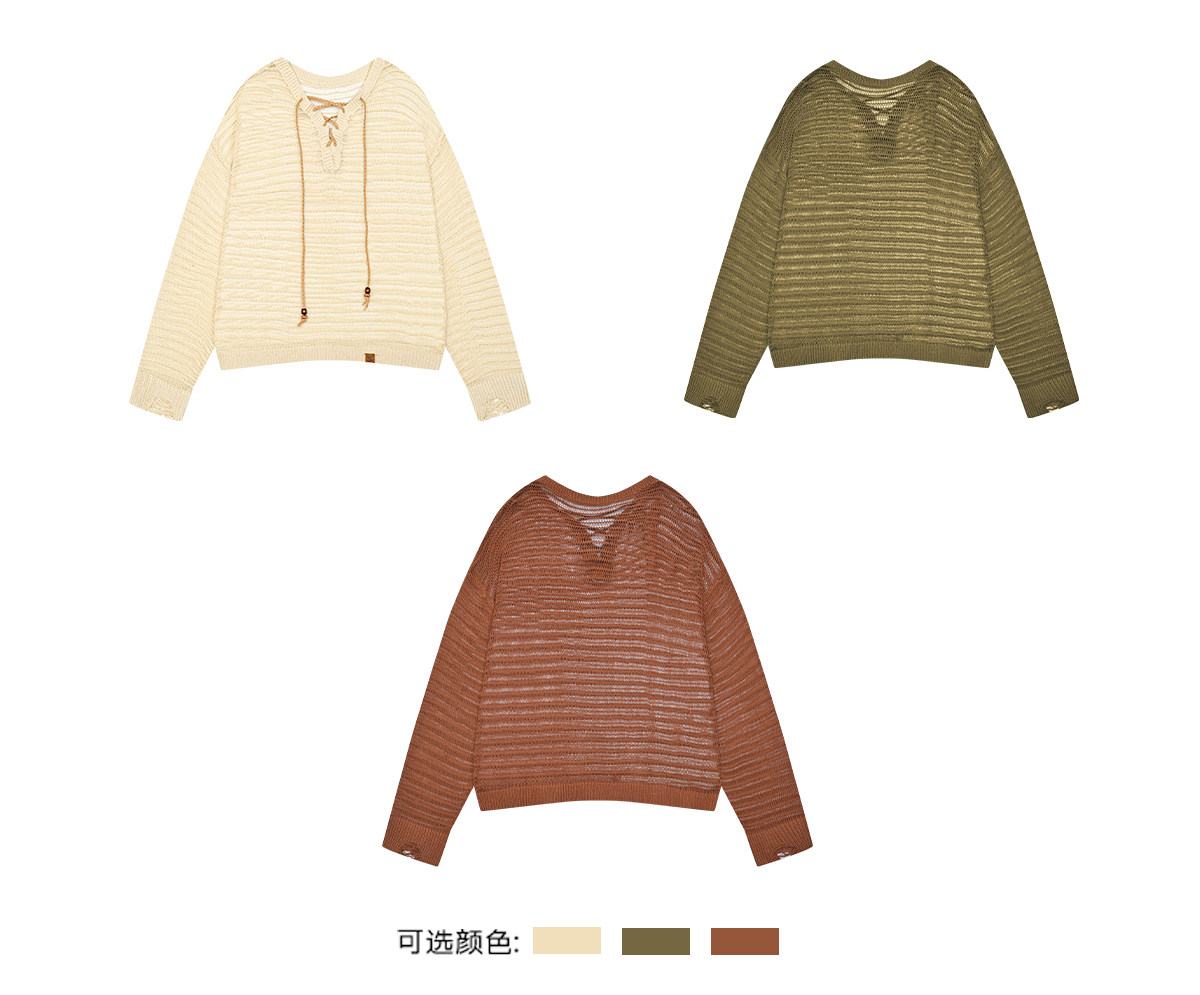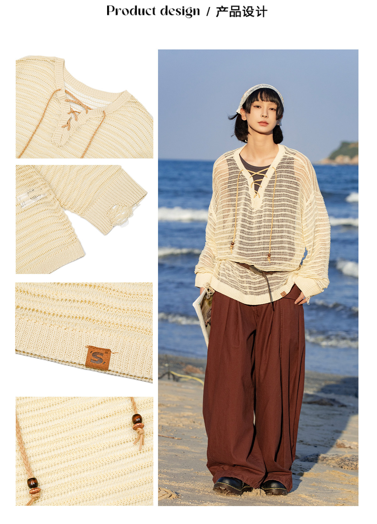 「夏季轻薄罩衫」早乙女惠子saotome日系户外V领绑带镂空破损毛衣