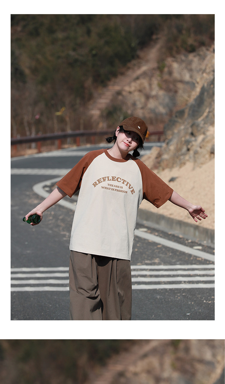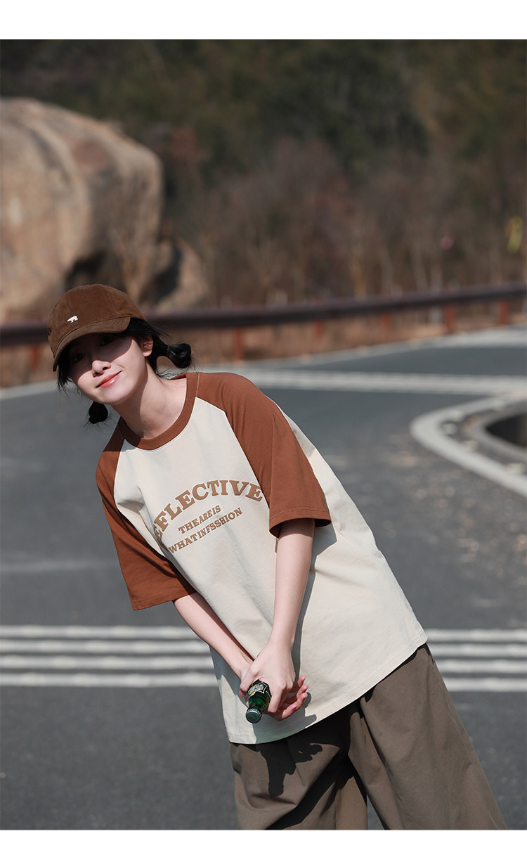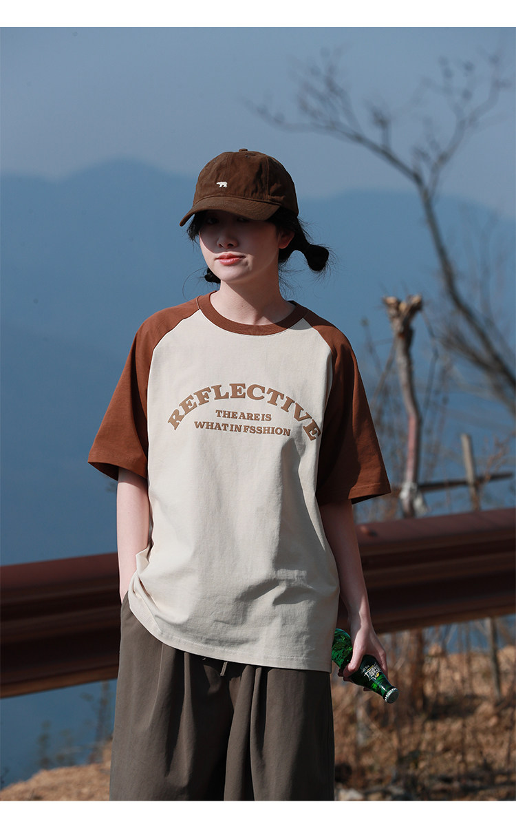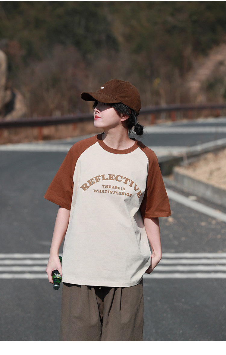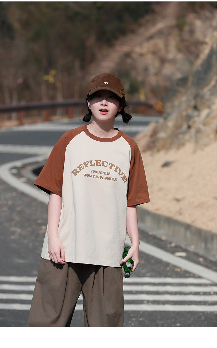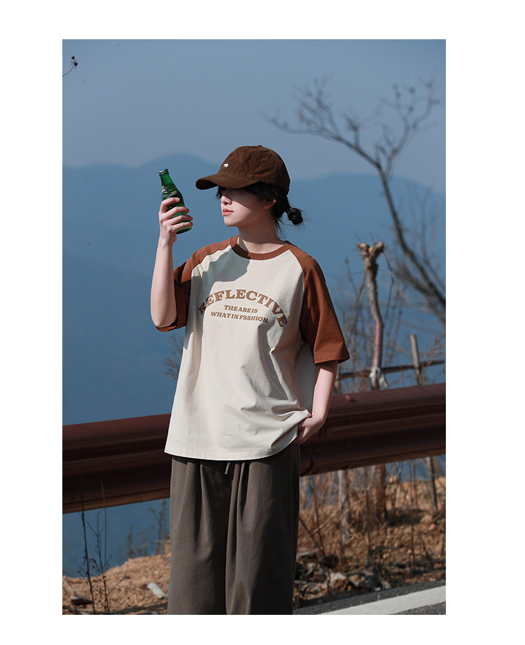 2025夏季原创美式复古休闲短袖女学生潮牌印花撞色运动纯棉T恤bf