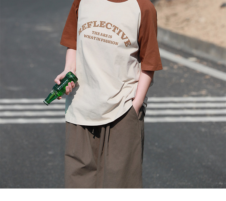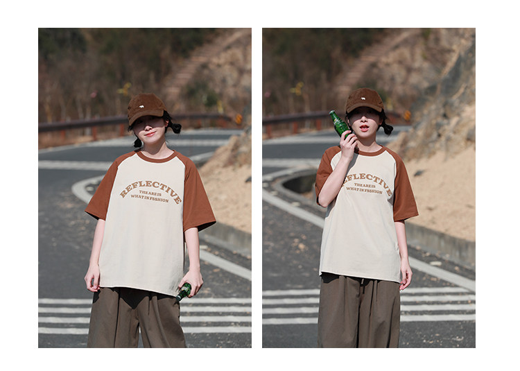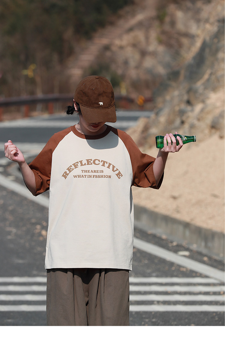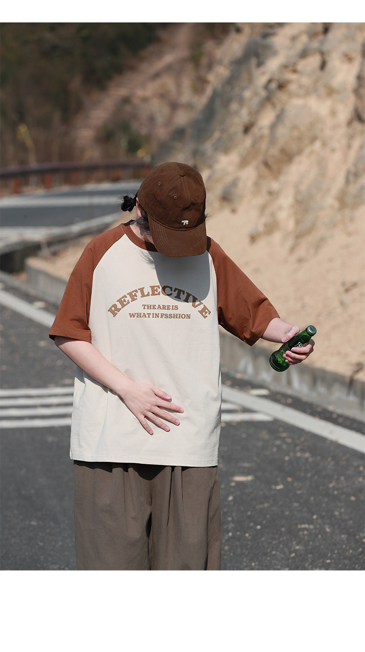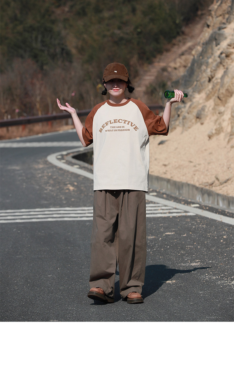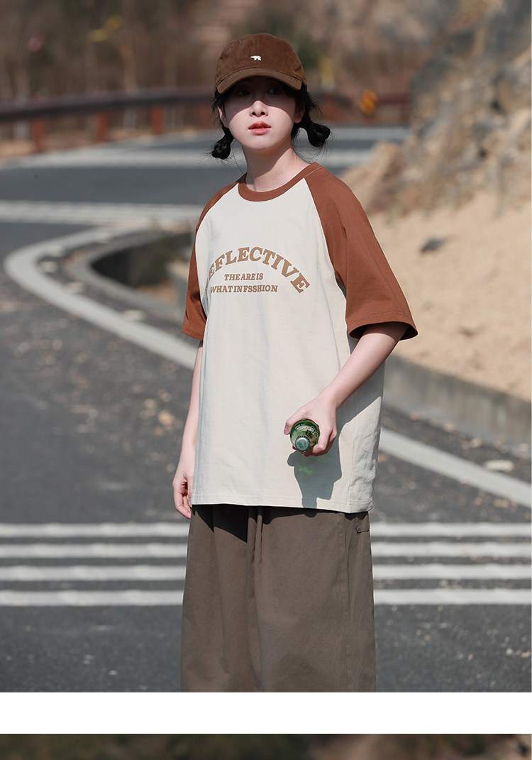 2025夏季原创美式复古休闲短袖女学生潮牌印花撞色运动纯棉T恤bf