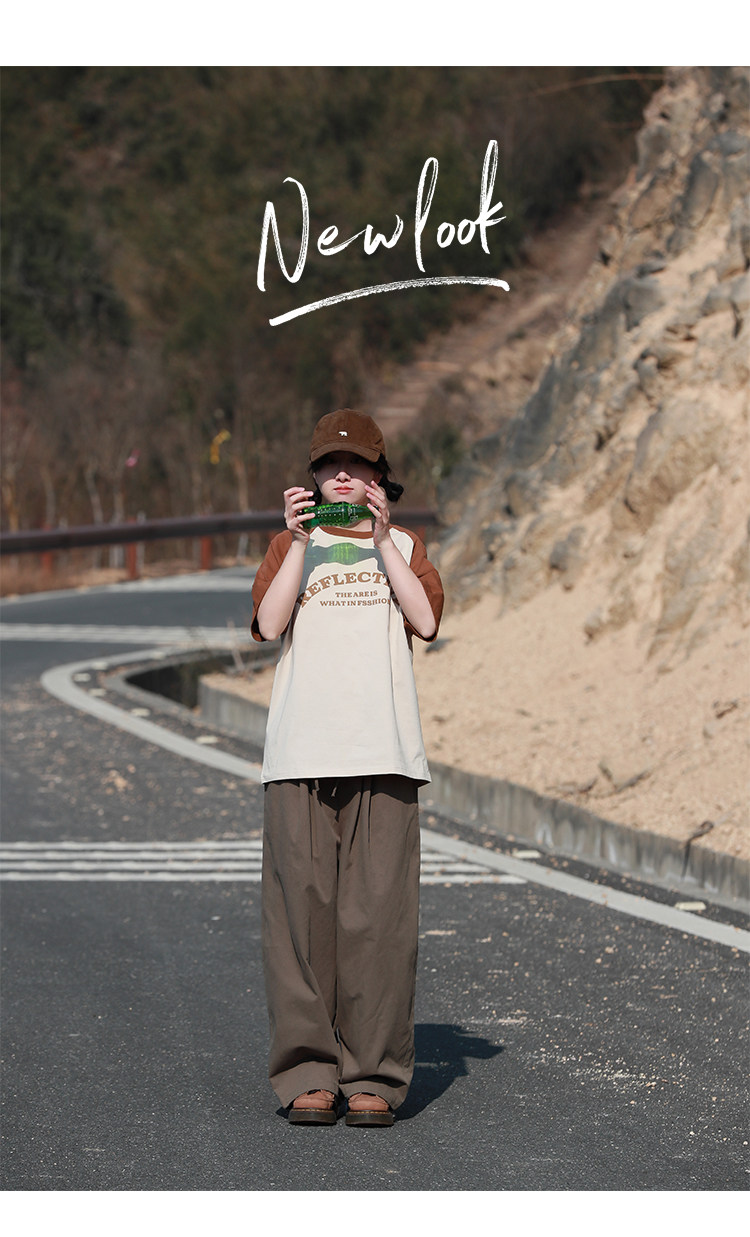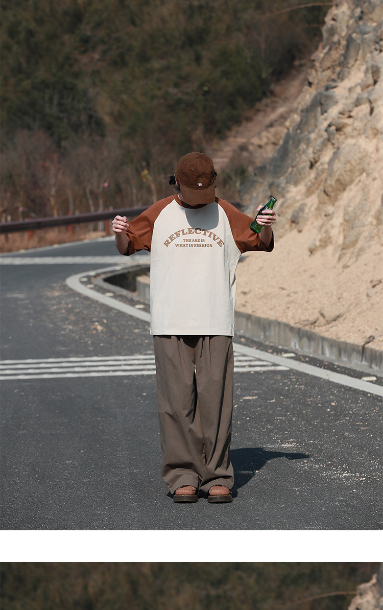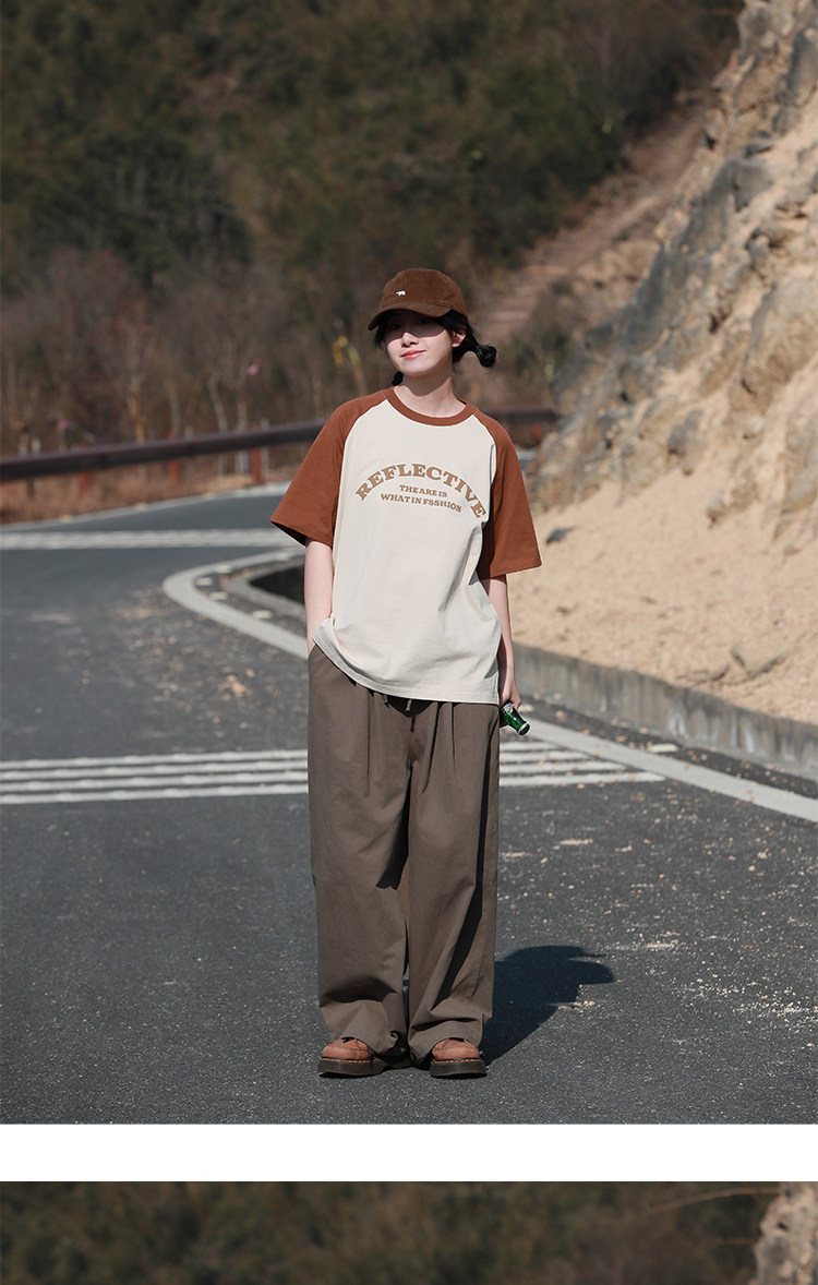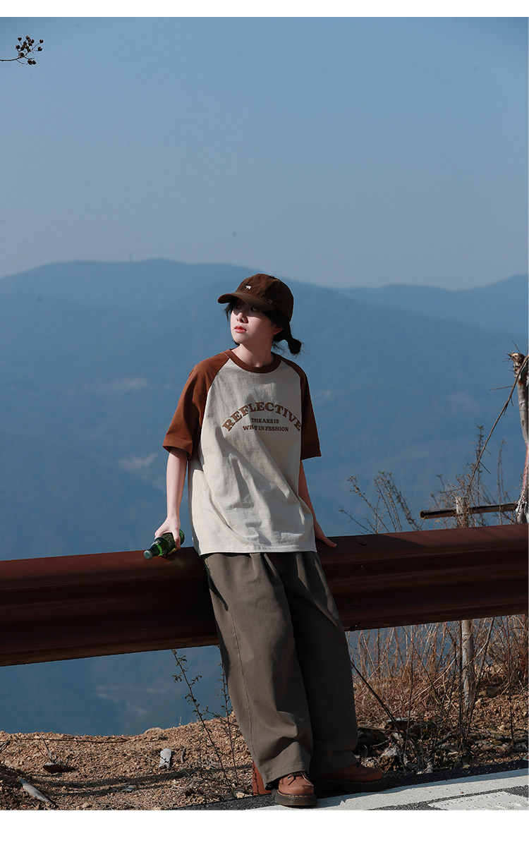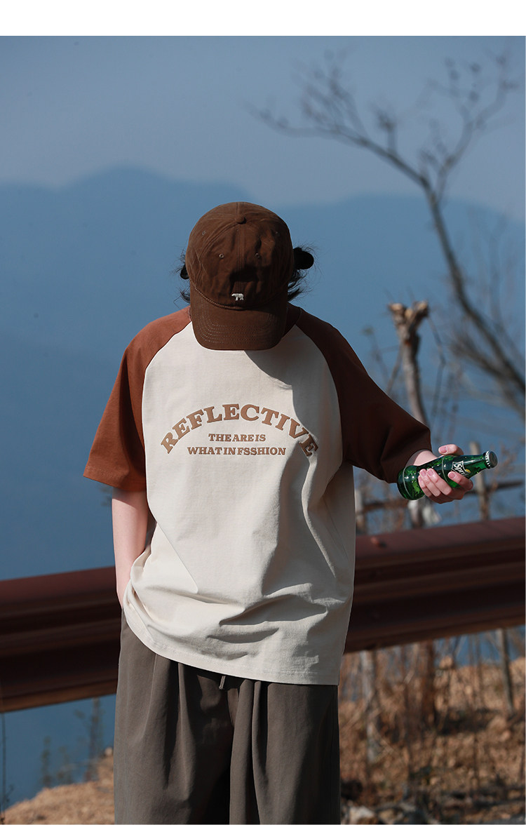 2025夏季原创美式复古休闲短袖女学生潮牌印花撞色运动纯棉T恤bf