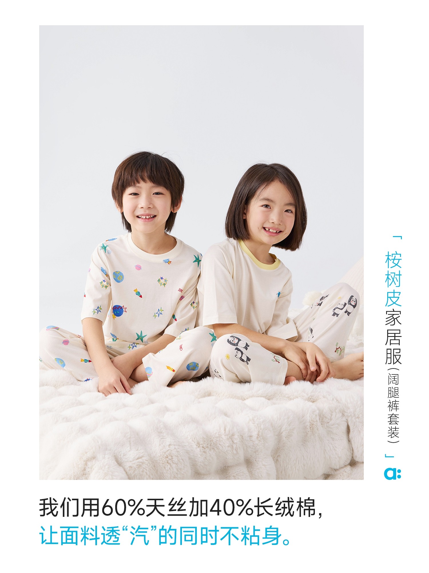 Allblu Youlan[Eucalyptus Bark]Children's Pajamas Boys and Girls Underwear Set Homewear Class a Autumn Style