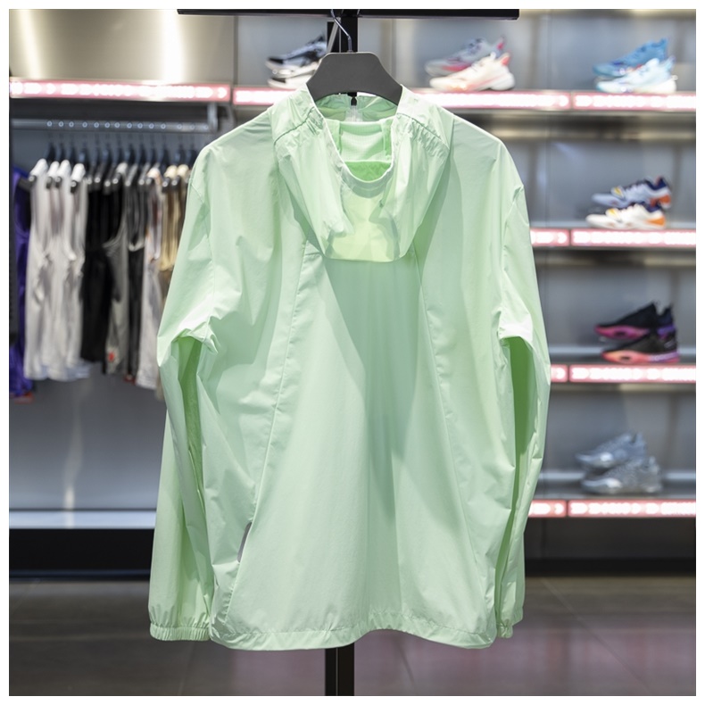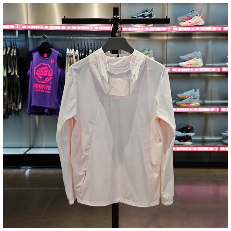 李宁跑步系列冰感舒适防晒运动风衣,运用简洁的色彩搭配,简单休闲。 UPF值950+,夏季防晒外套首选,冰感弹力,高品质感面料上身舒适有型,基础版型结合运动感分割结构,舒适契合身形,搭配下摆弹力扣设计随心调节,提升防风指数,运动时刻更畅快简约易搭配。