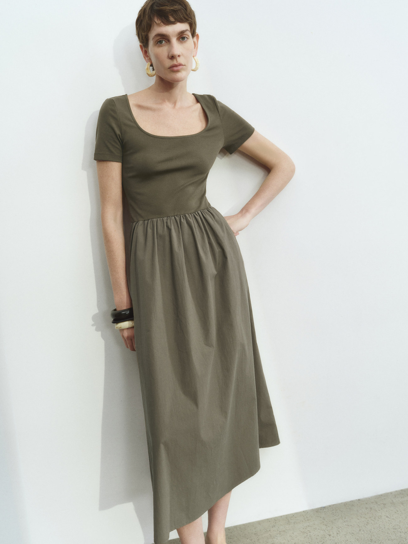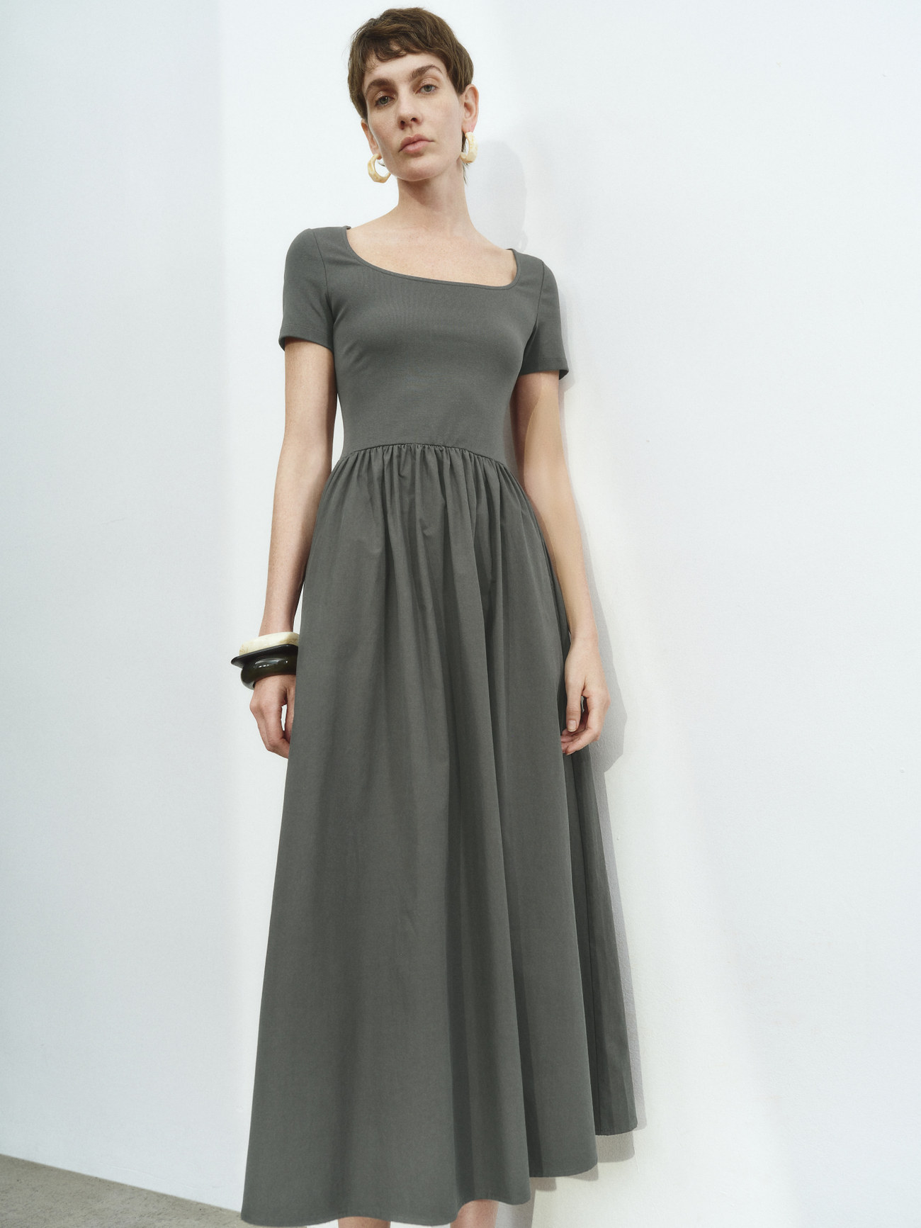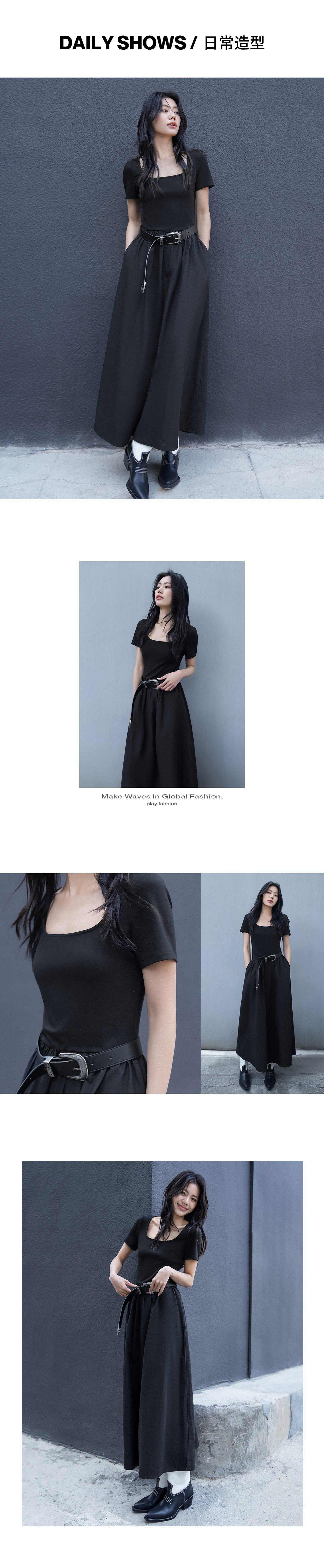 UR2026春季新款女装休闲简约拼接修身短袖连衣裙UWM750025