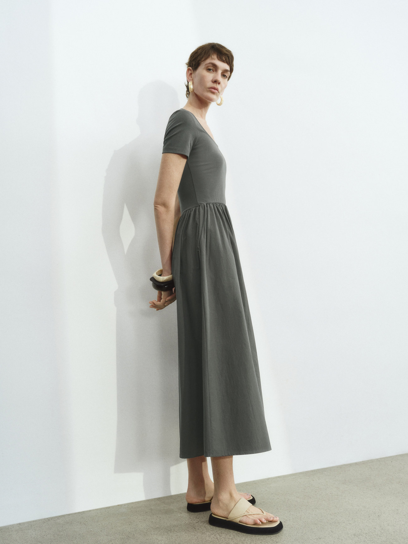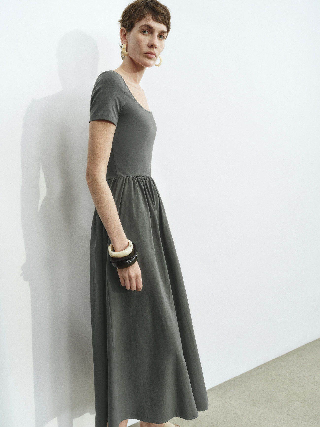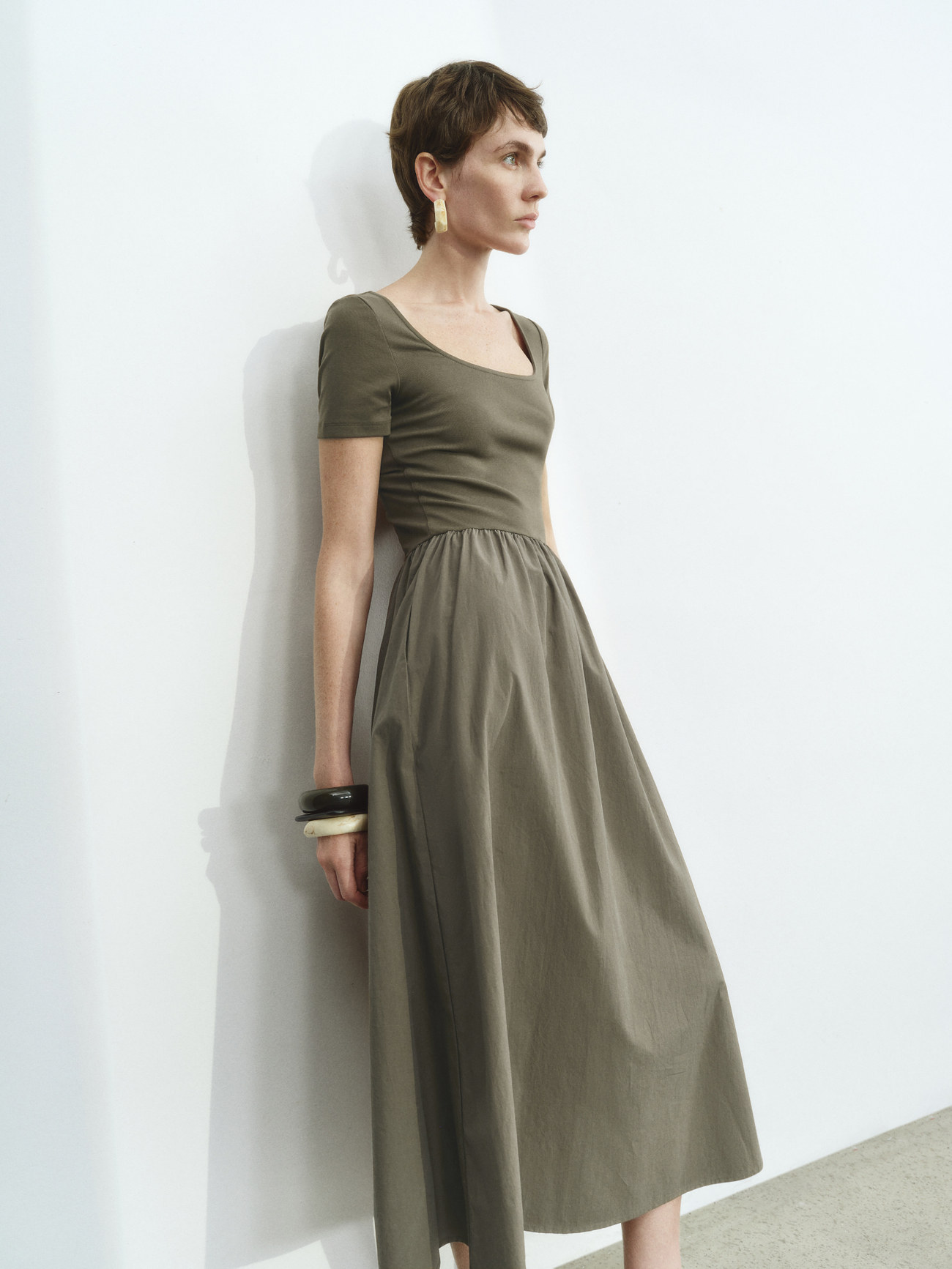 UR2026春季新款女装休闲简约拼接修身短袖连衣裙UWM750025