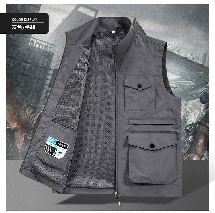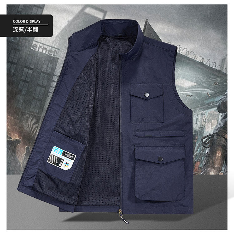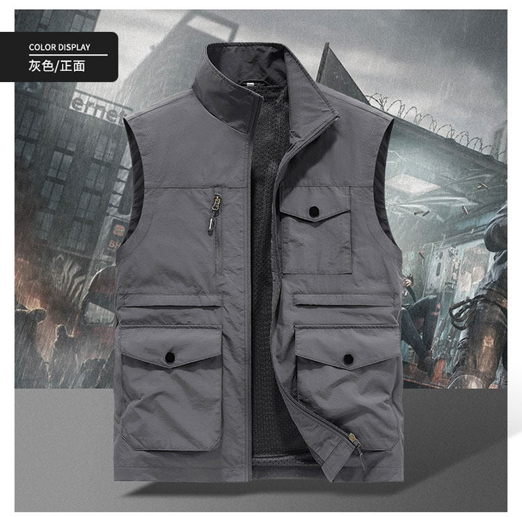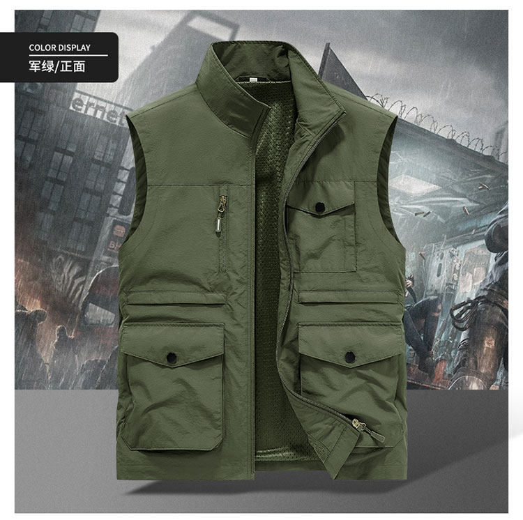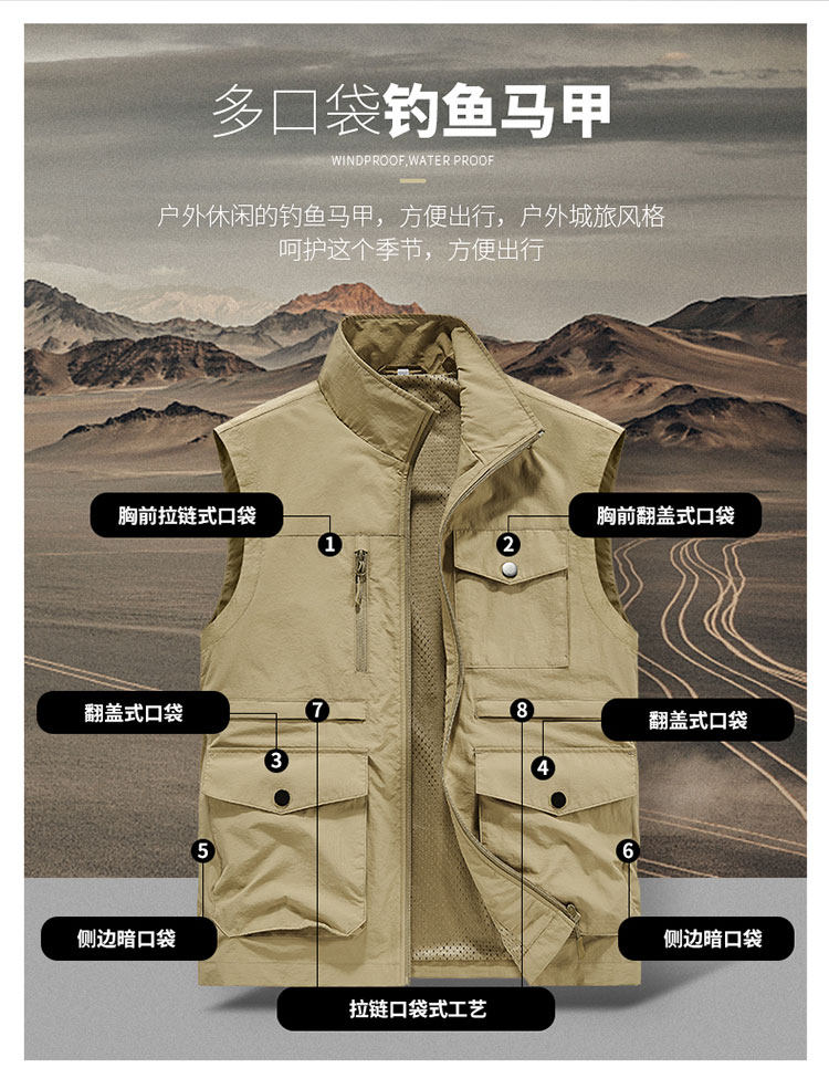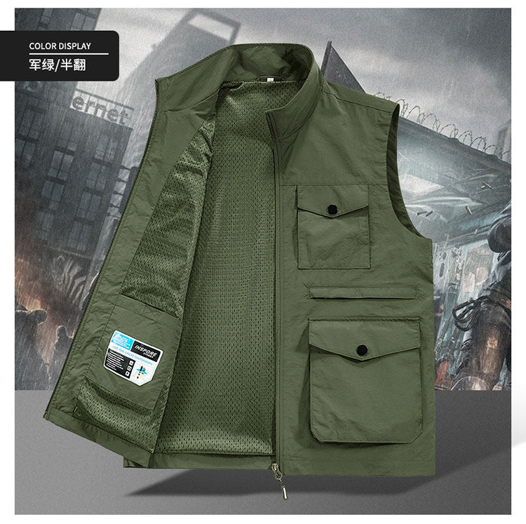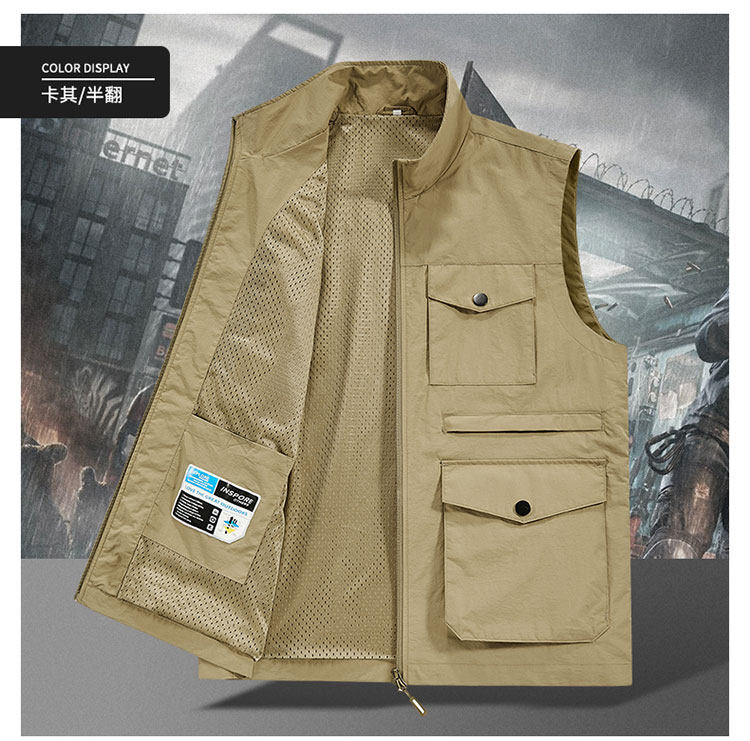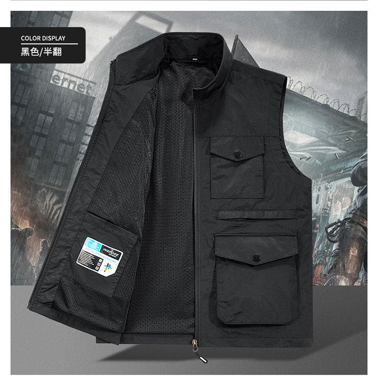 Chaleco fino transpirable para hombre, de secado rápido, para deportes y ocio, con múltiples bolsillos, para exteriores, primavera y otoño, clásico