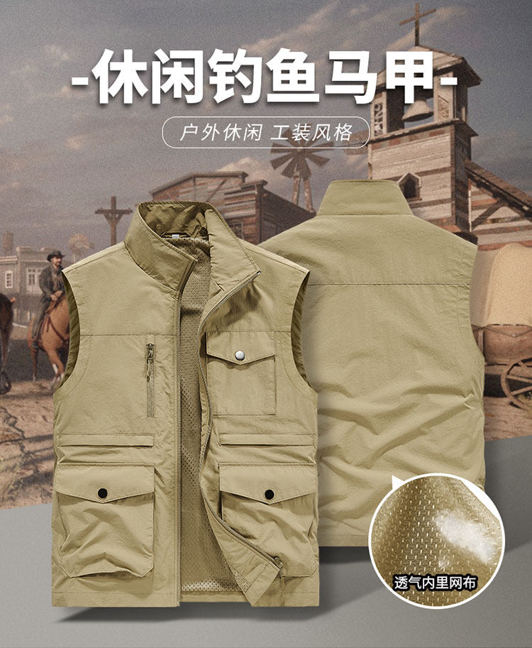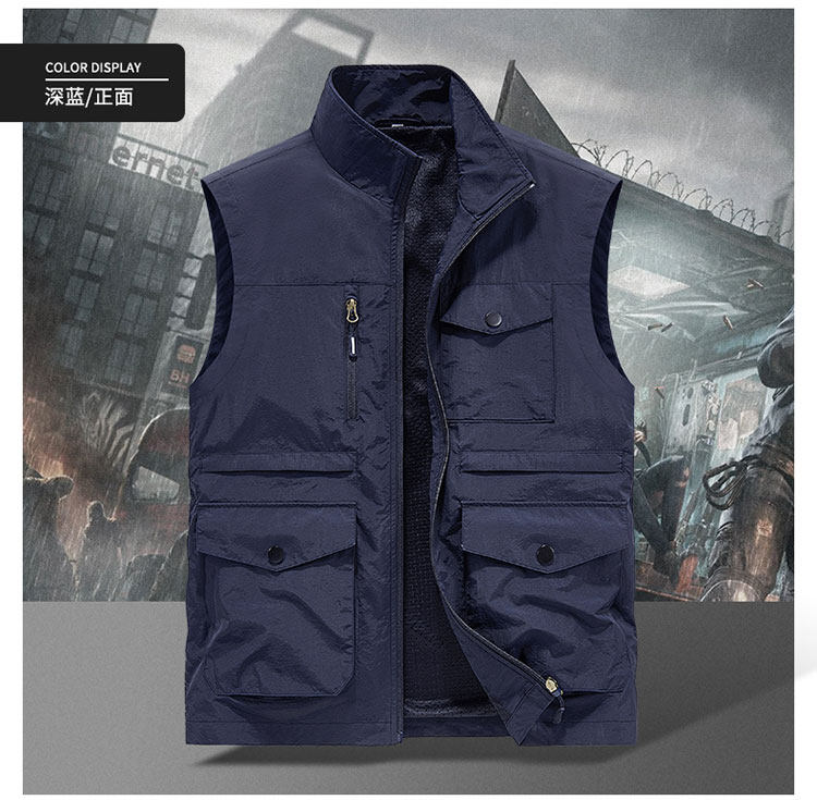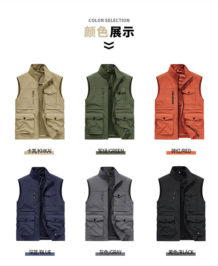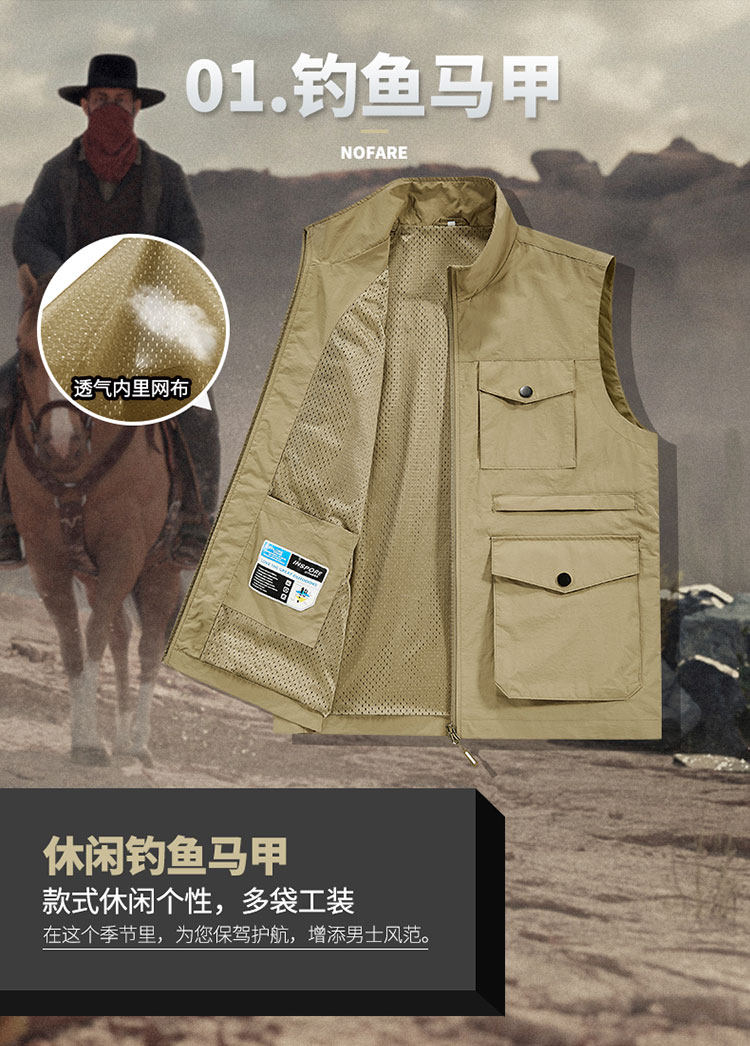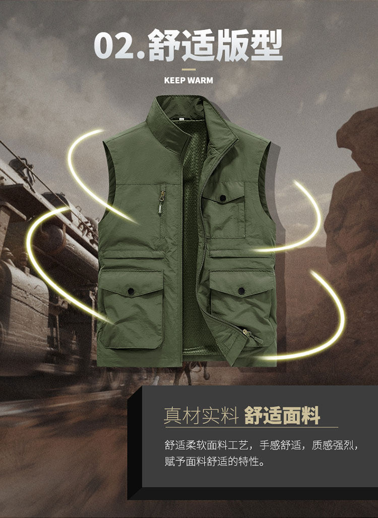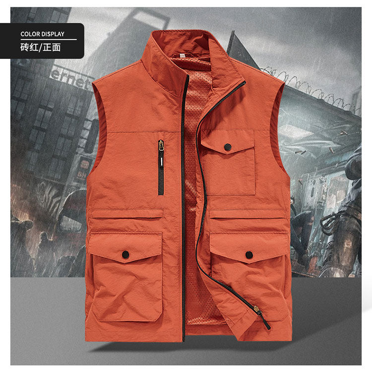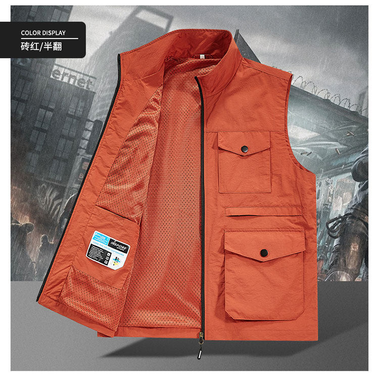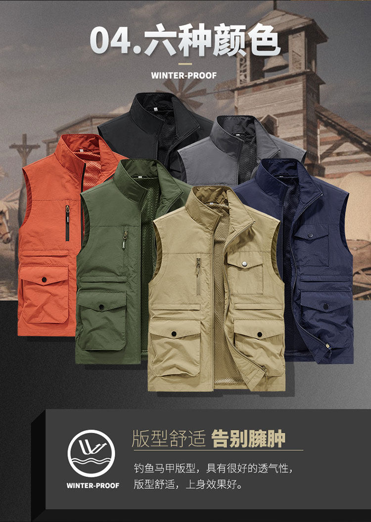 Chaleco fino transpirable para hombre, de secado rápido, para deportes y ocio, con múltiples bolsillos, para exteriores, primavera y otoño, clásico